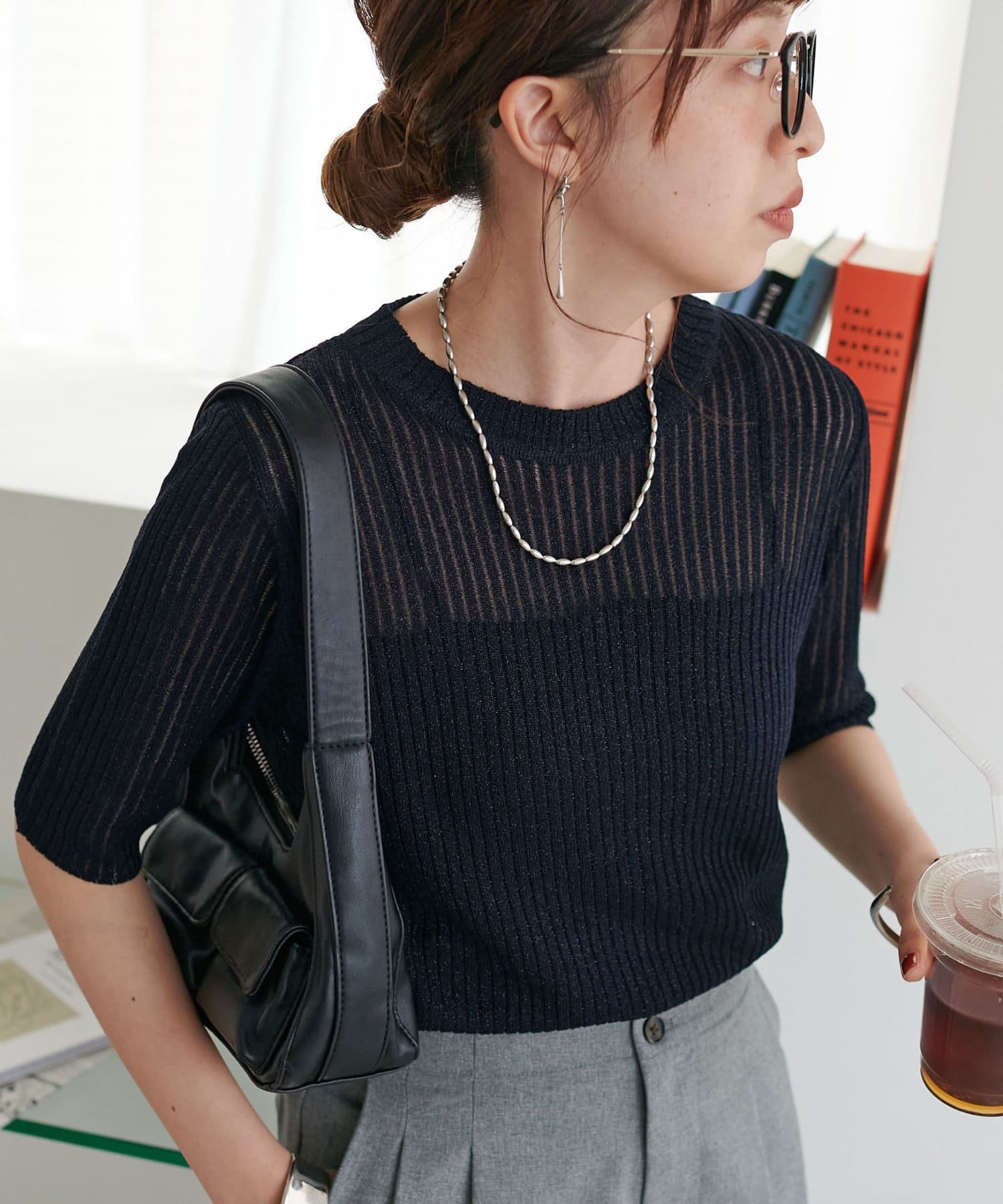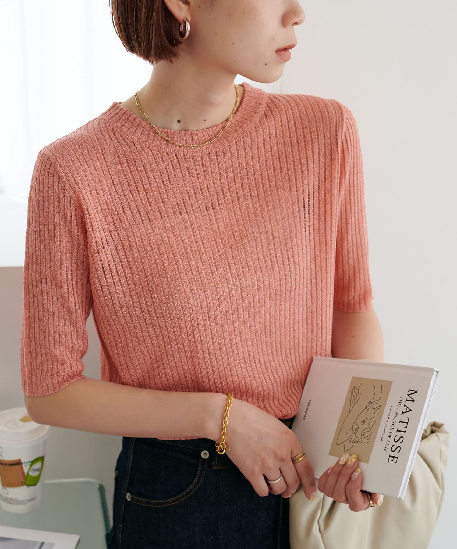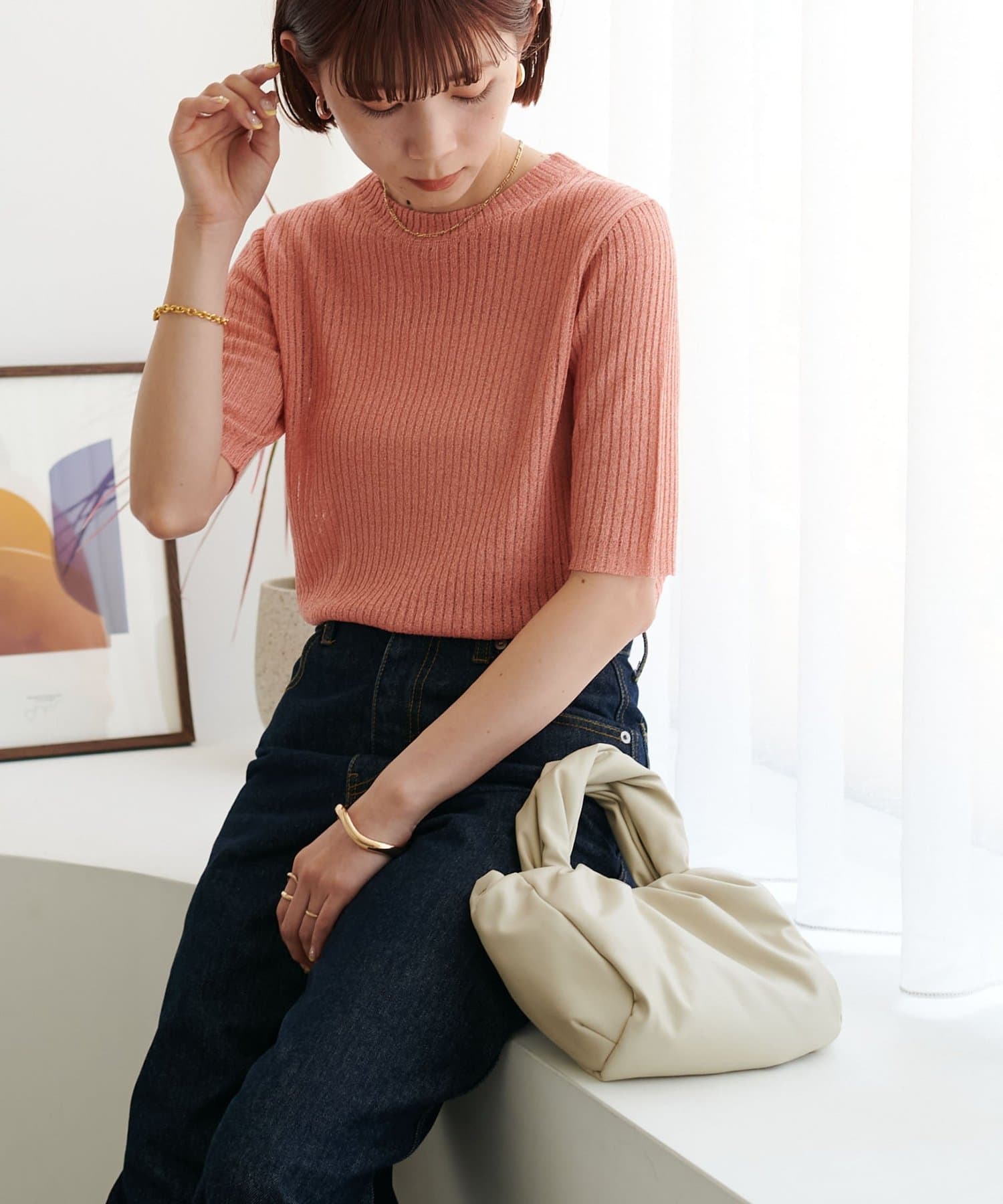 TOP > DISCOAT > レディース > トップス > ニット/セーター > 【WEB限定】ラメリブ5分袖プルオーバー