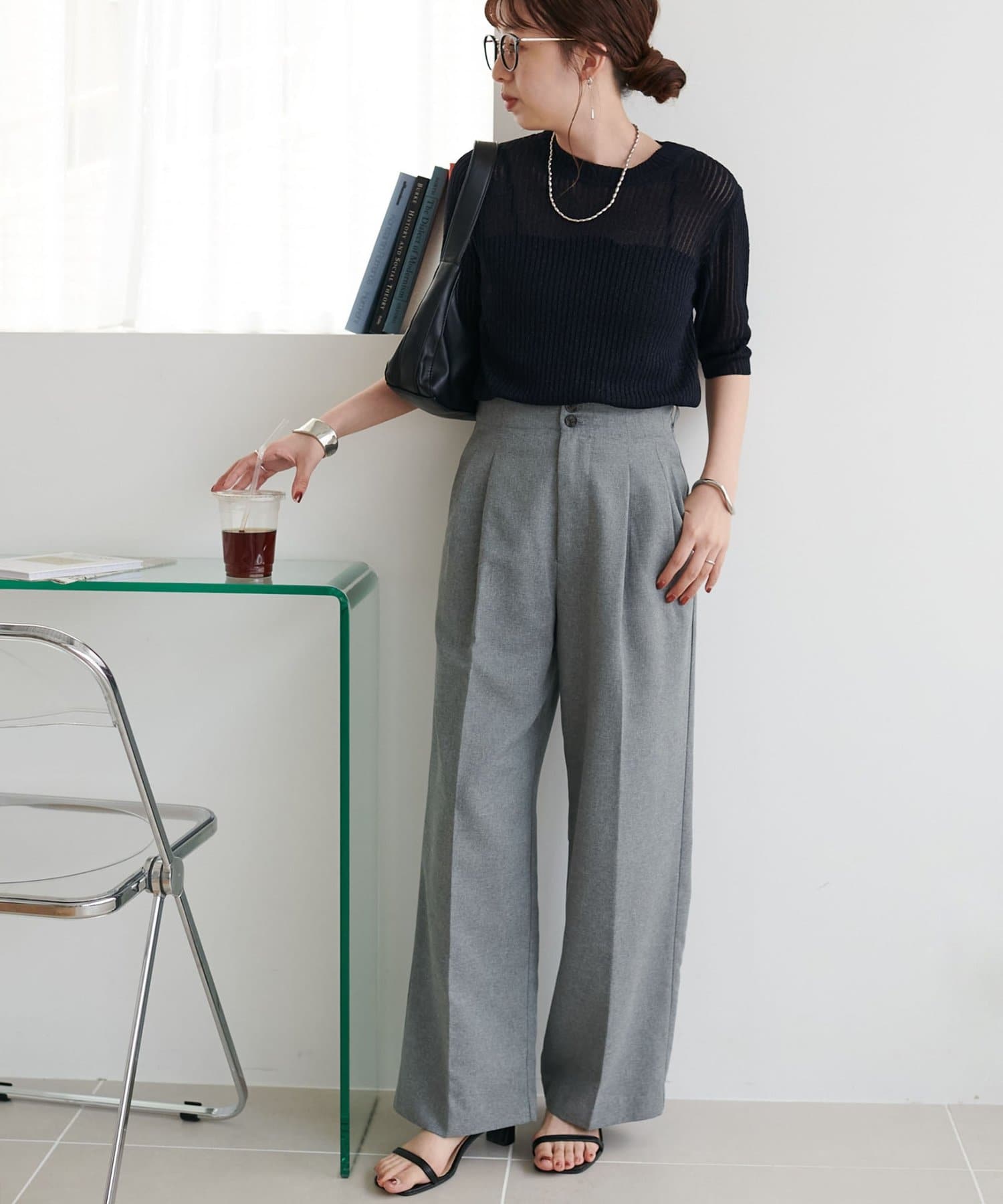 ・スラックスと合わせてきれいめに着こなしたスタイリングも◎