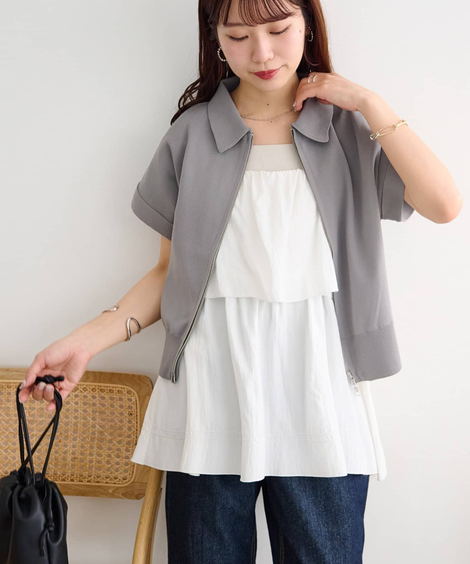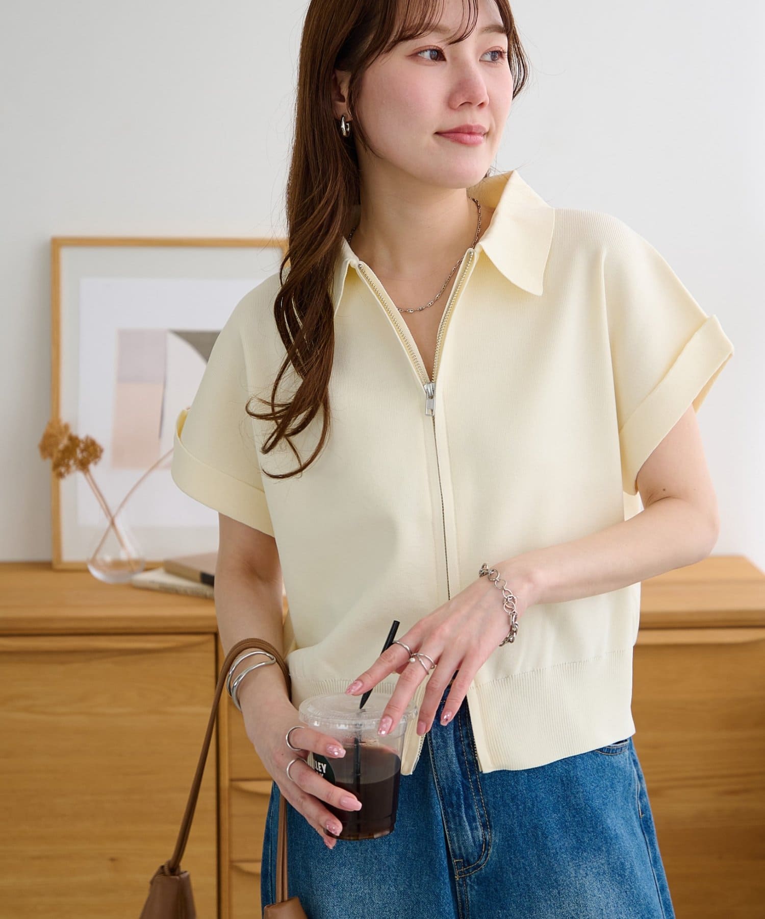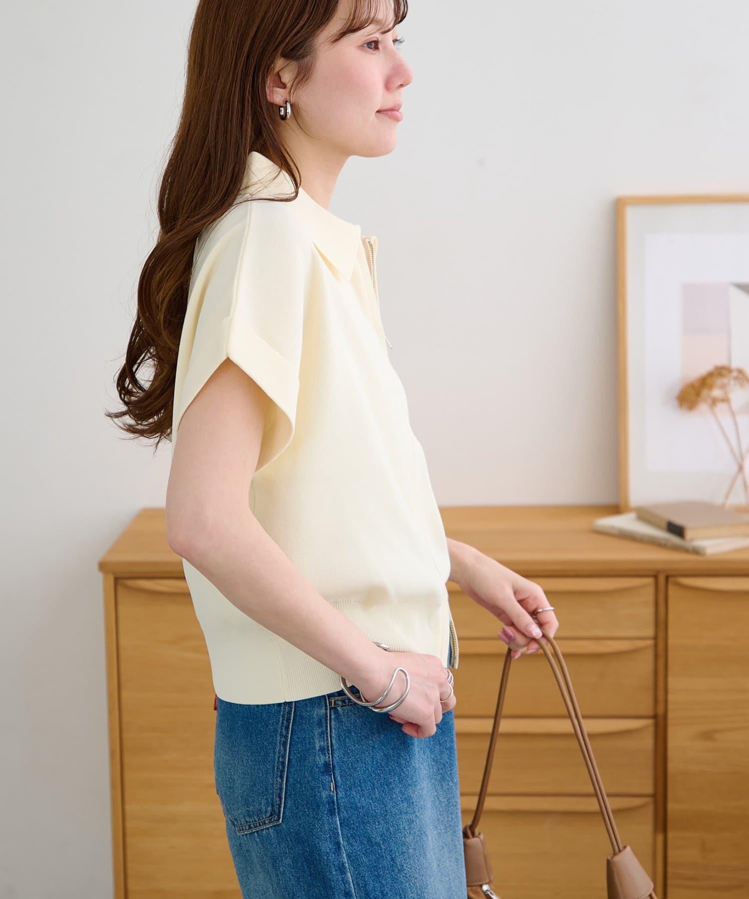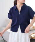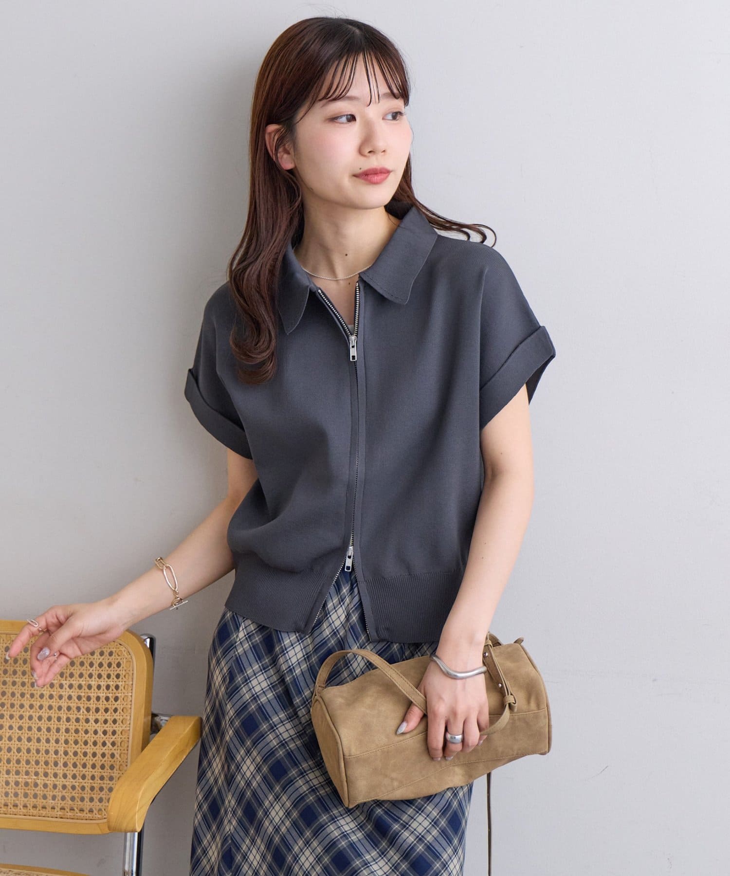 ライトスポンディッシュ衿付Wジップ半袖カーディガン