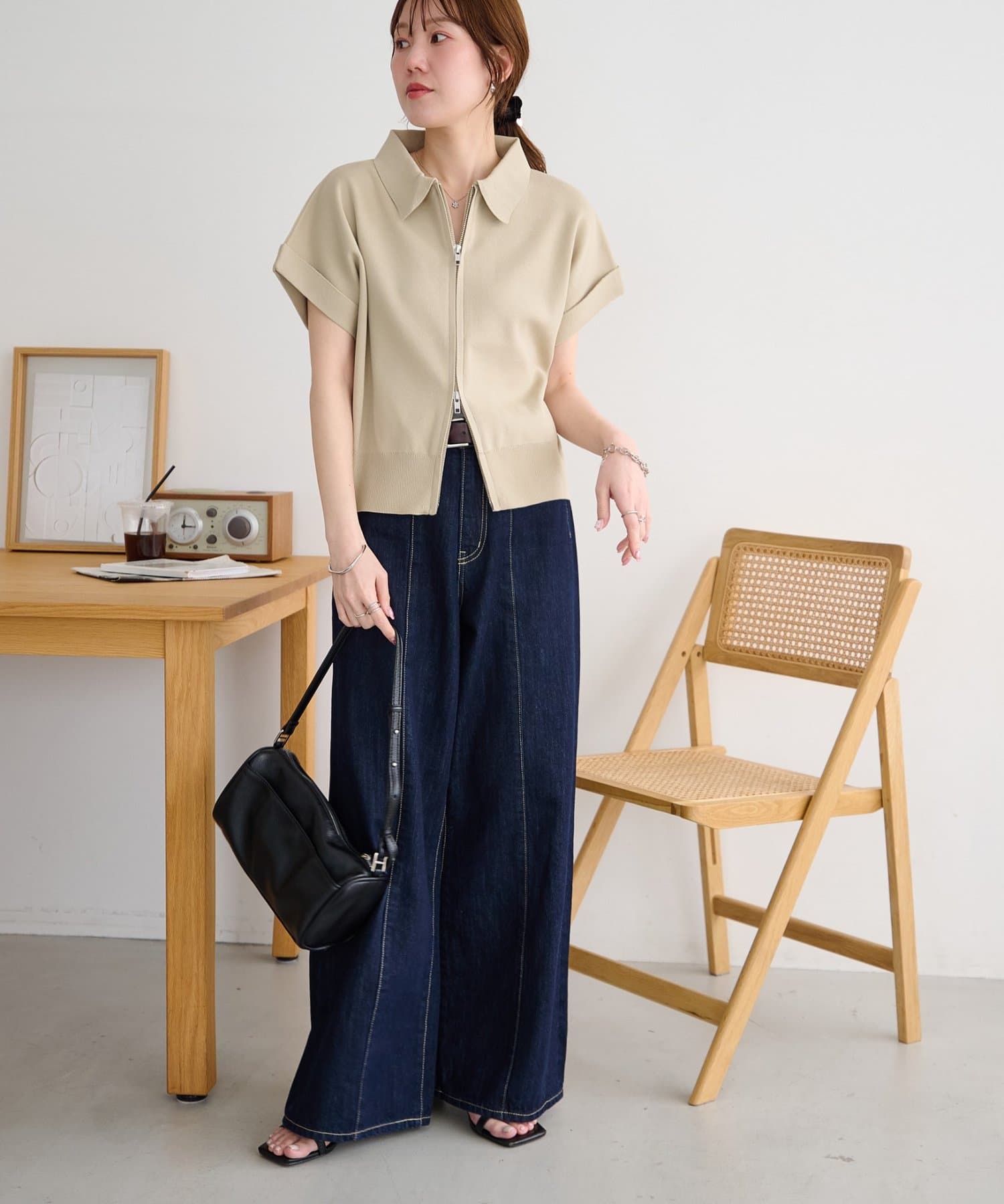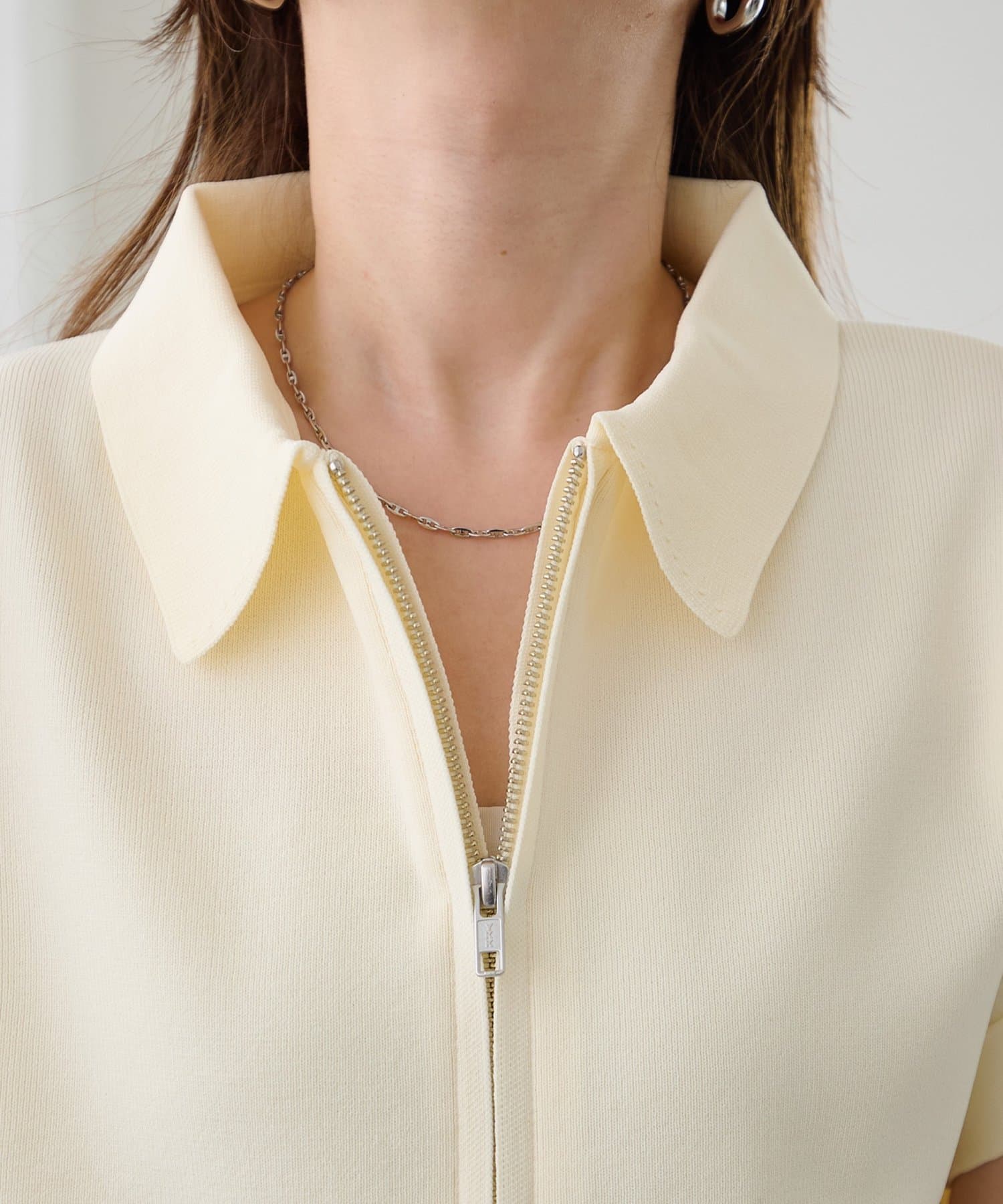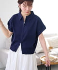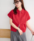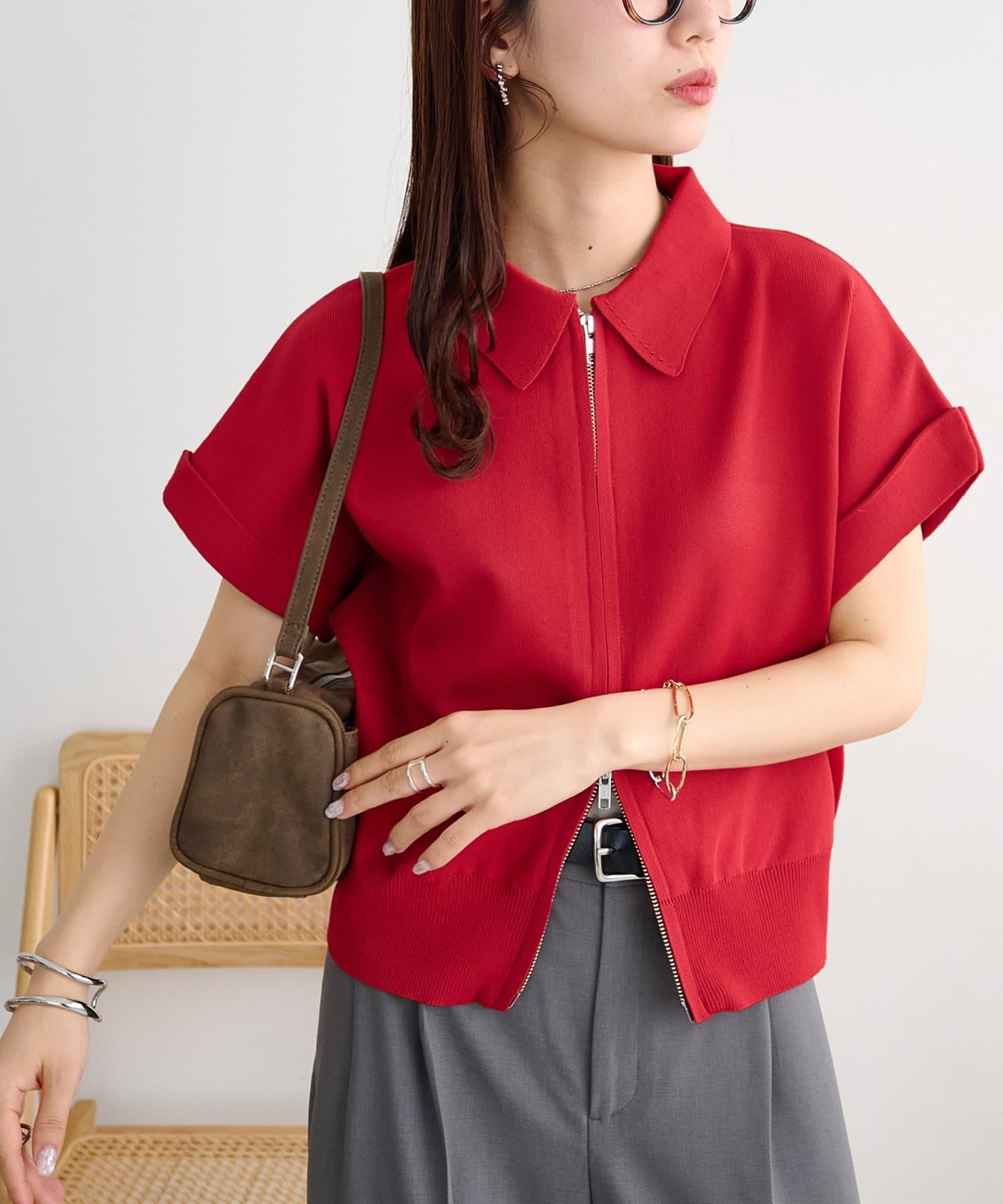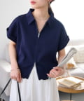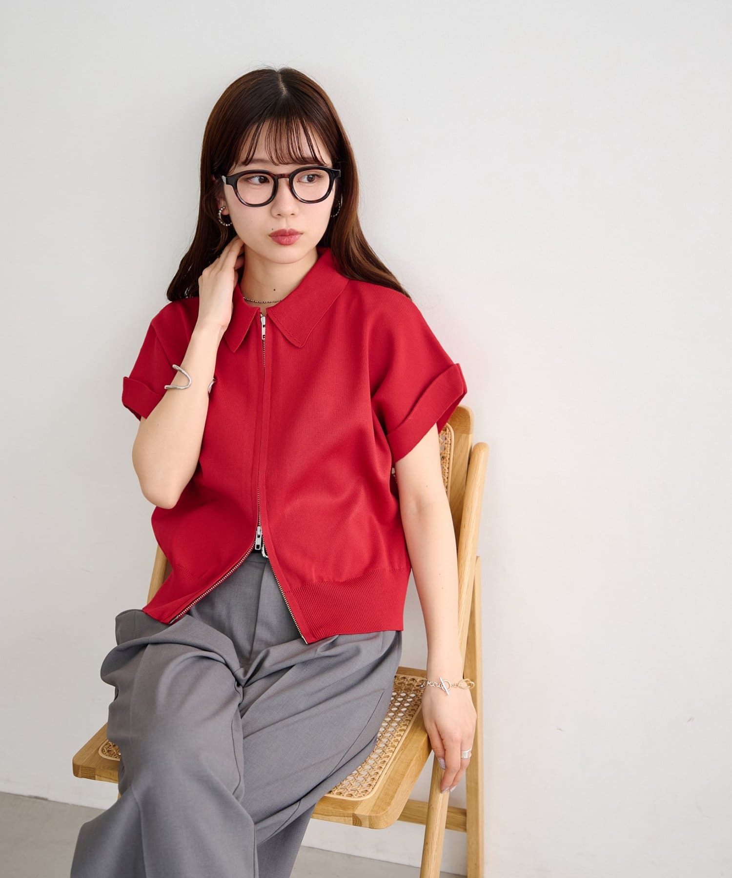 ライトスポンディッシュ衿付Wジップ半袖カーディガン