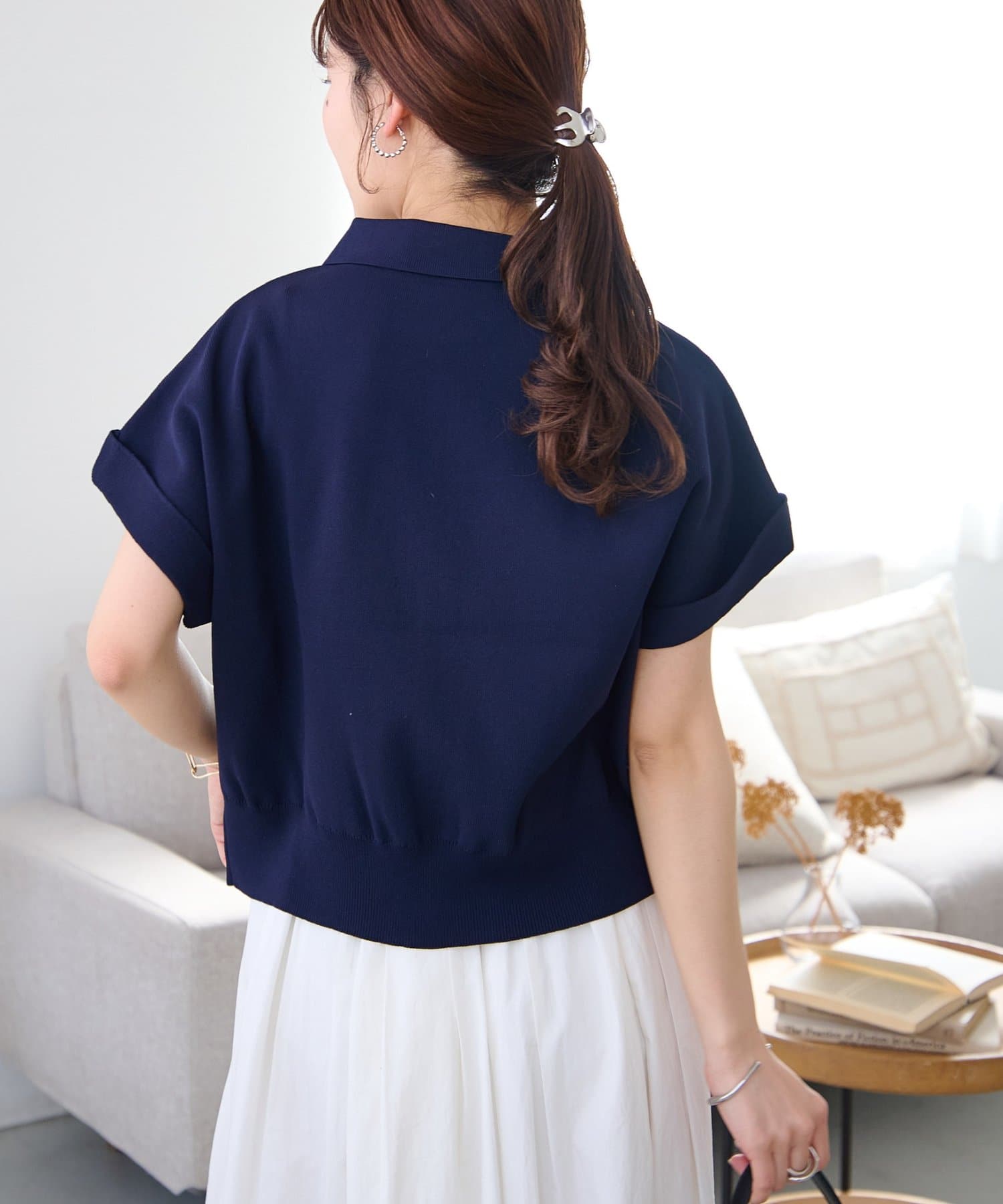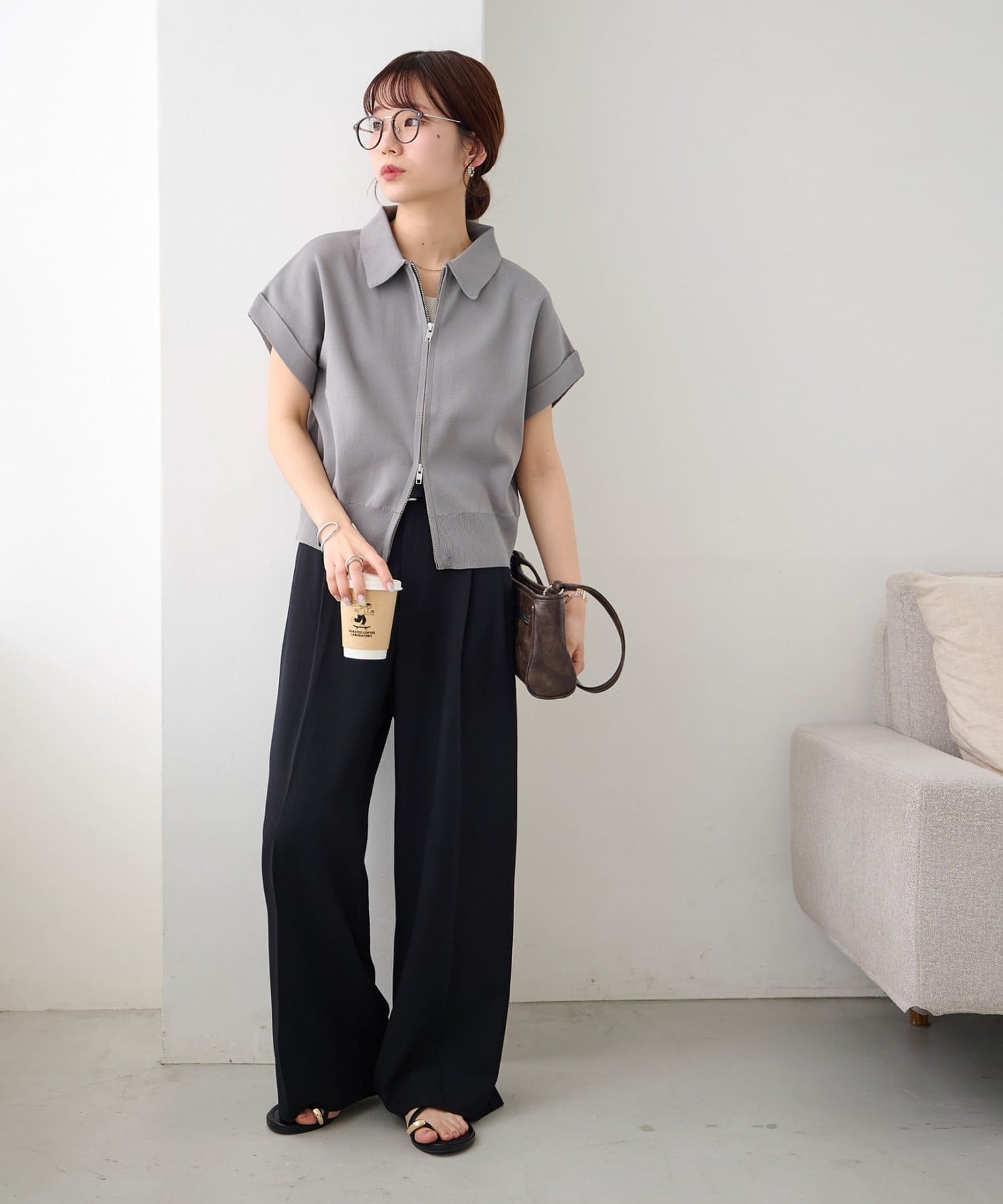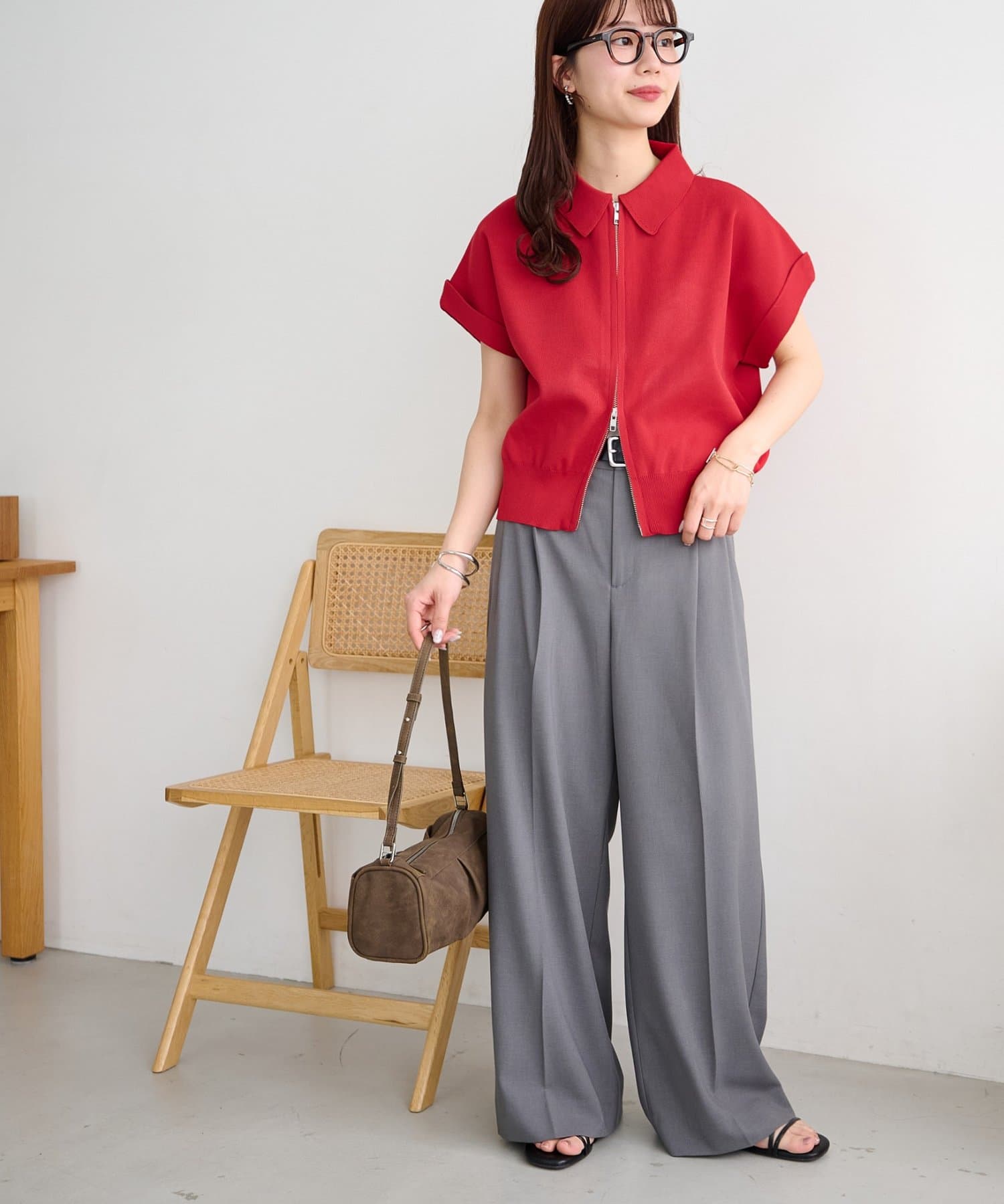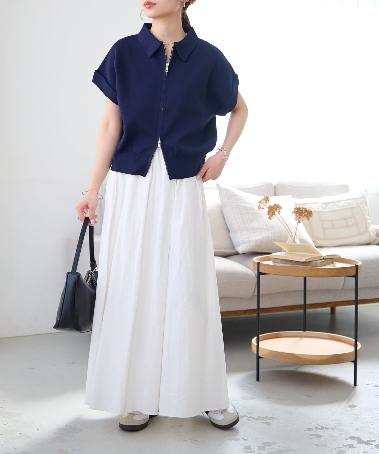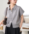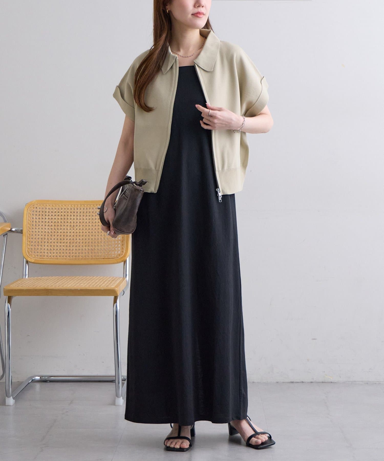 ライトスポンディッシュ衿付Wジップ半袖カーディガン