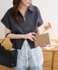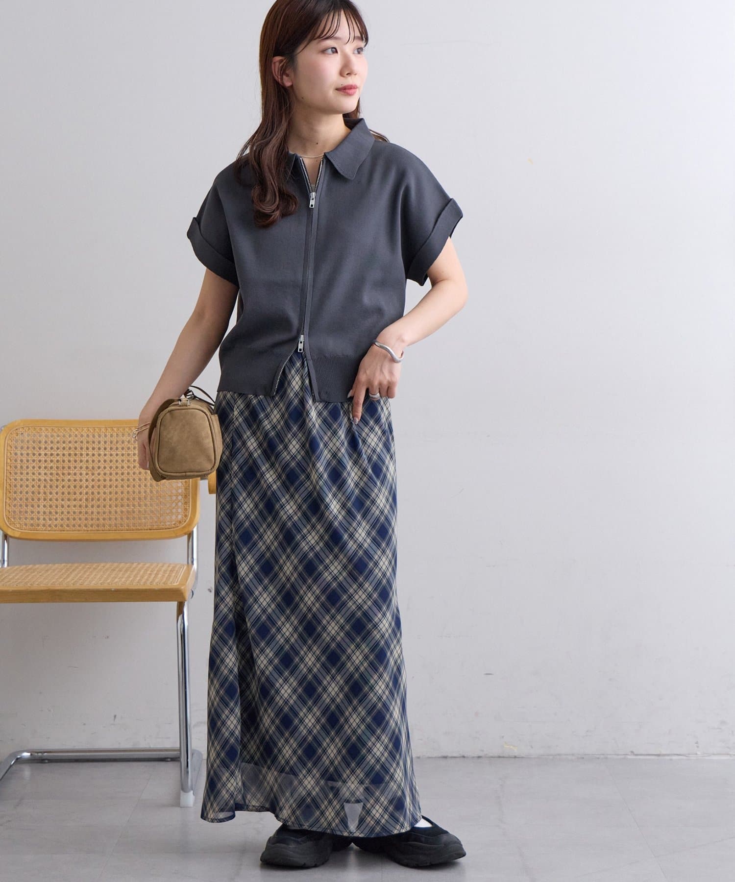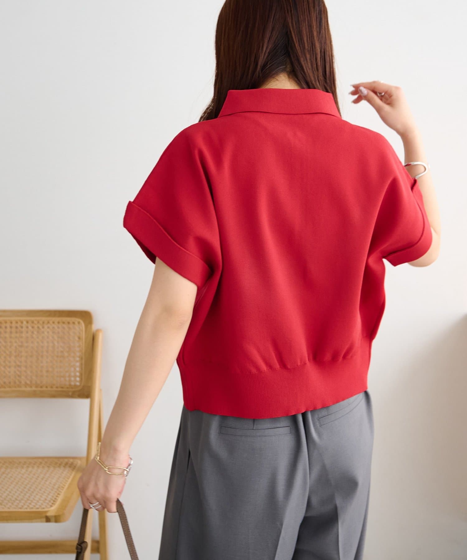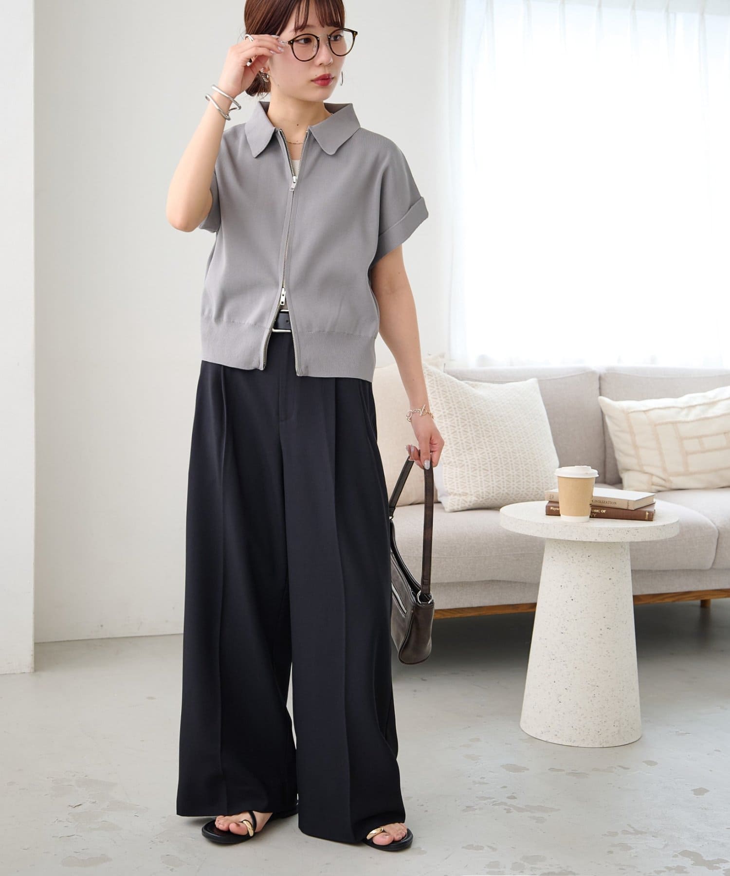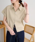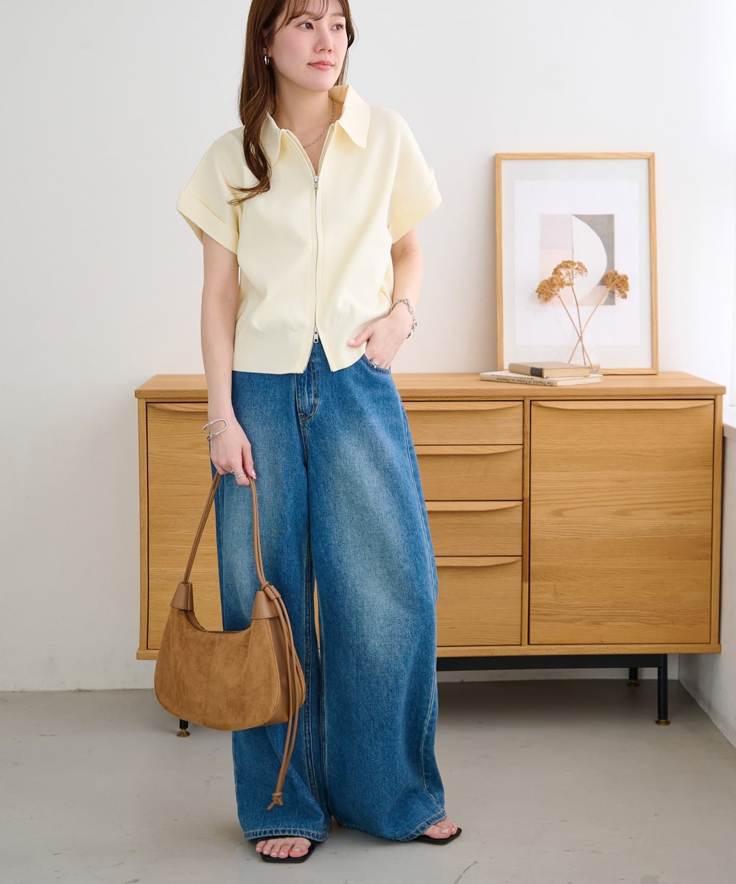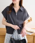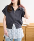 ライトスポンディッシュ衿付Wジップ半袖カーディガン