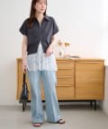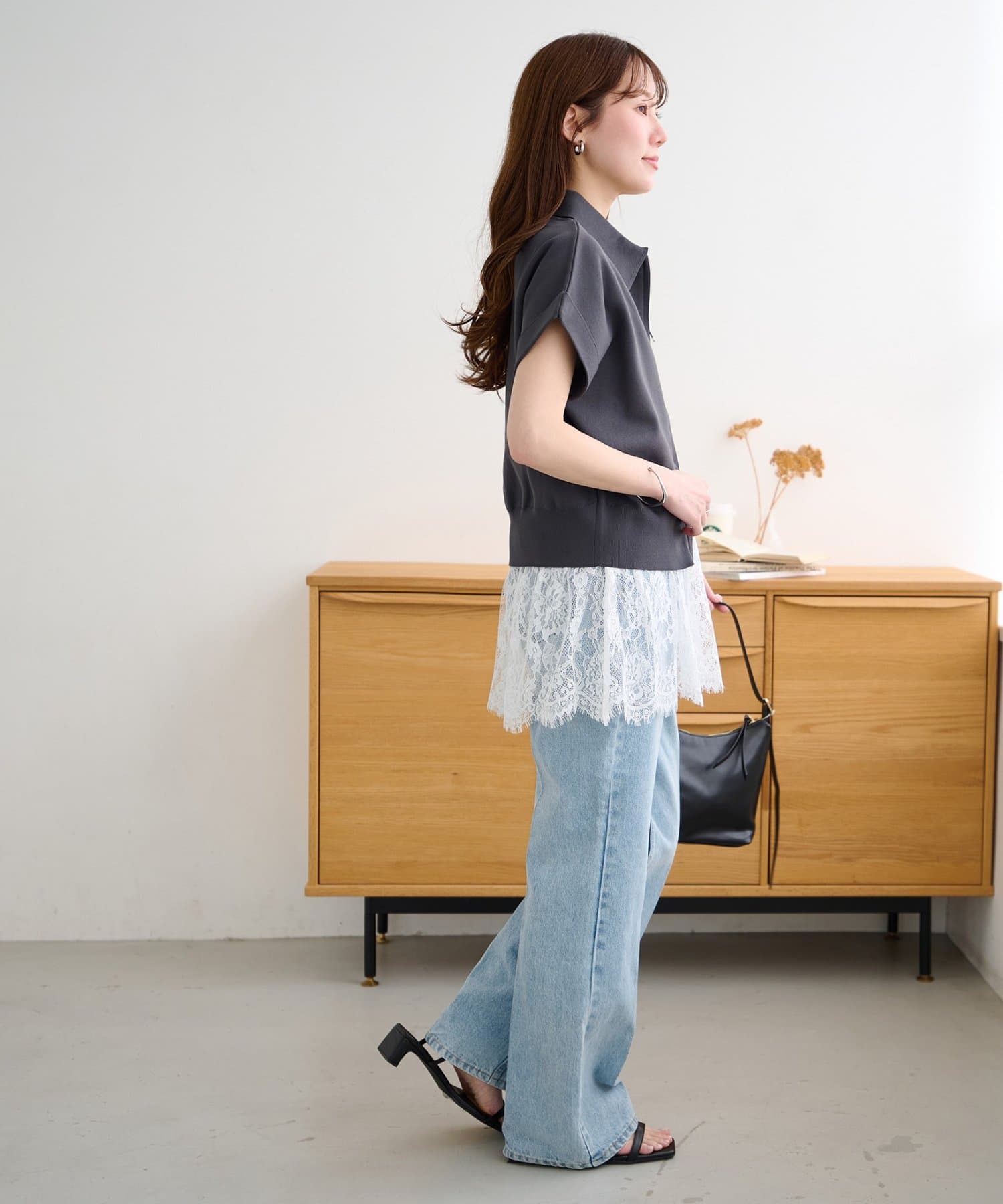 ・レースキャミソールとレイヤードすれば、トレンド感のあるスタイリングの完成♪