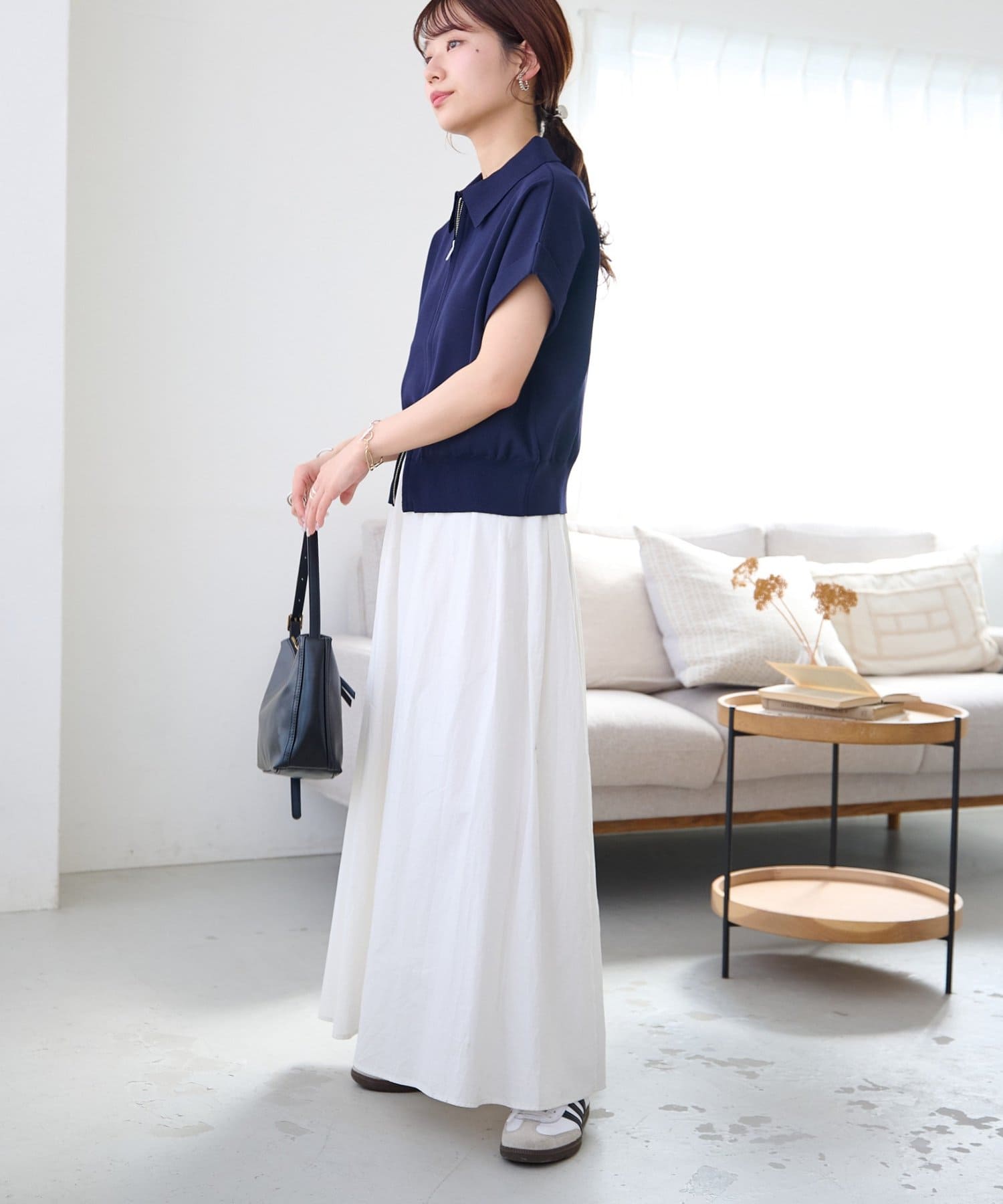 162cmスタッフ:ハイウエストのスカートやパンツと合わせると脚長効果が期待できます。