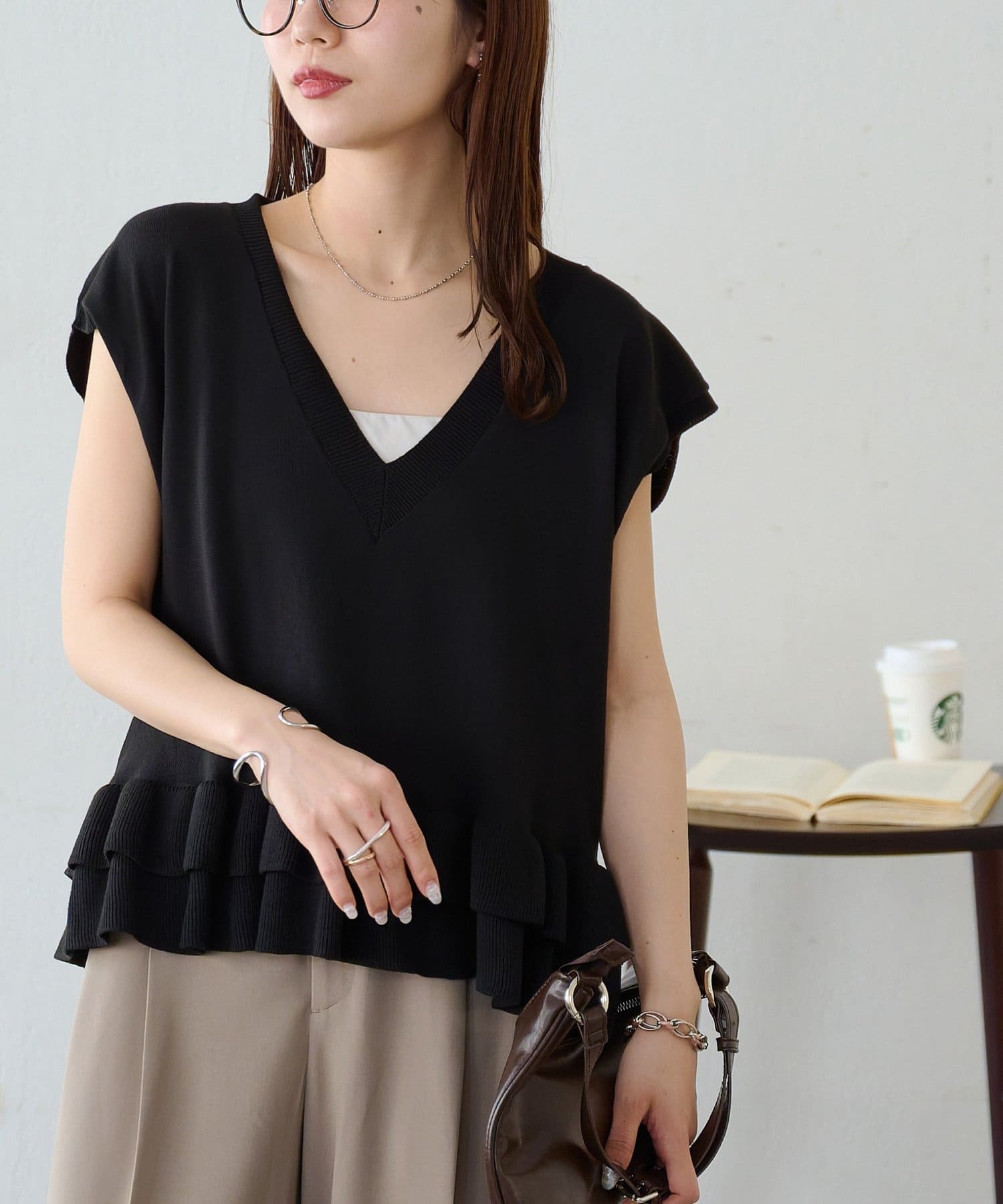 裾のフリルが華やかさをプラスする、主役級ベスト