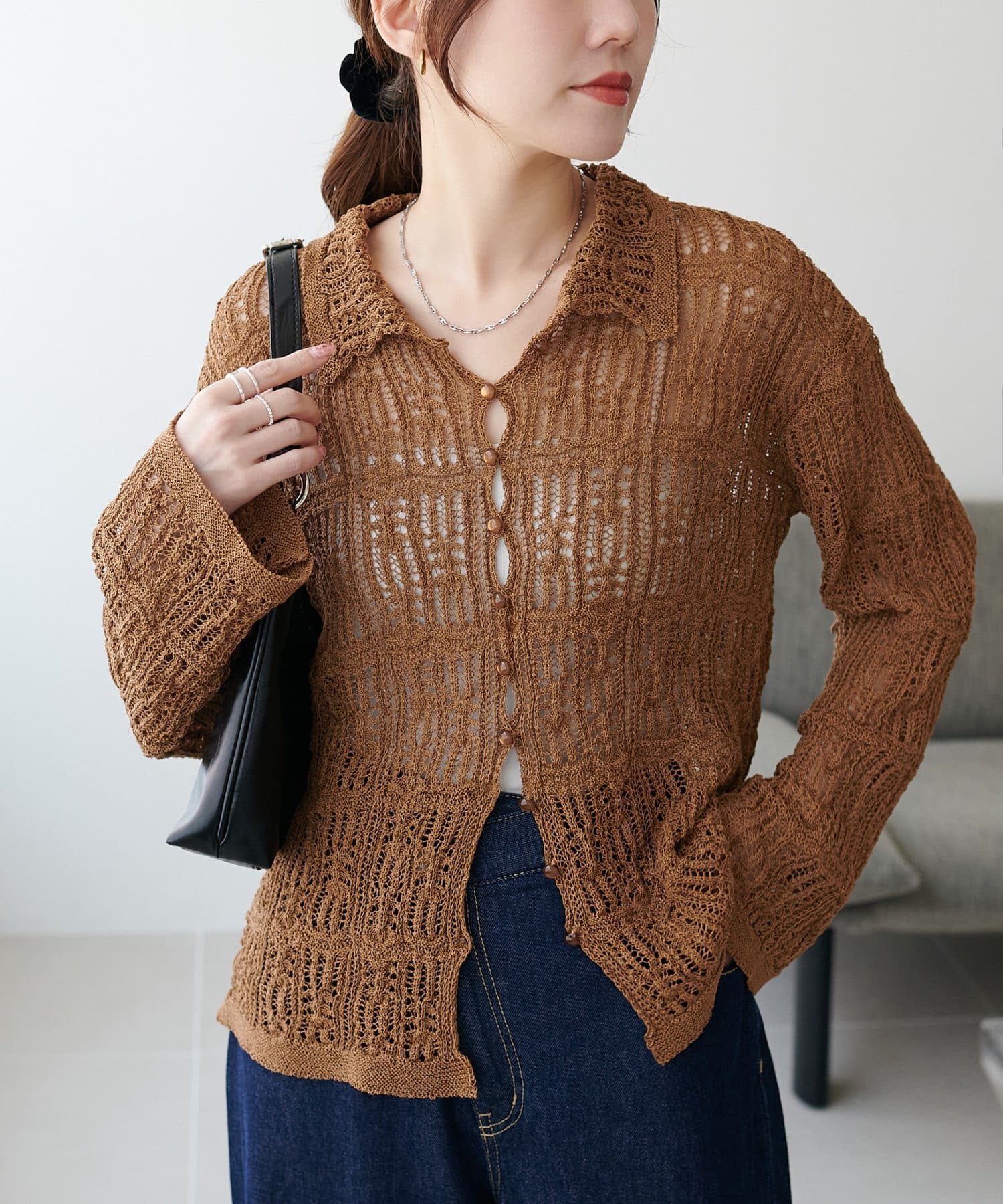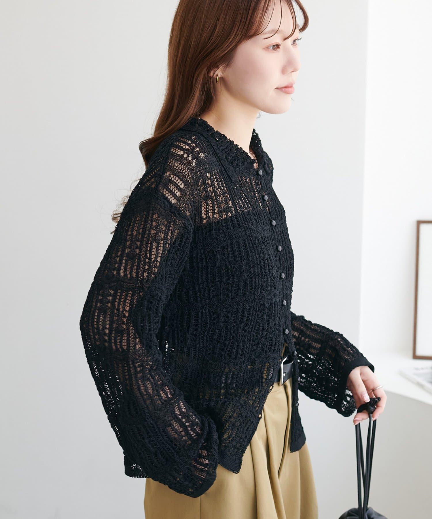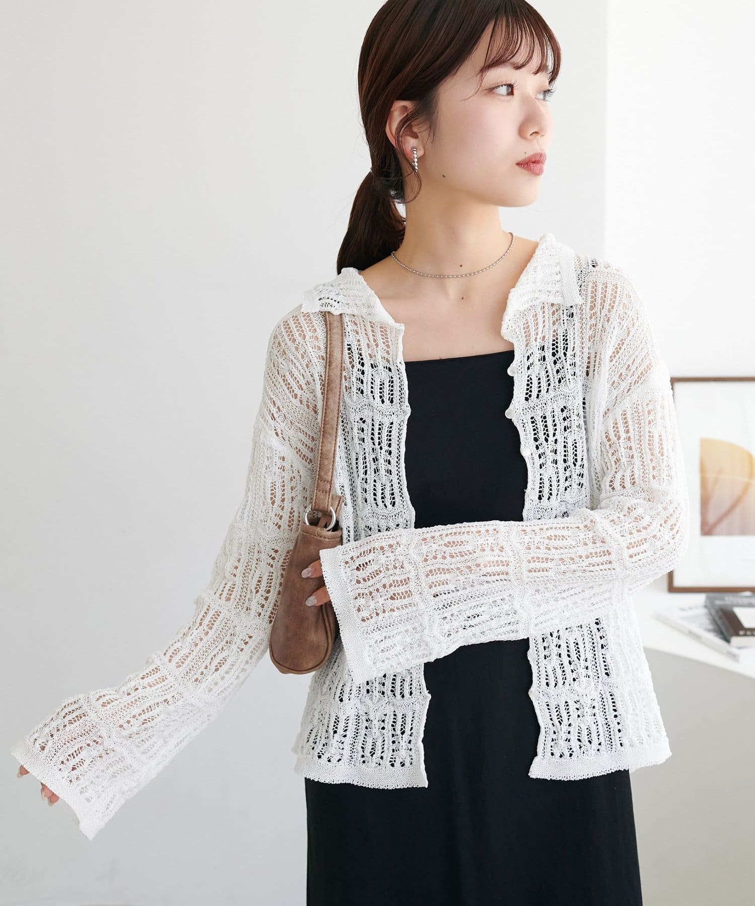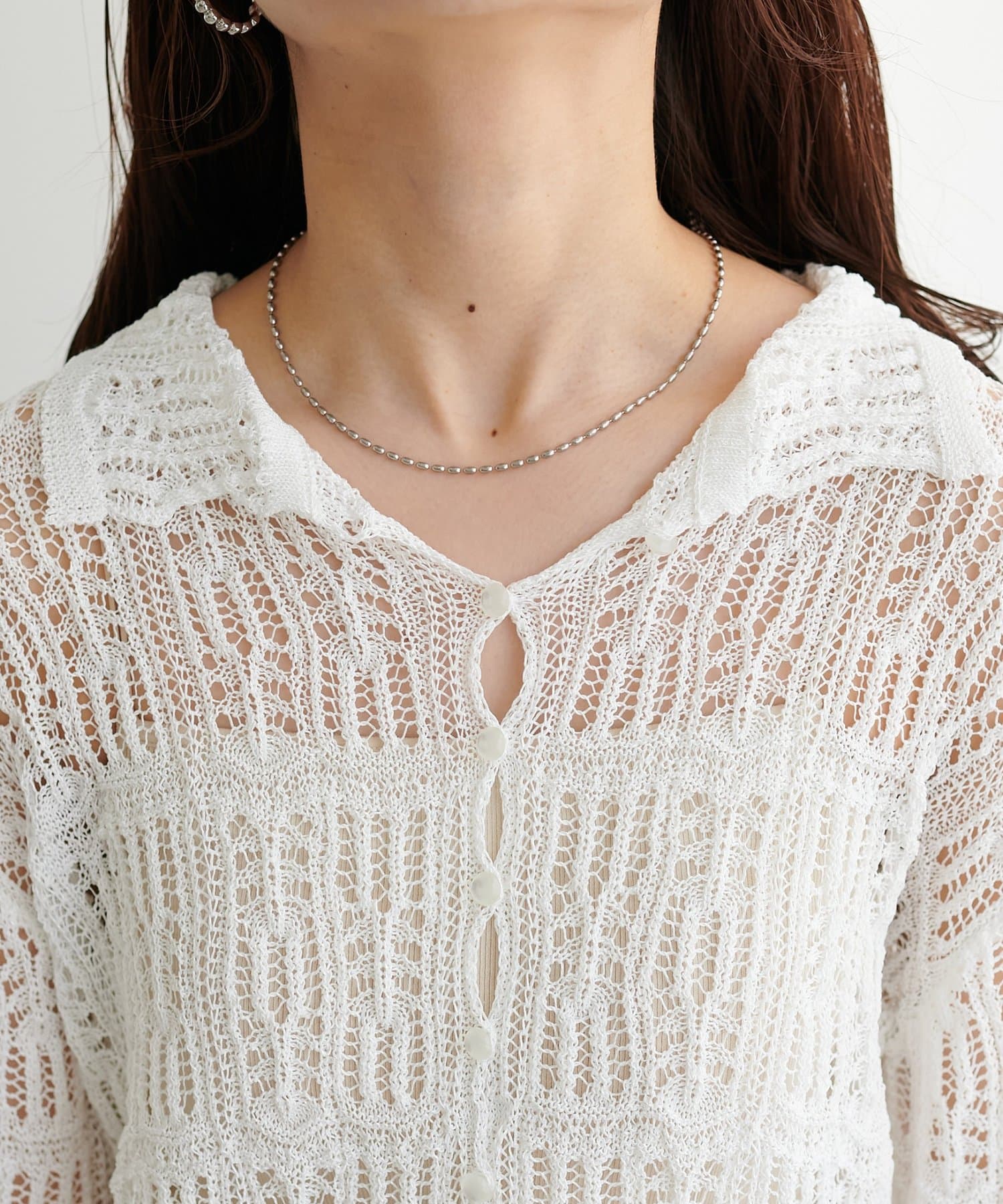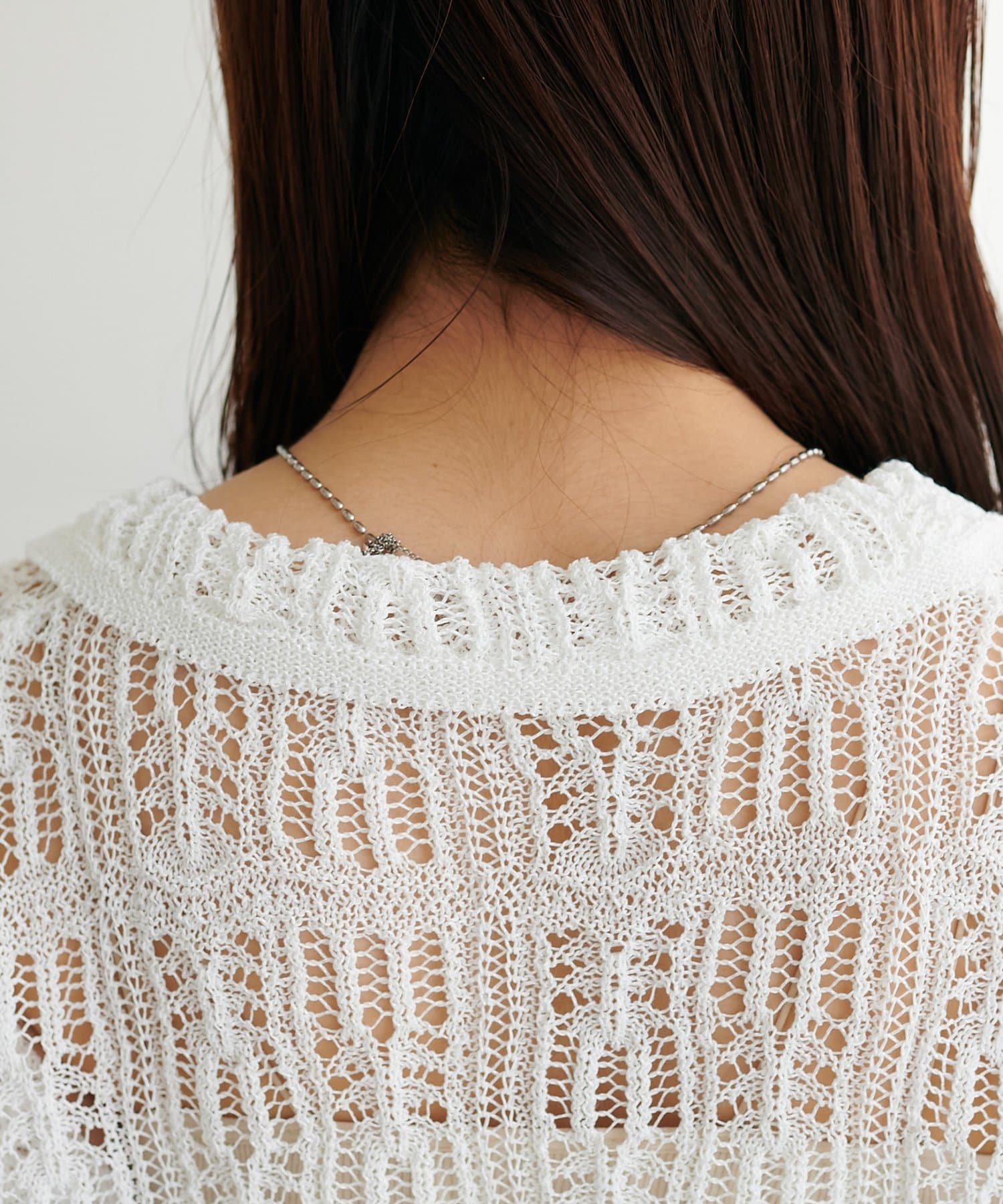 レース編み衿付きカーディガン