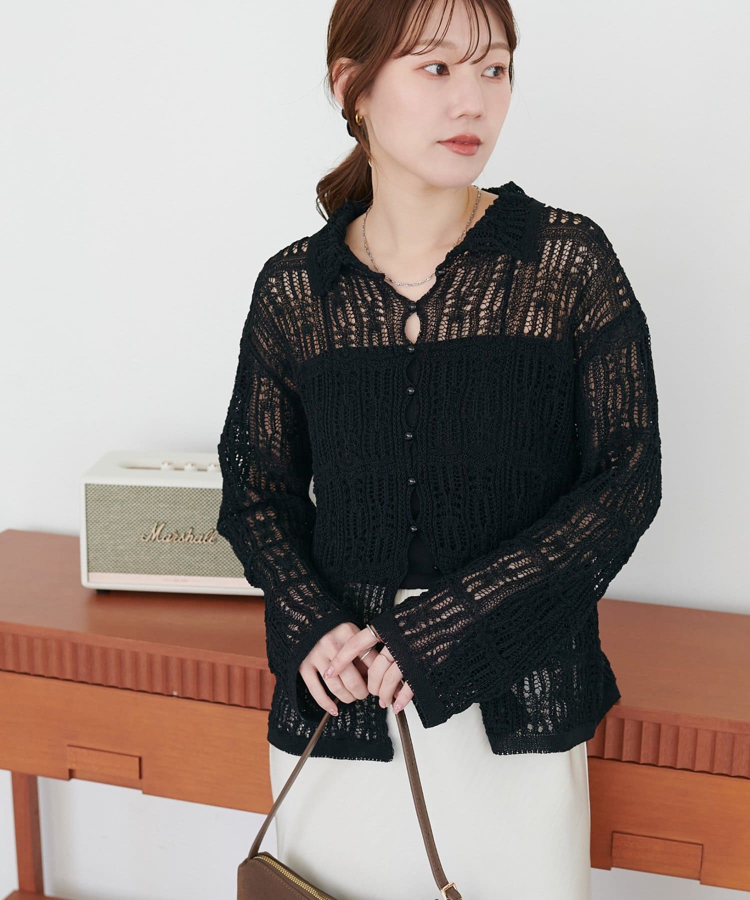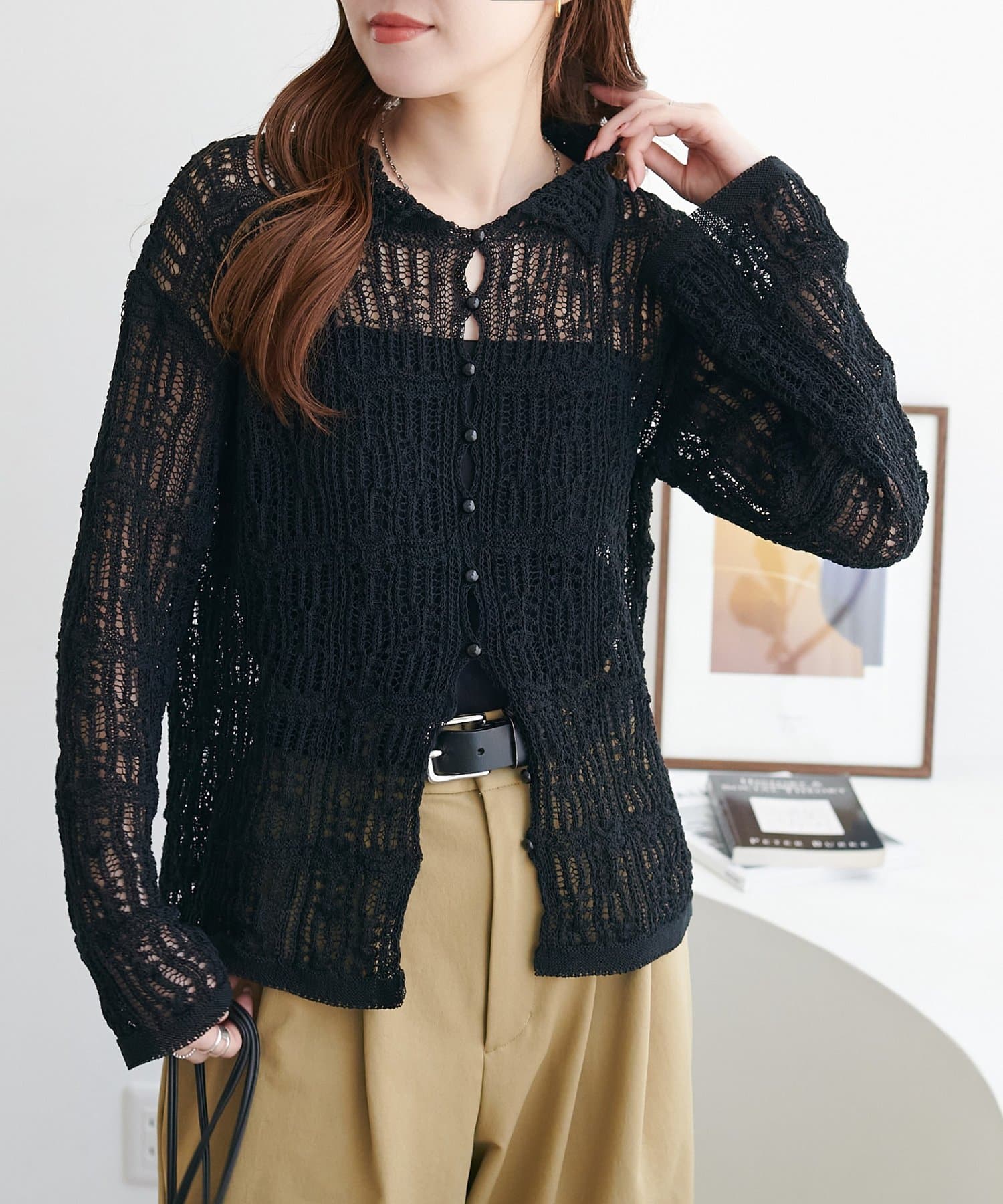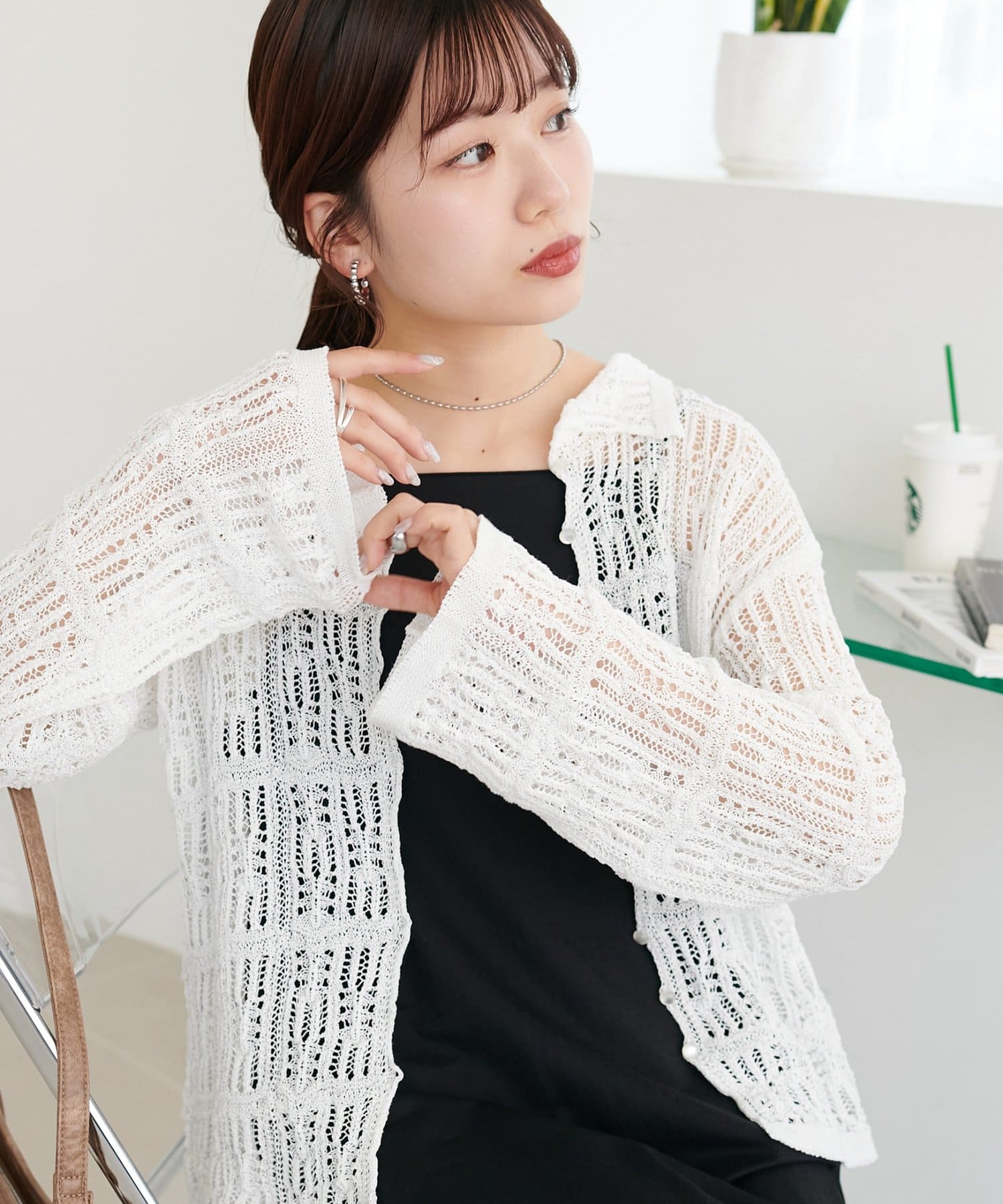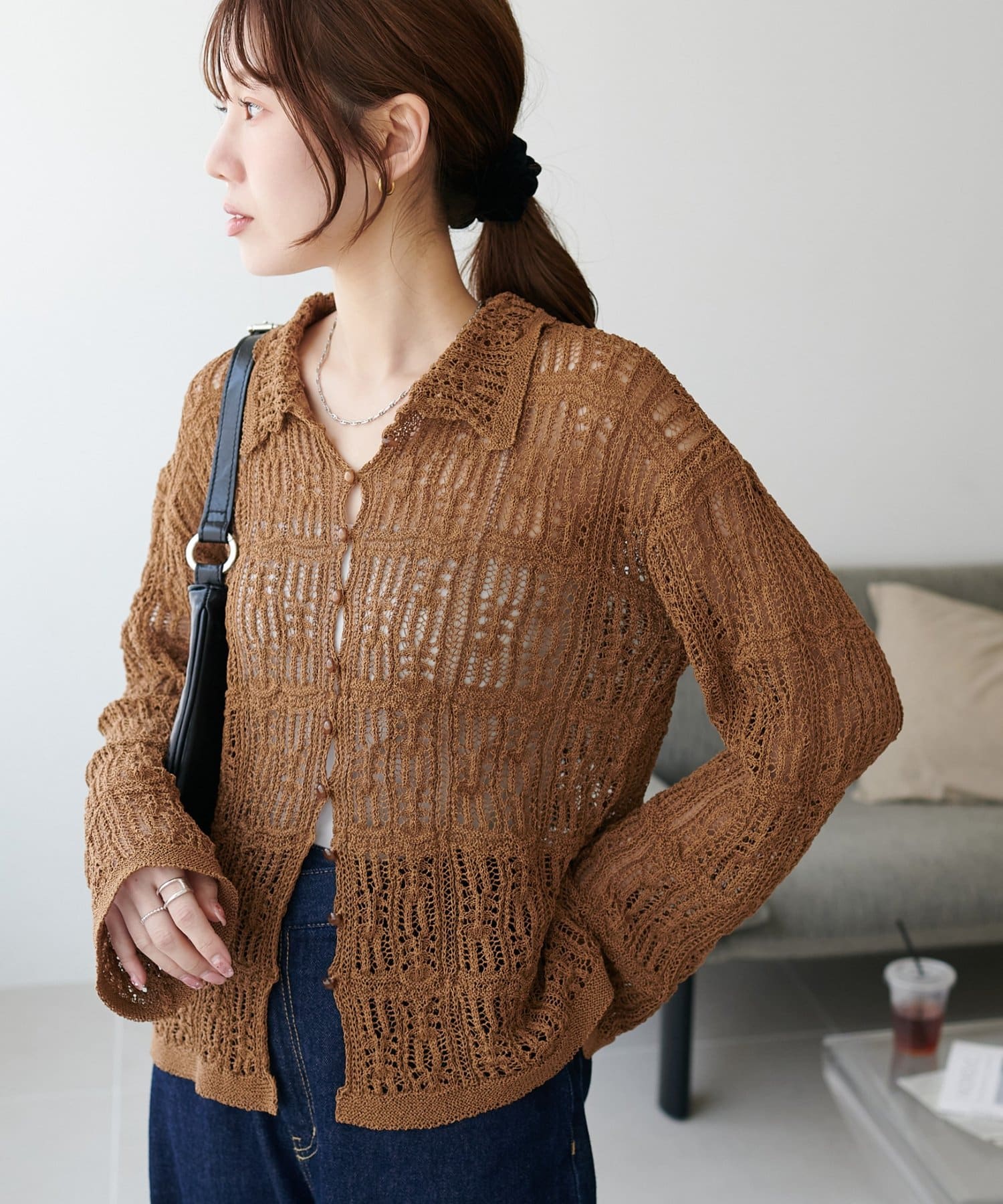 レース編み衿付きカーディガン