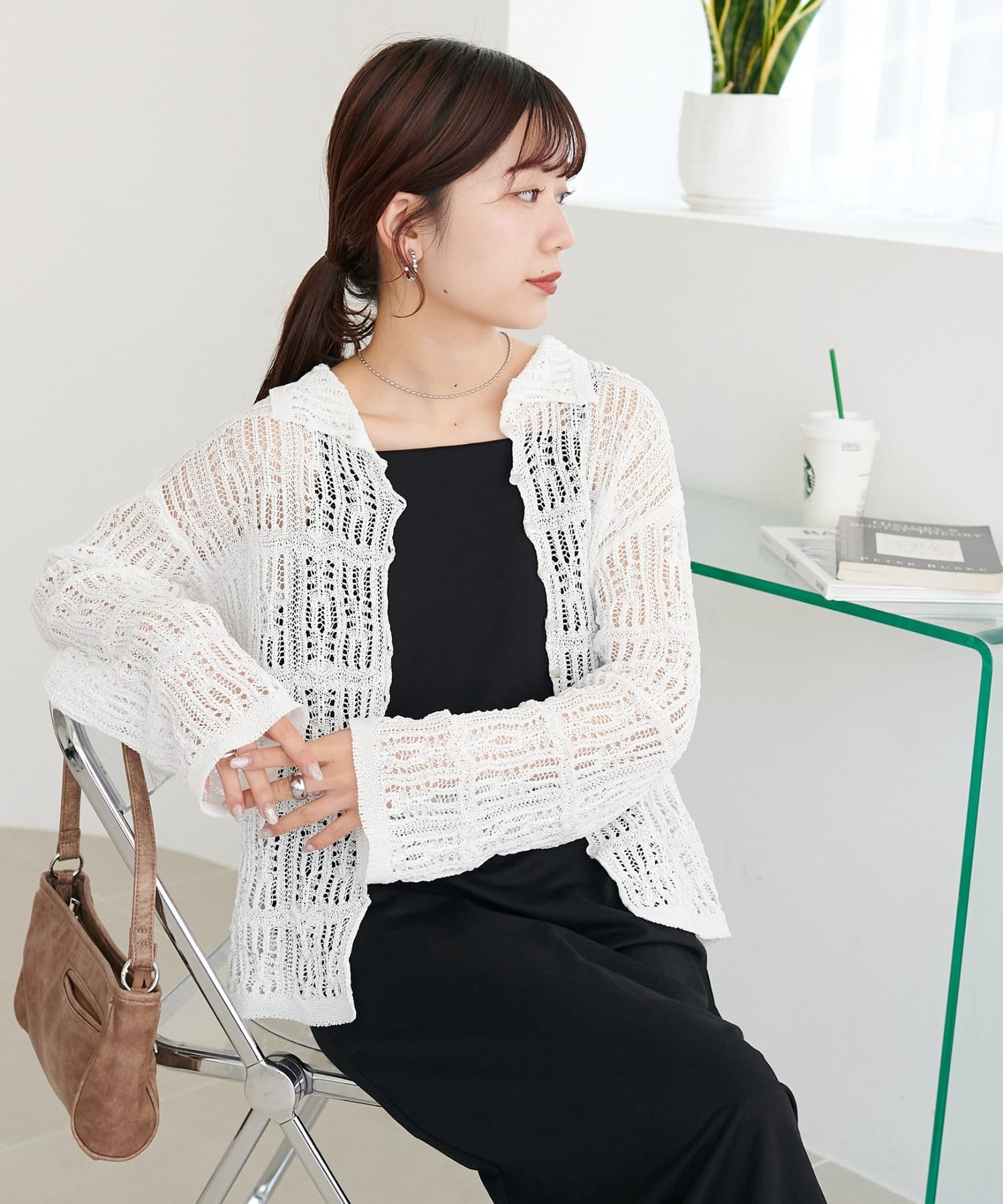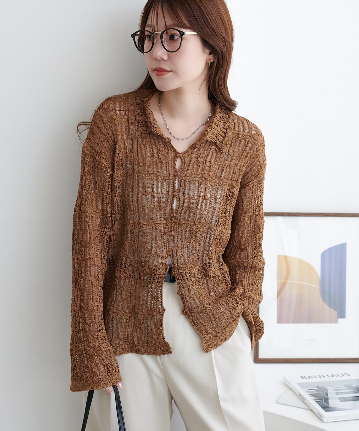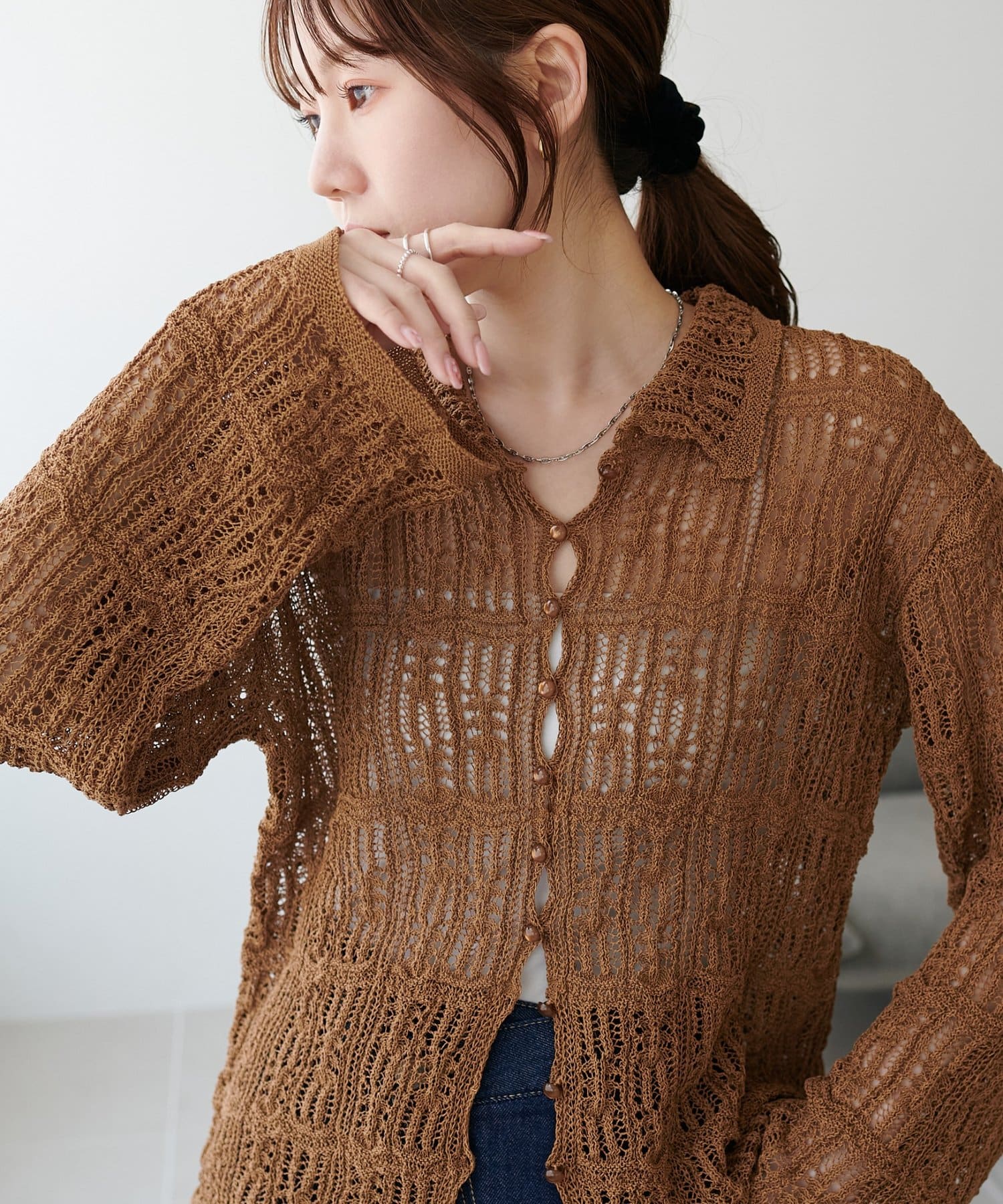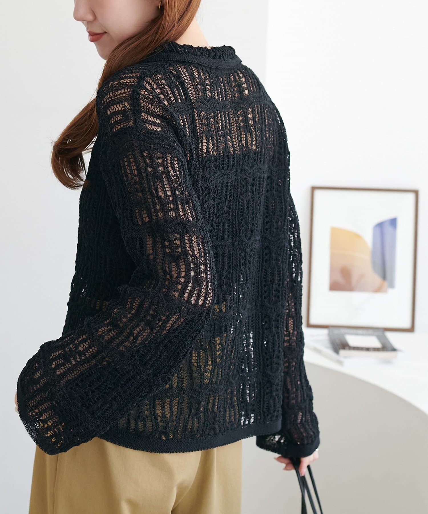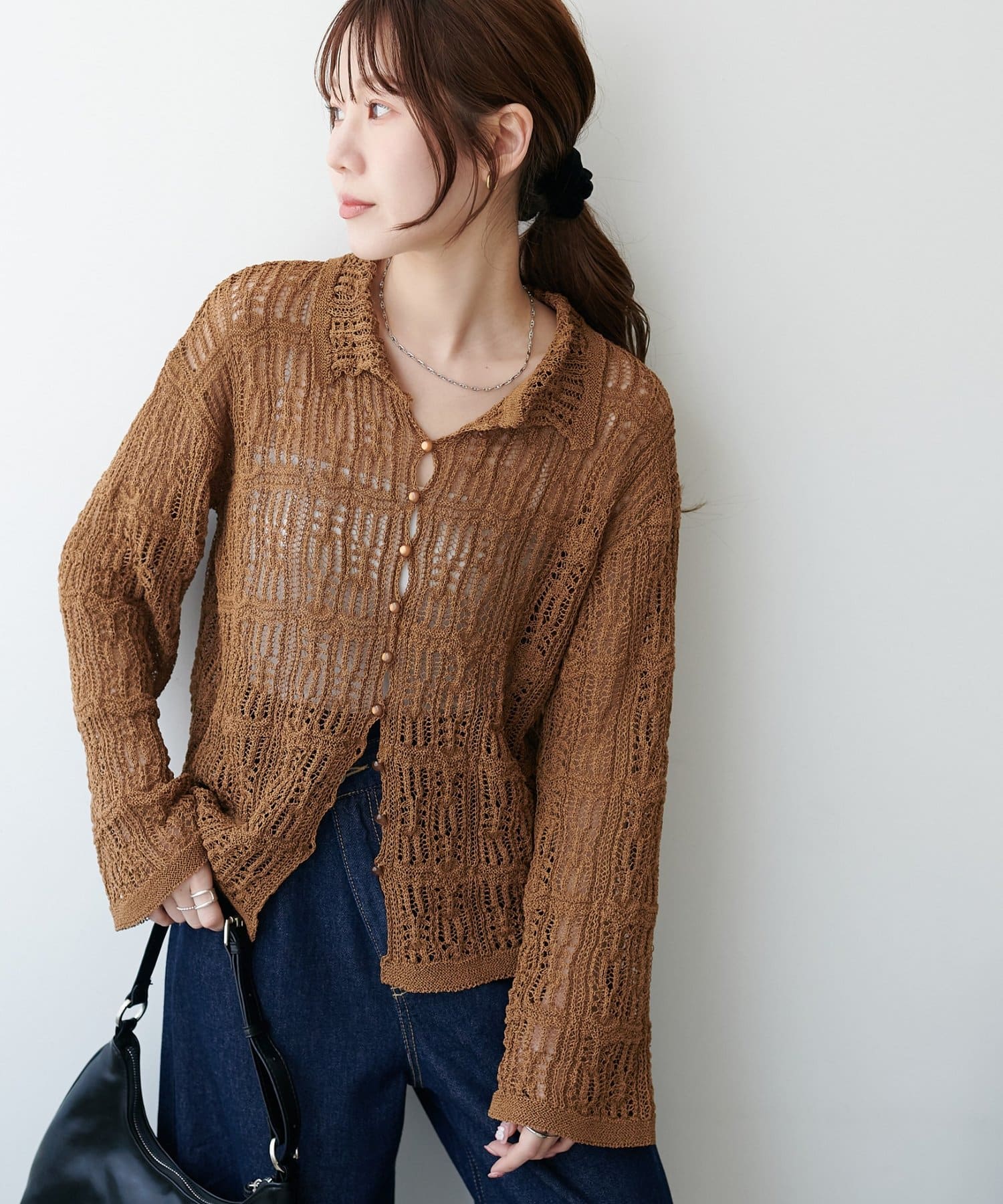 レース編み衿付きカーディガン