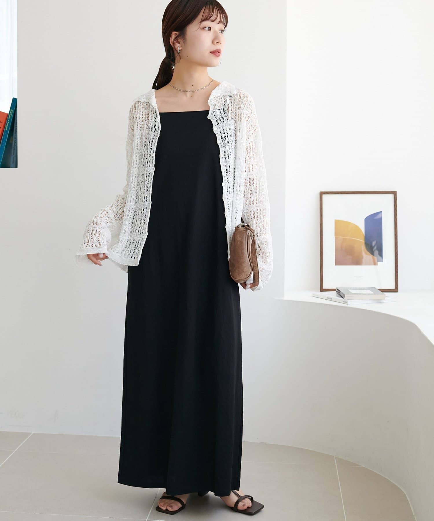 ・キャミワンピースの上に重ねるだけで、ぐっと華やかさが増し、お出かけコーデが完成◎