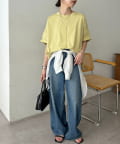 ・定番のデニムはもちろん、トレンドのカラーパンツや柄物のボトムスとも相性抜群。タックインして着こなすと、すっきりとした印象で着用いただけます。