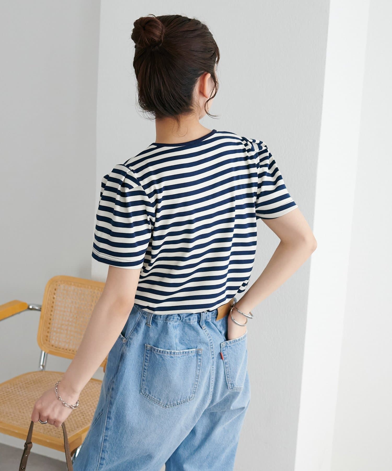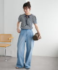 ・デニムやチノパンと合わせた、フレンチシックなカジュアルスタイルや、マーメイドスカートやフレアスカートなど、フェミニンなボトムスとも相性◎