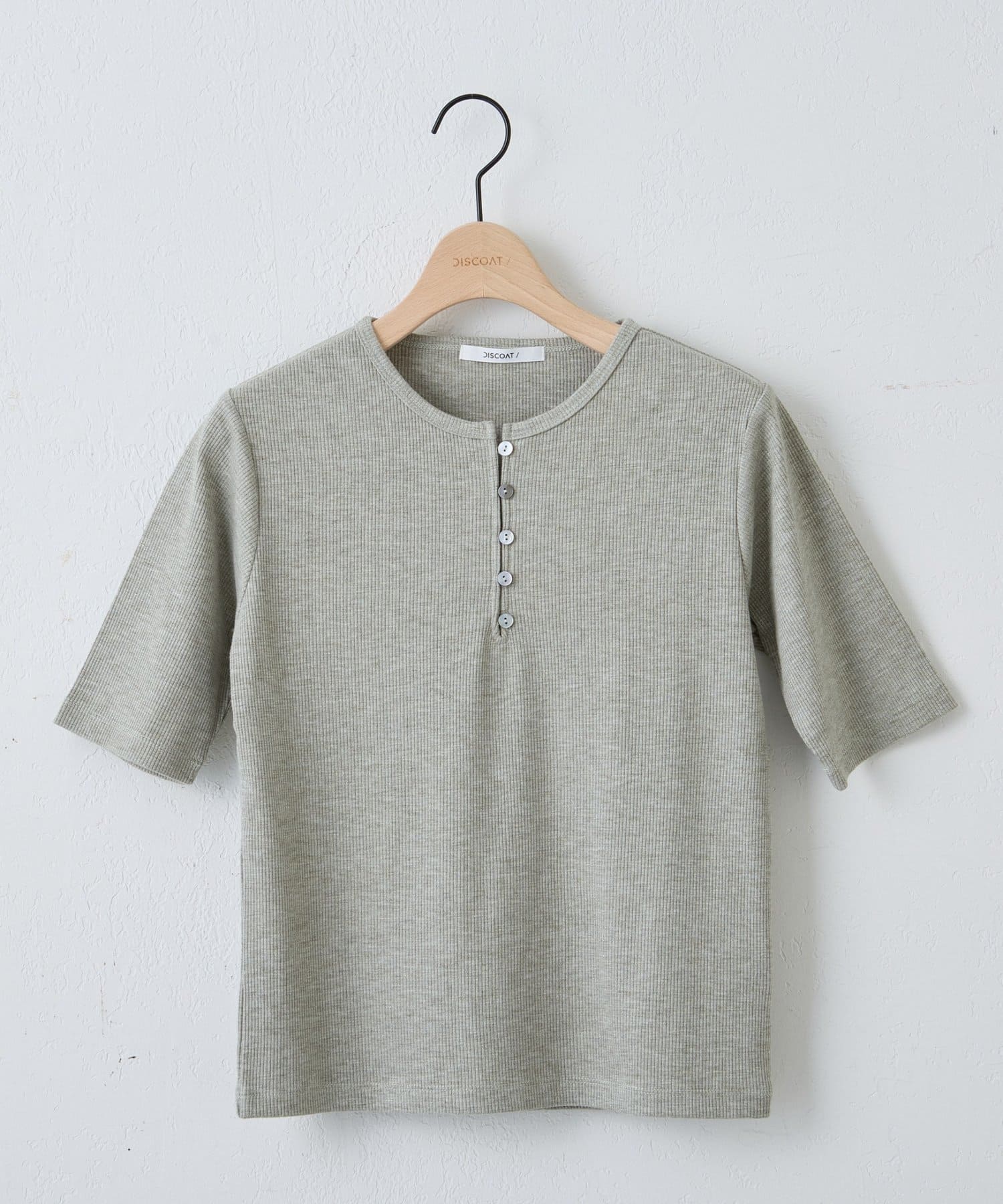 DISCOAT(ディスコート) 【WEB限定】ラメリブヘンリーTシャツ