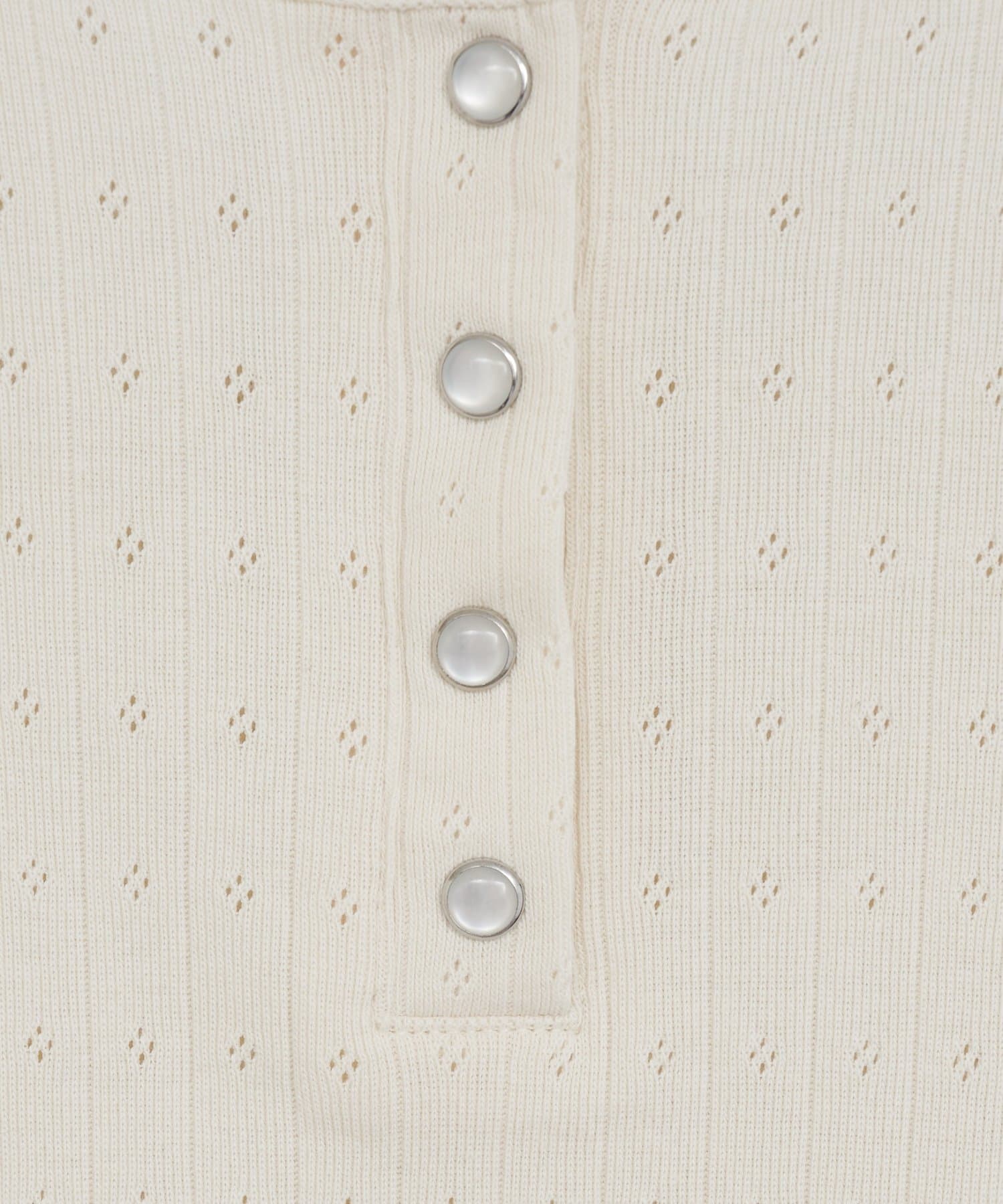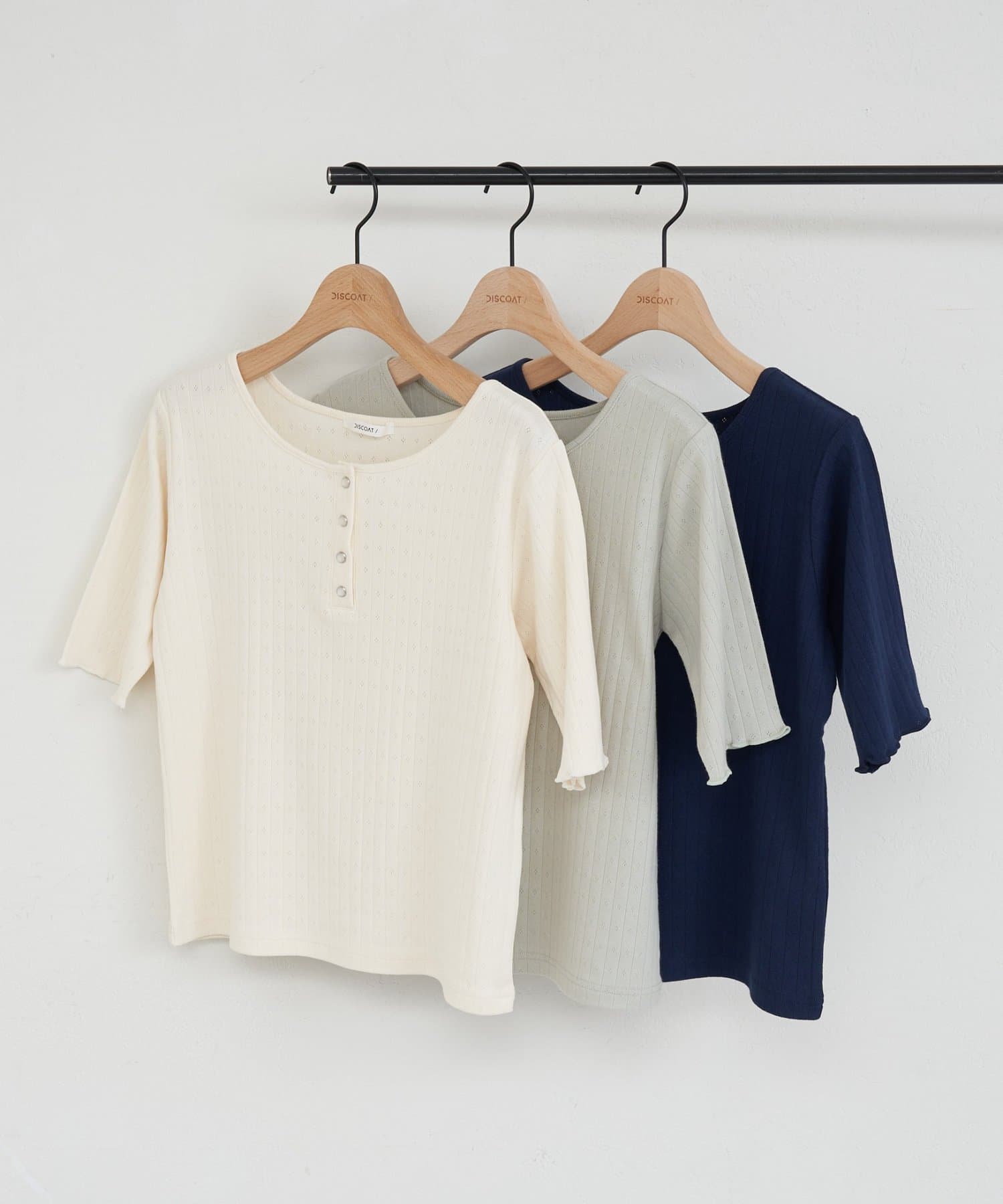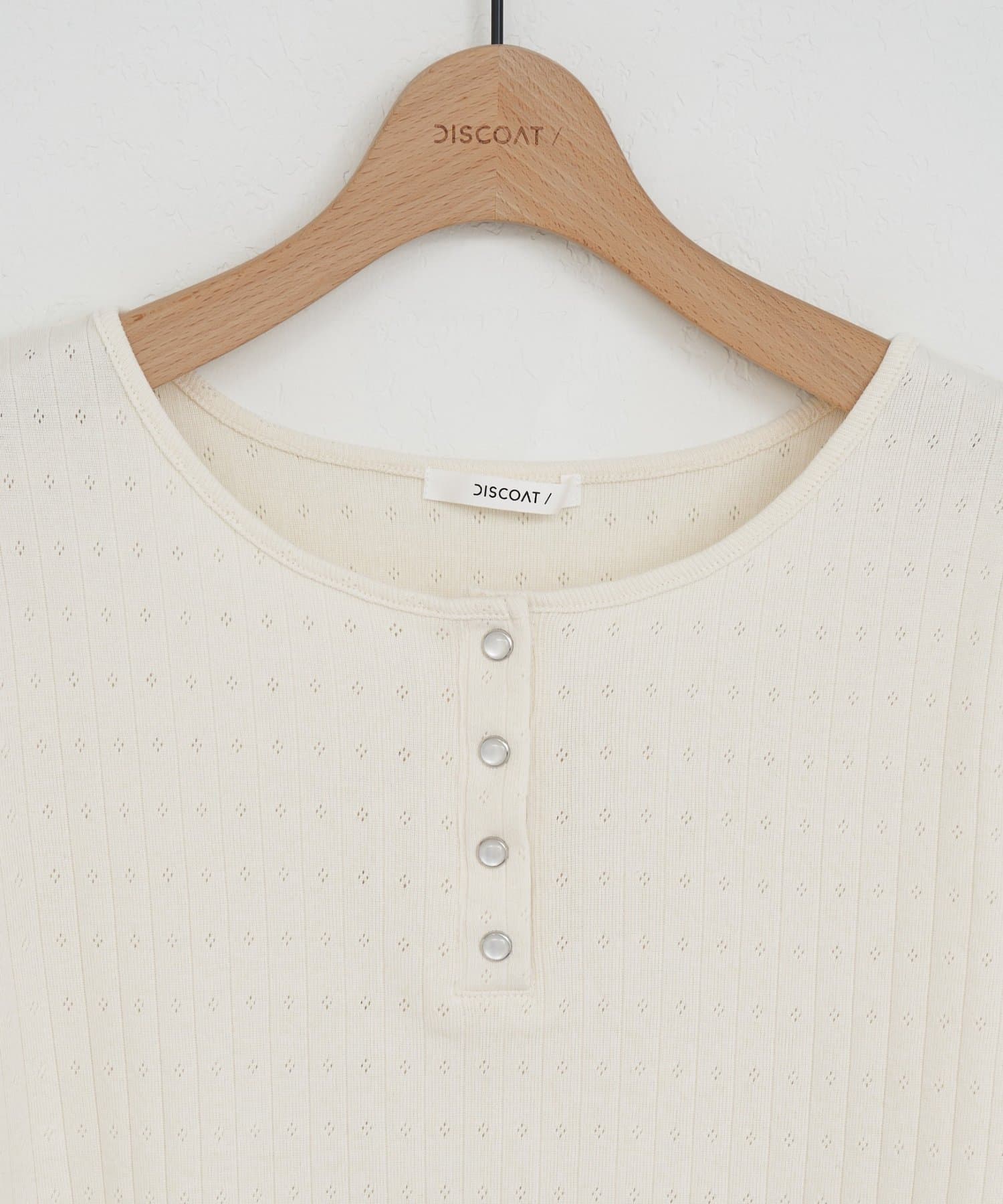 ・デコルテを綺麗に見せてくれるヘンリーネックデザイン。
