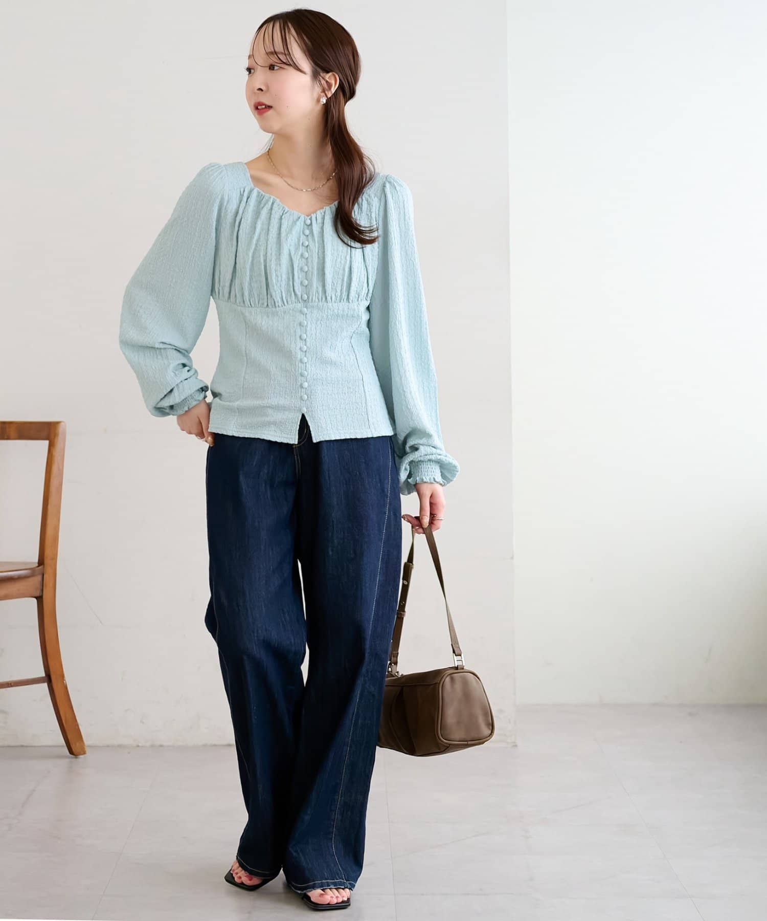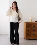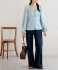 ・デニムパンツと合わせてカジュアルダウンさせれば、甘すぎない大人可愛いデイリーコーデが完成!