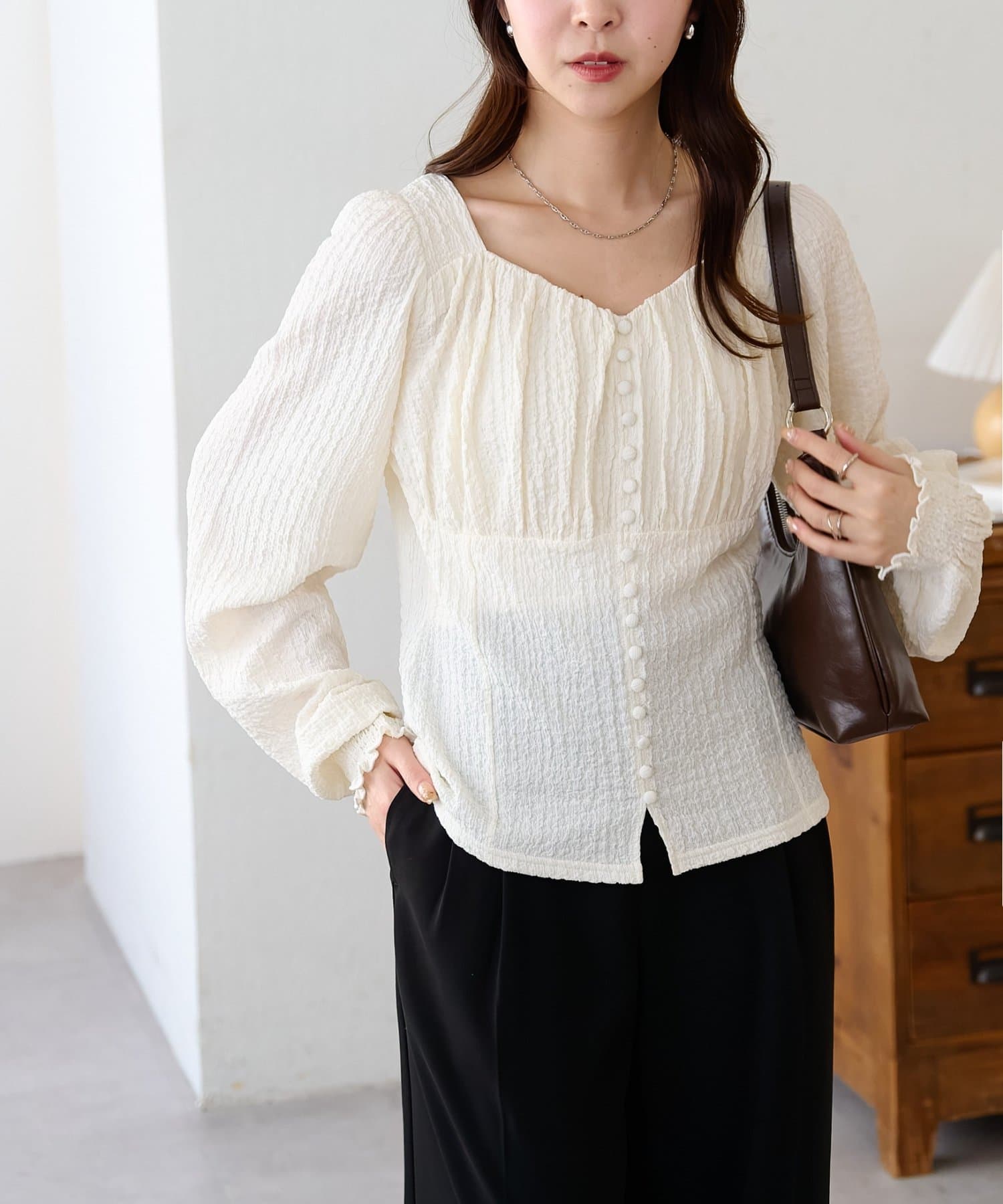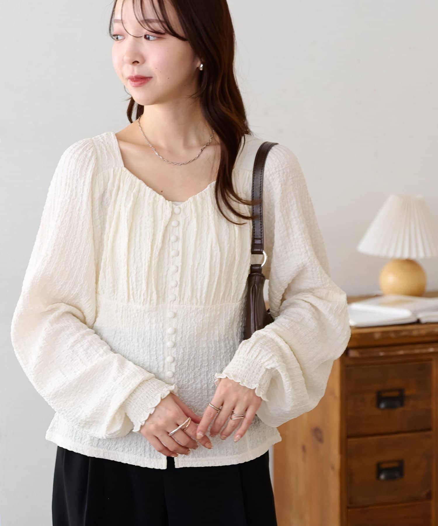 女っぽさ満点!多釦プルオーバー