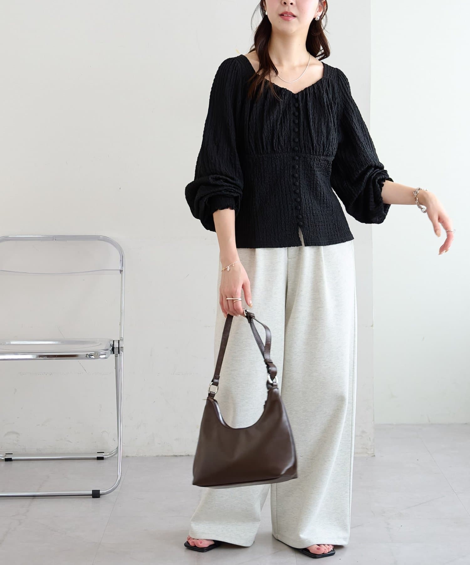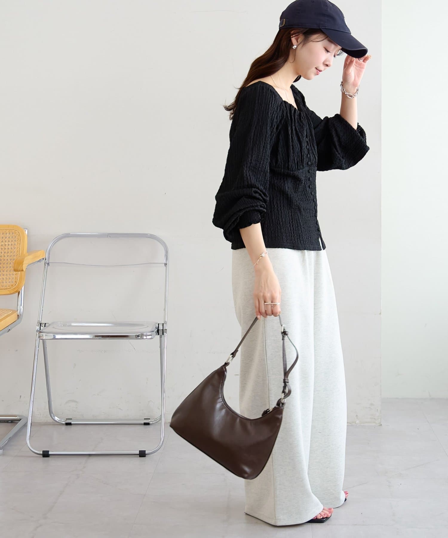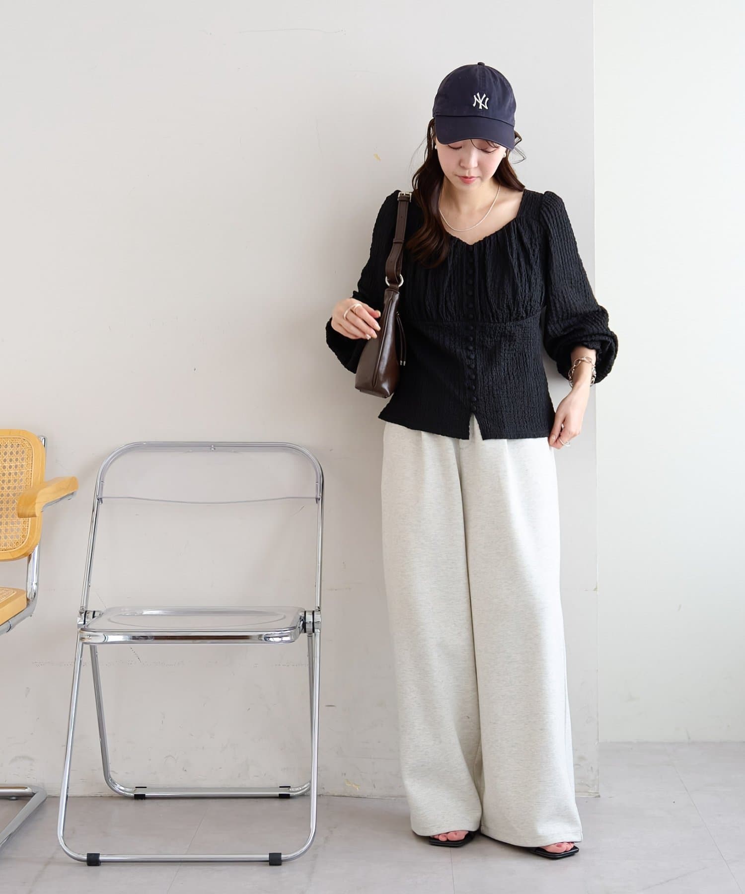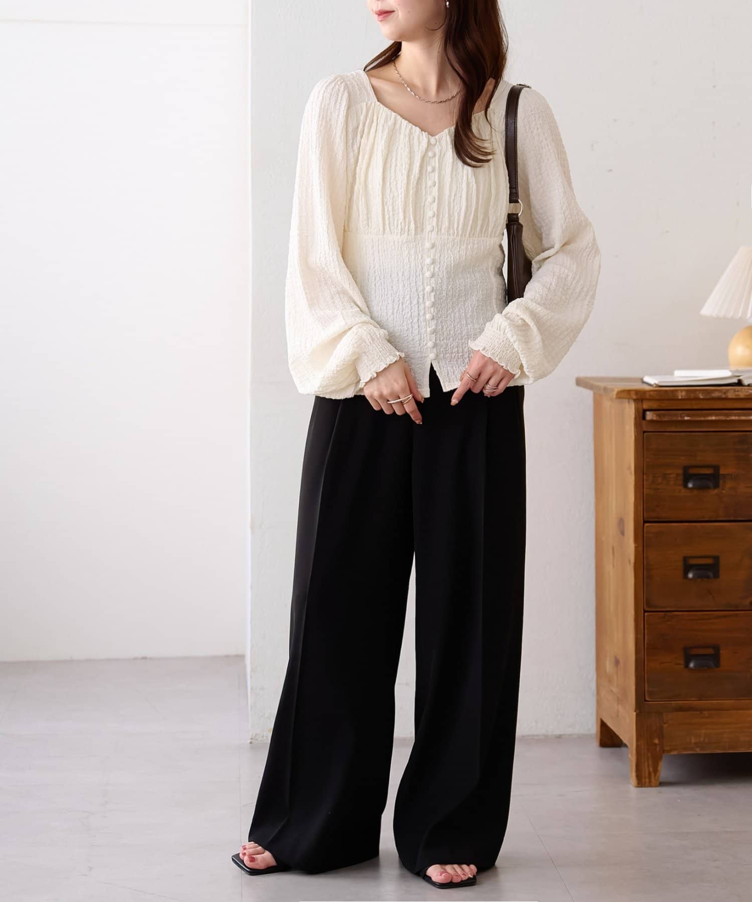 目線が上に集まりスタイルアップして見えます♡
