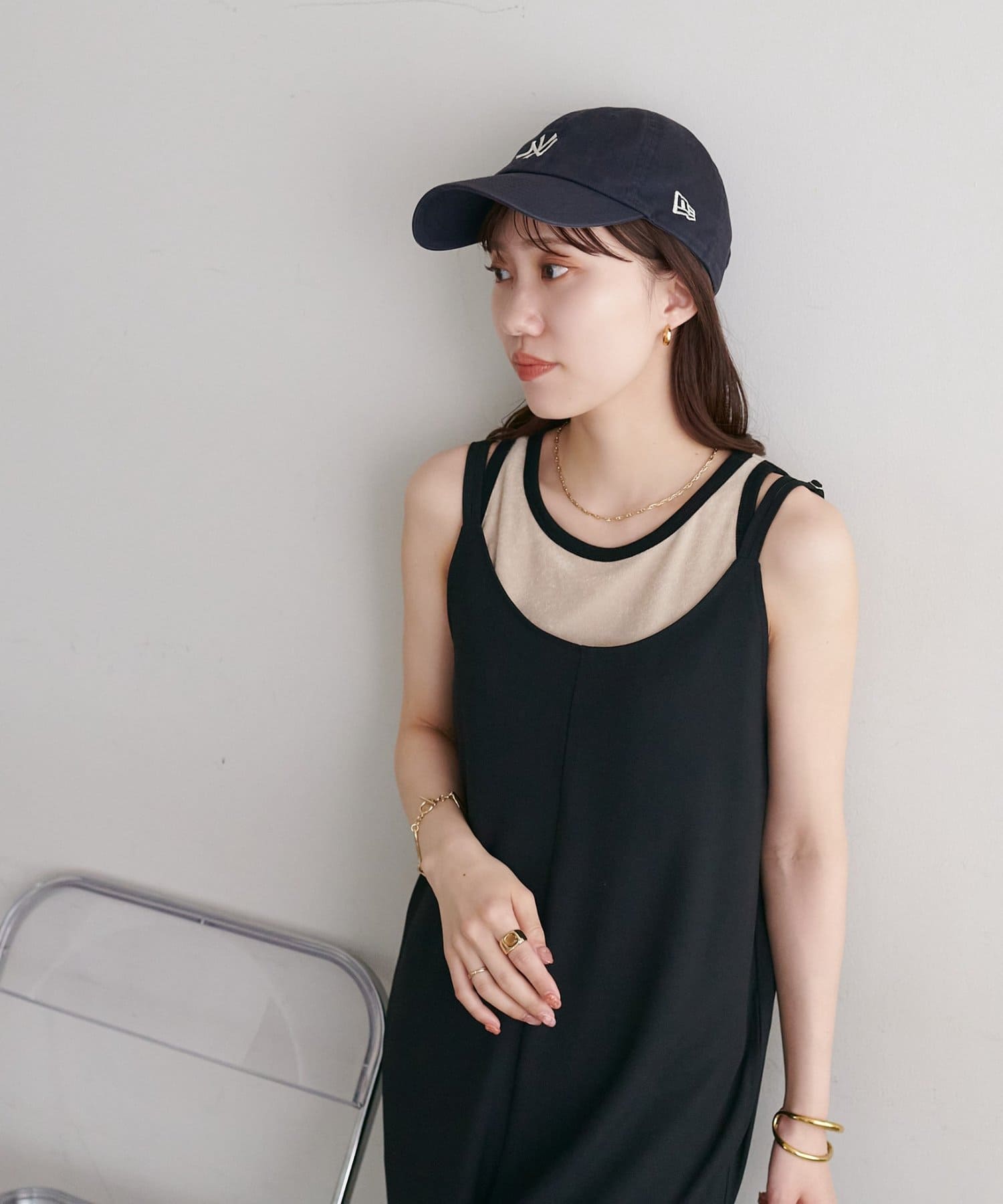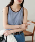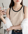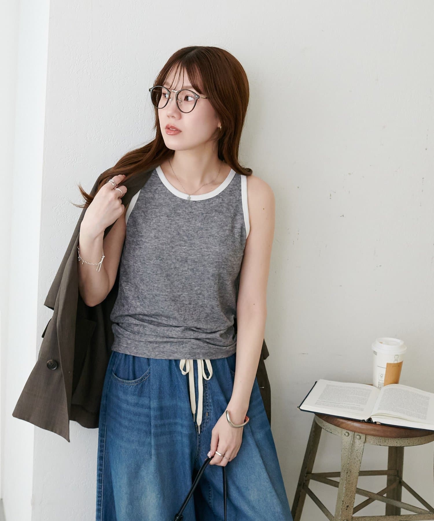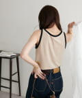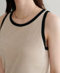 ・ネックとアームホールの配色パイピングがコーディネートのアクセントに。