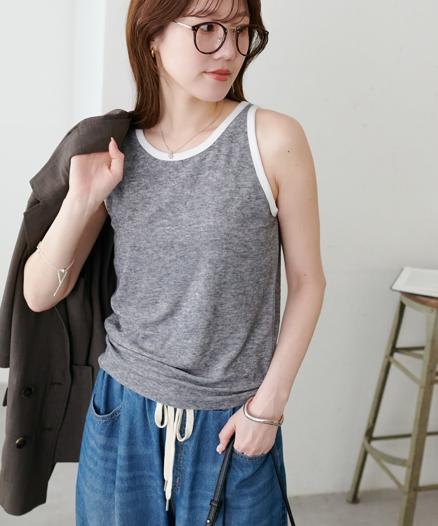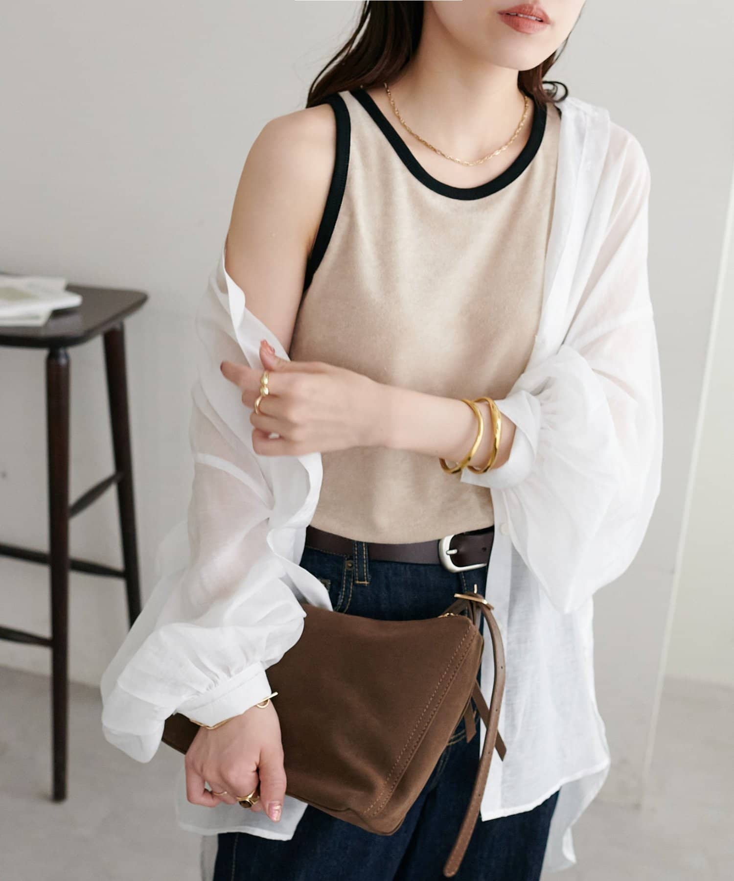 一枚でも、シャツやカーディガンのインナーとしても活躍するアイテムです。