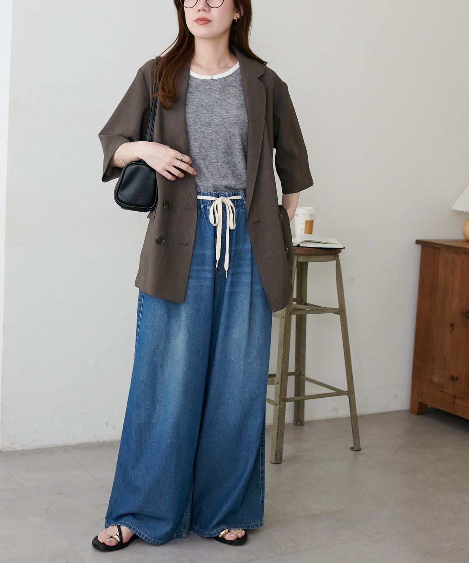 ・デニムと合わせてカジュアルに、シャツを羽織ればこなれ感のあるスタイリングに。
