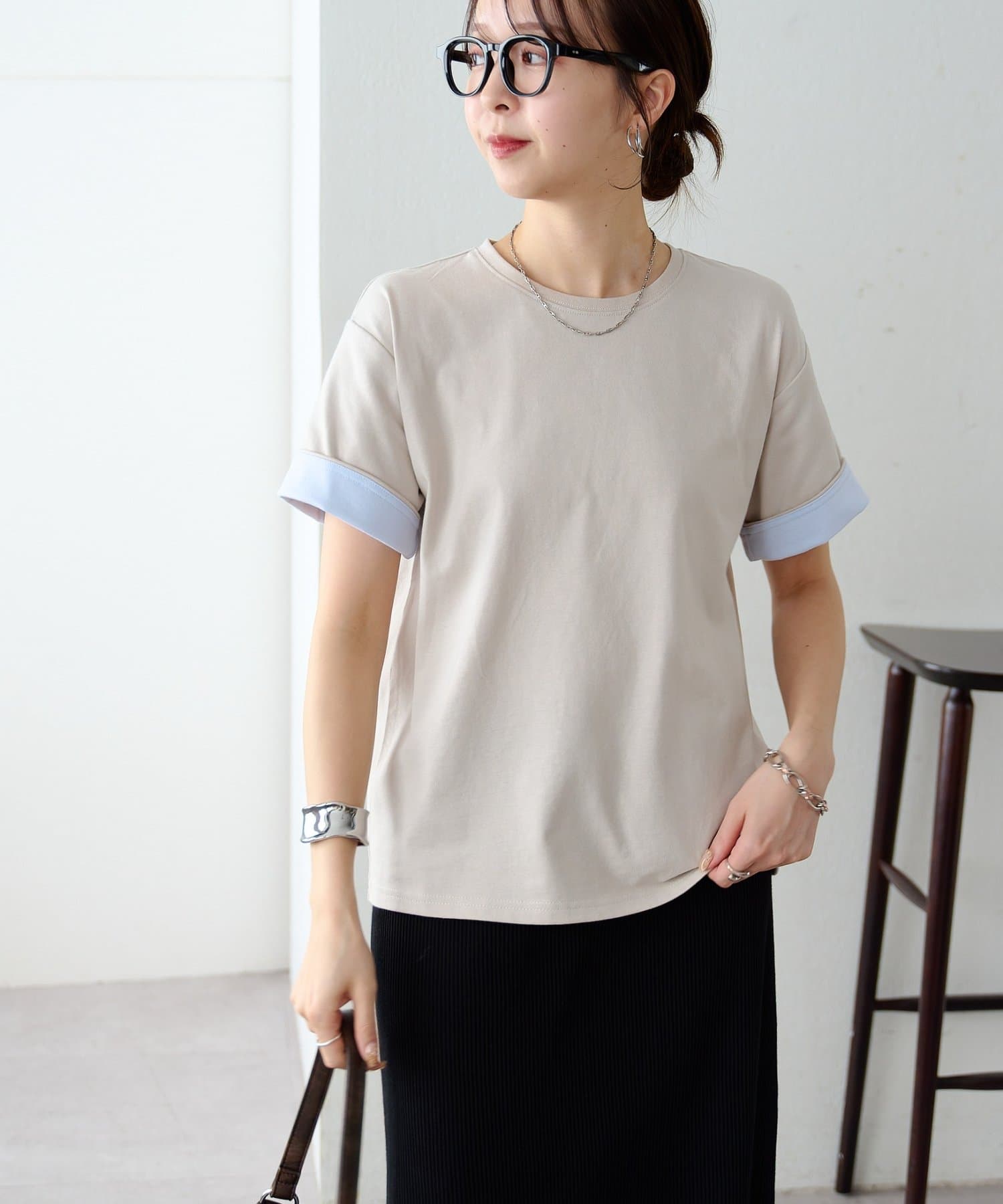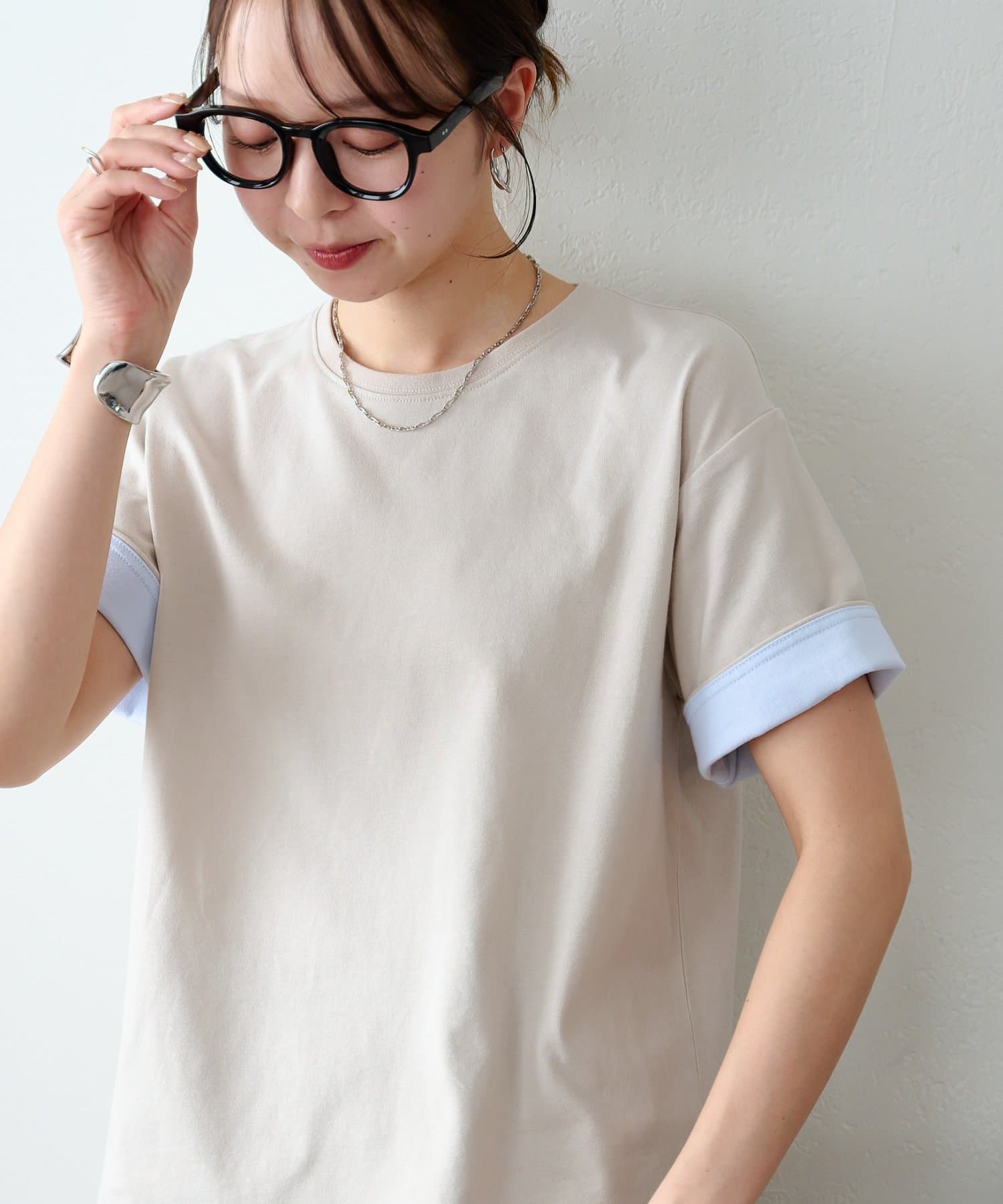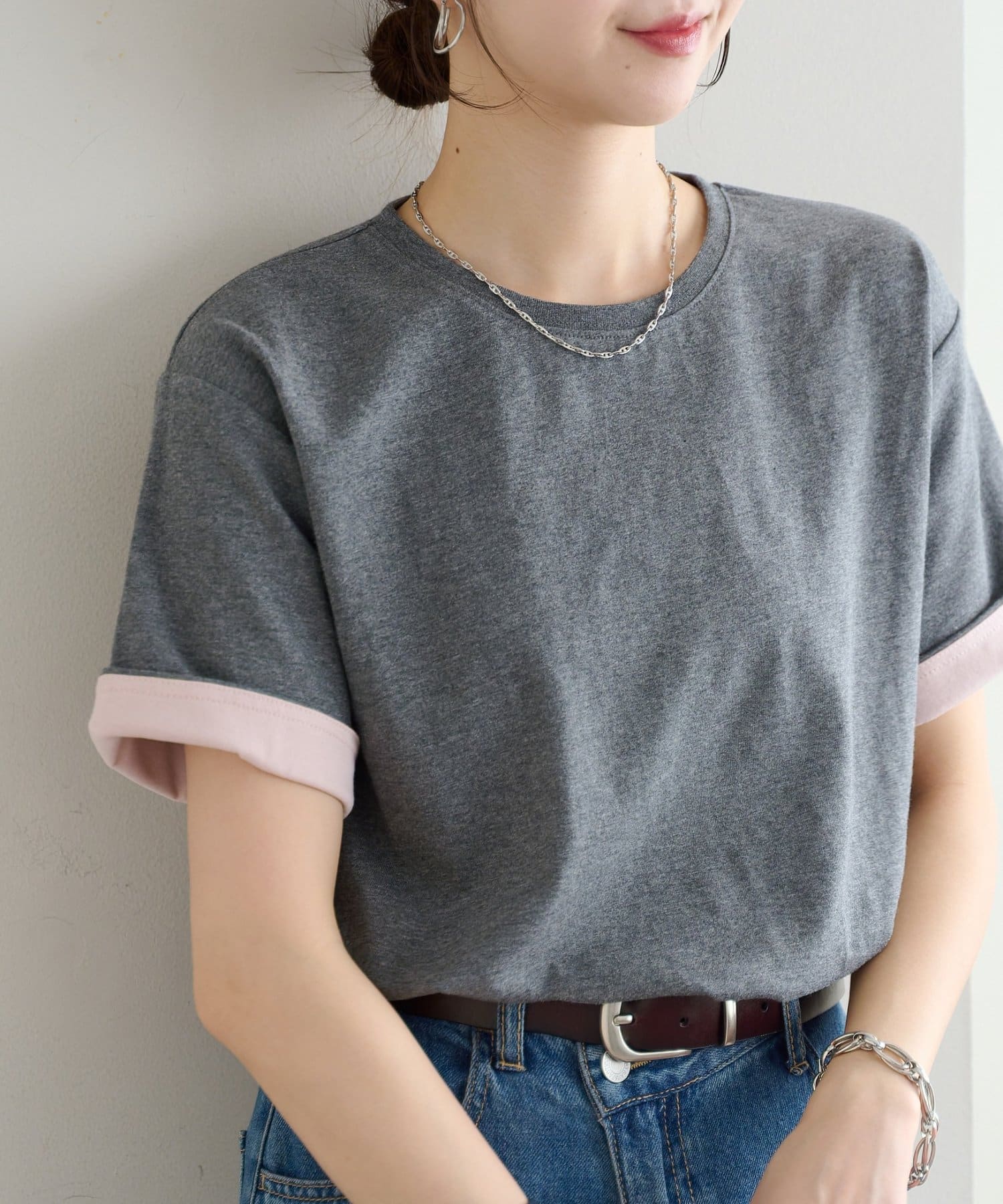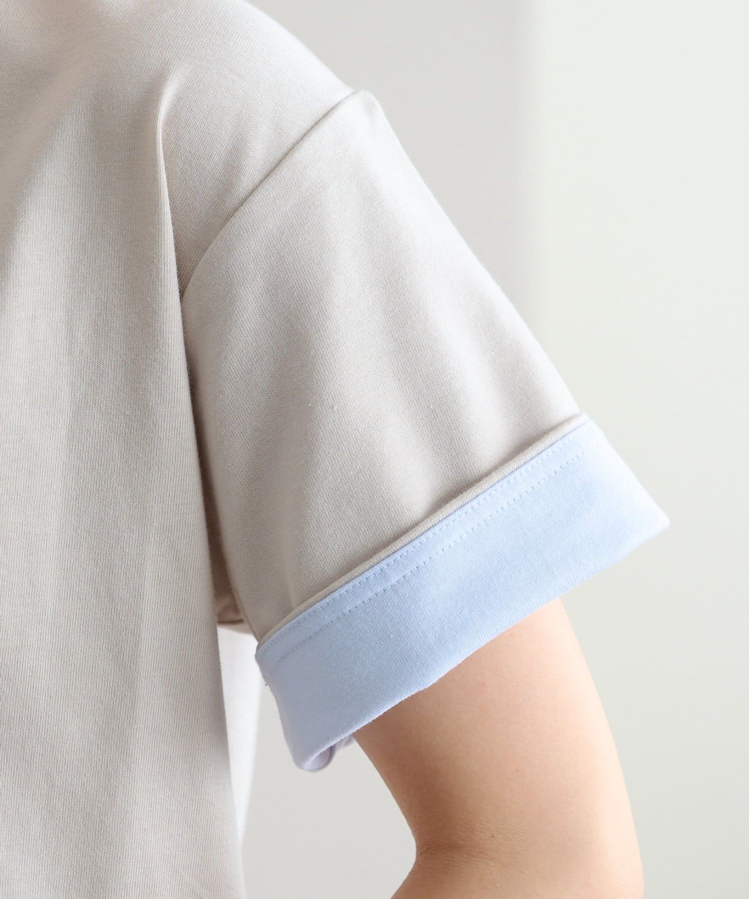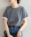 袖のバイカラーがアクセントのクルーネックTシャツ