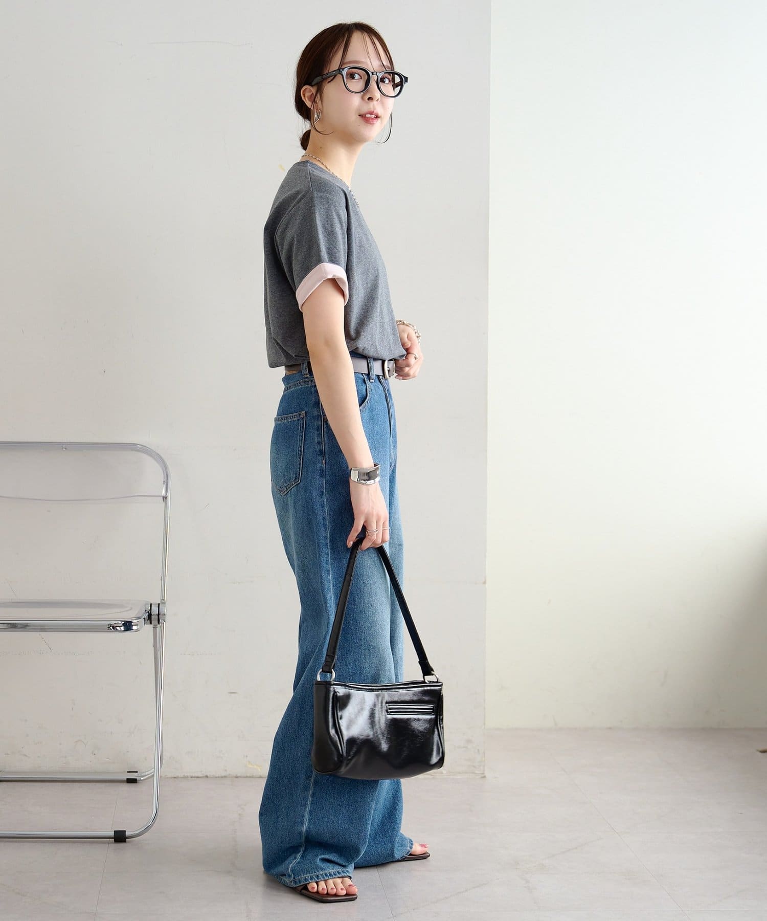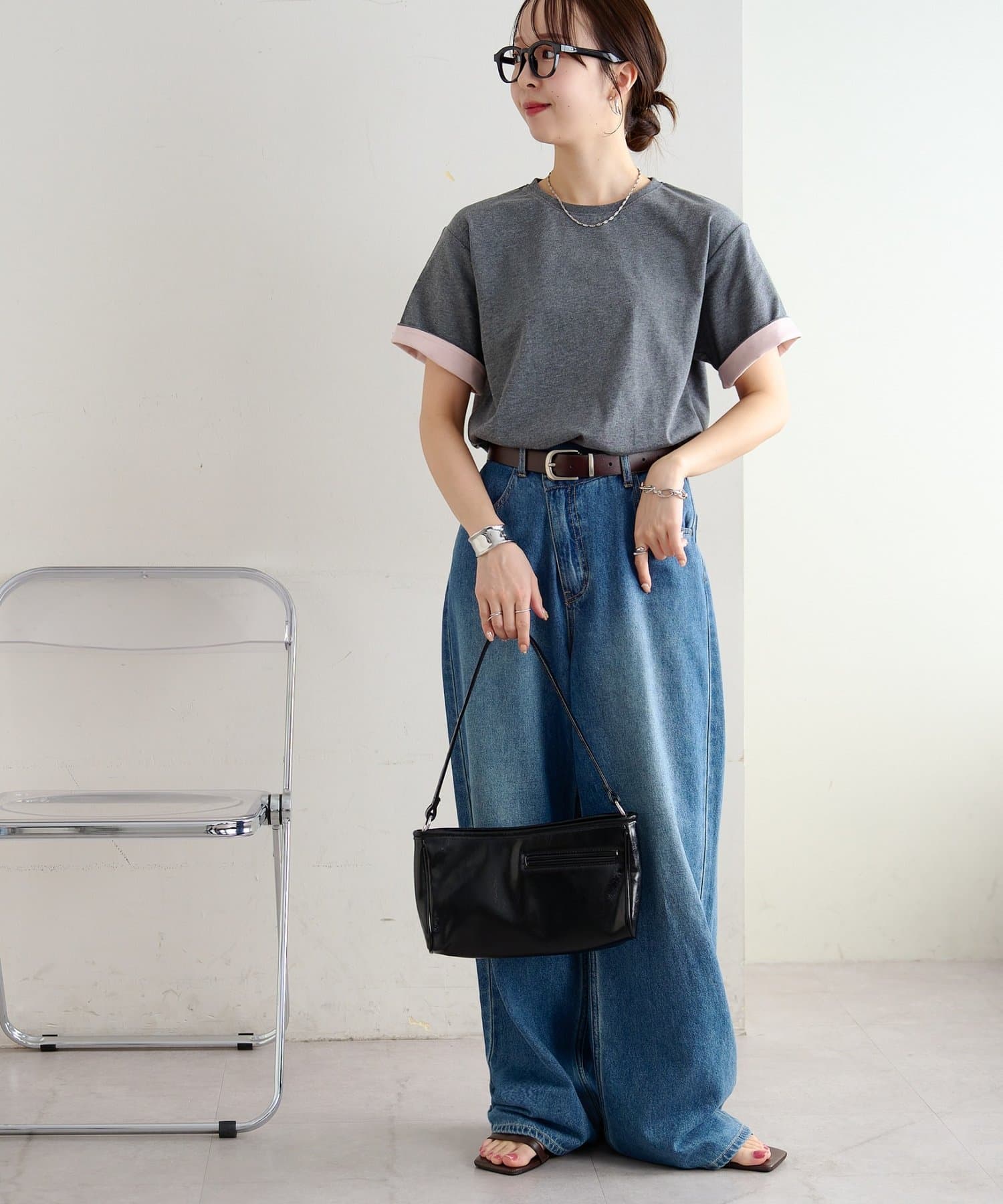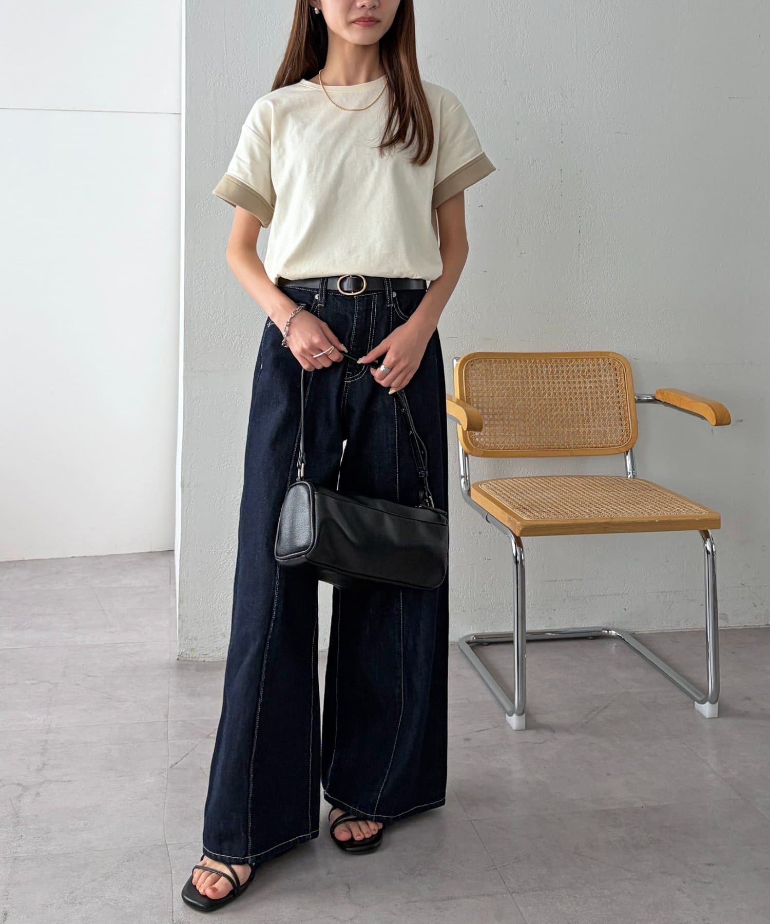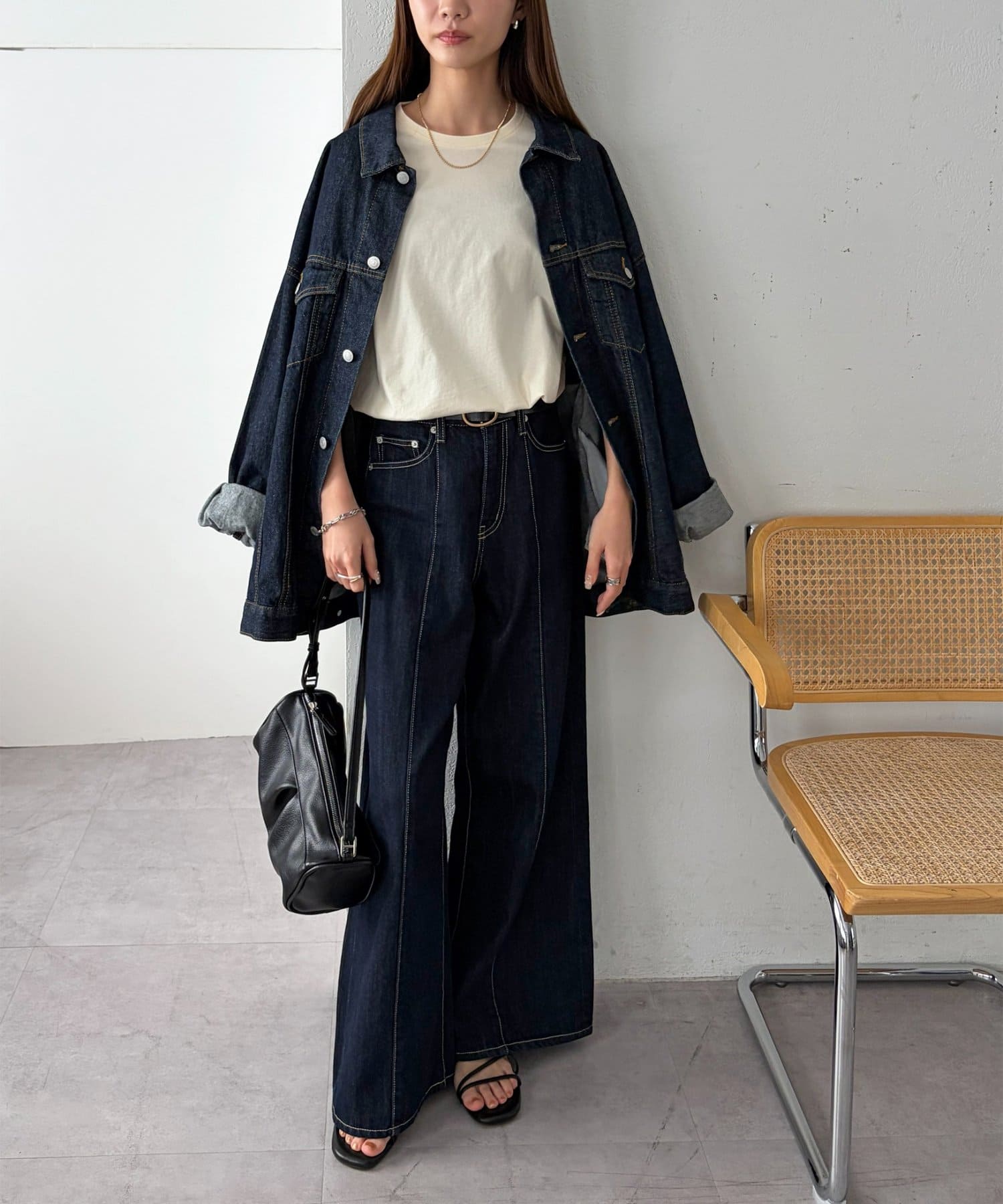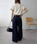 ▶ハイウエストステッチ使いデニムワイドパンツ