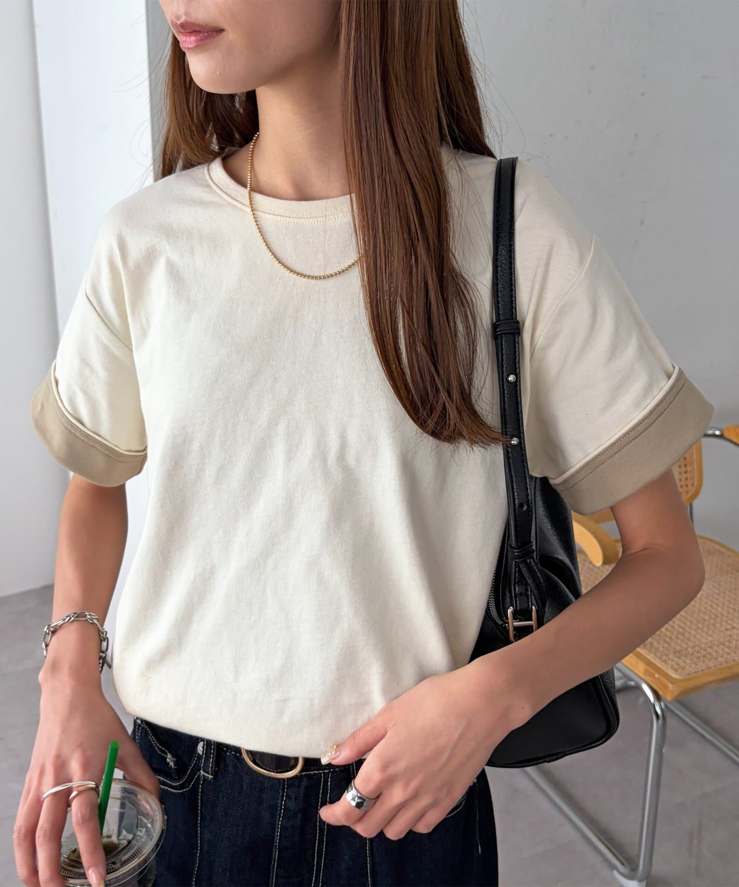 ・袖を折り返すと見える配色が可愛い一枚