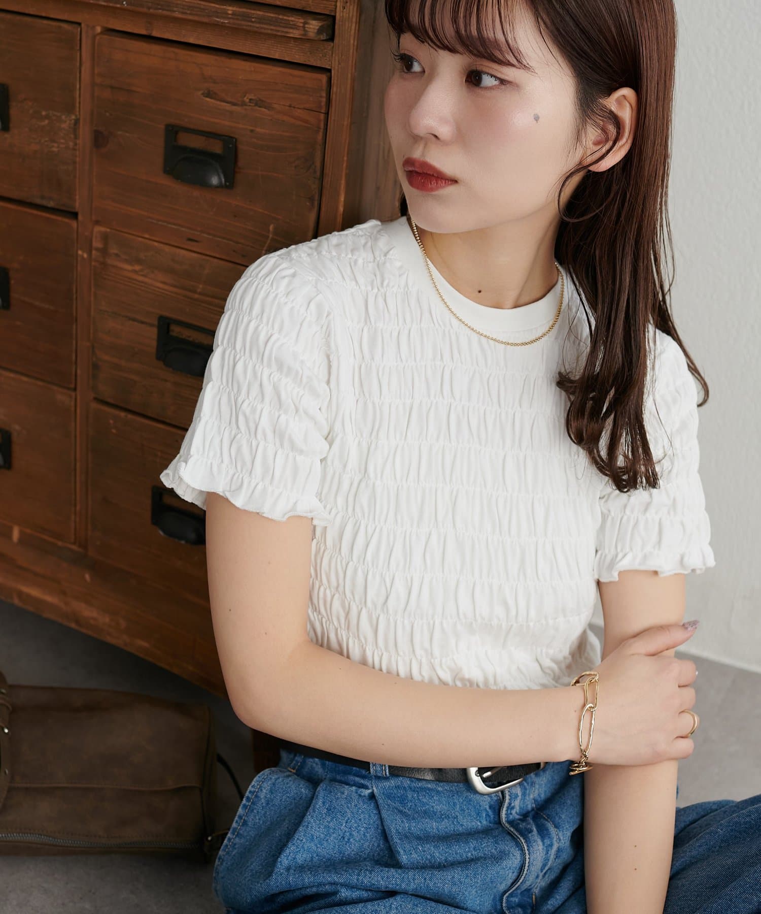 【WEB限定】シャーリングコンパクトTシャツ