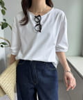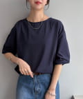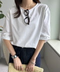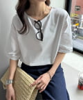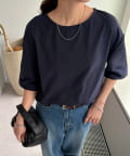 ワンポイントが映える袖ギャザーTシャツ