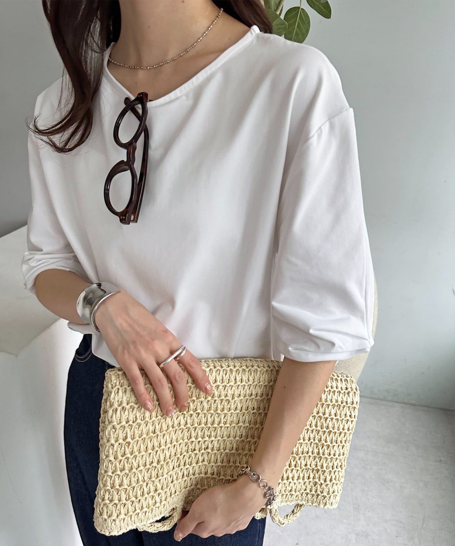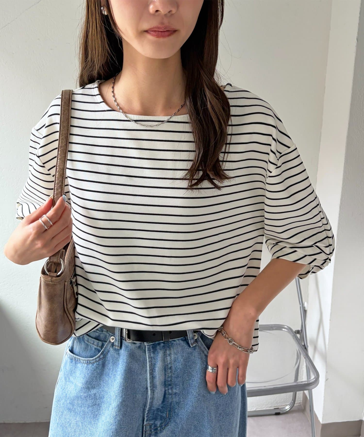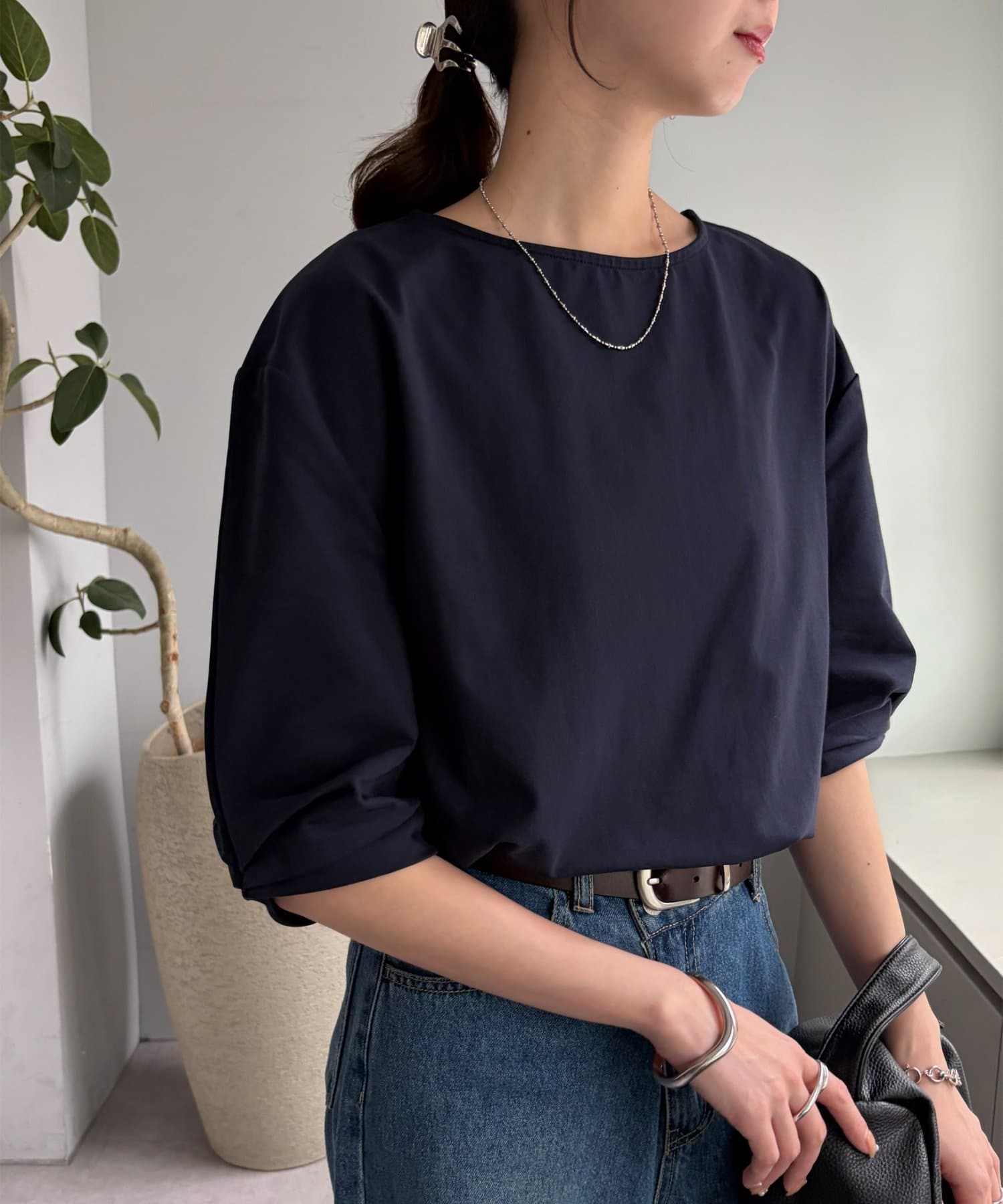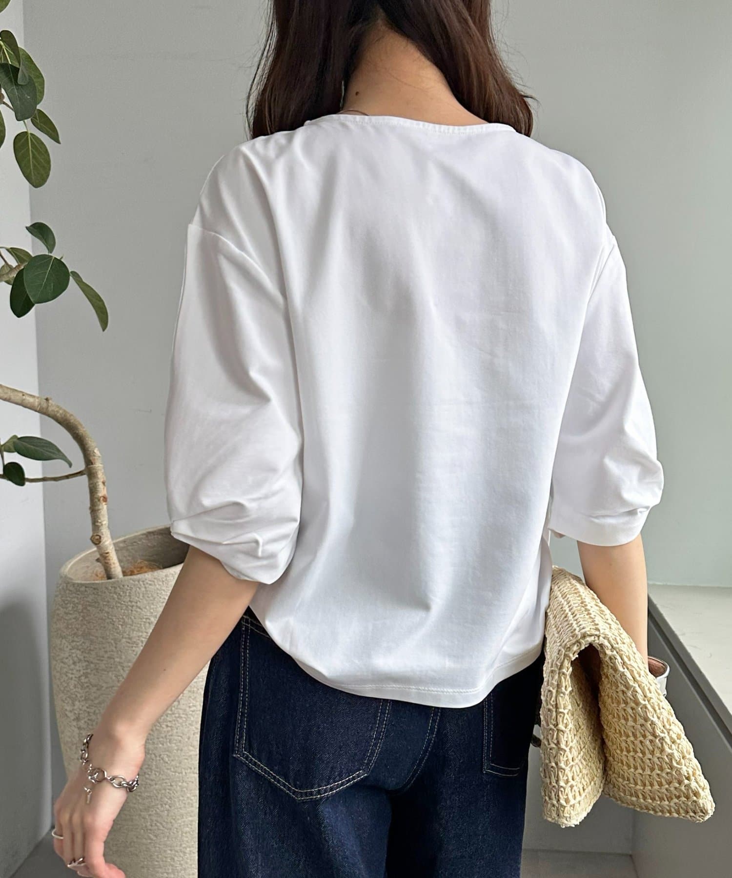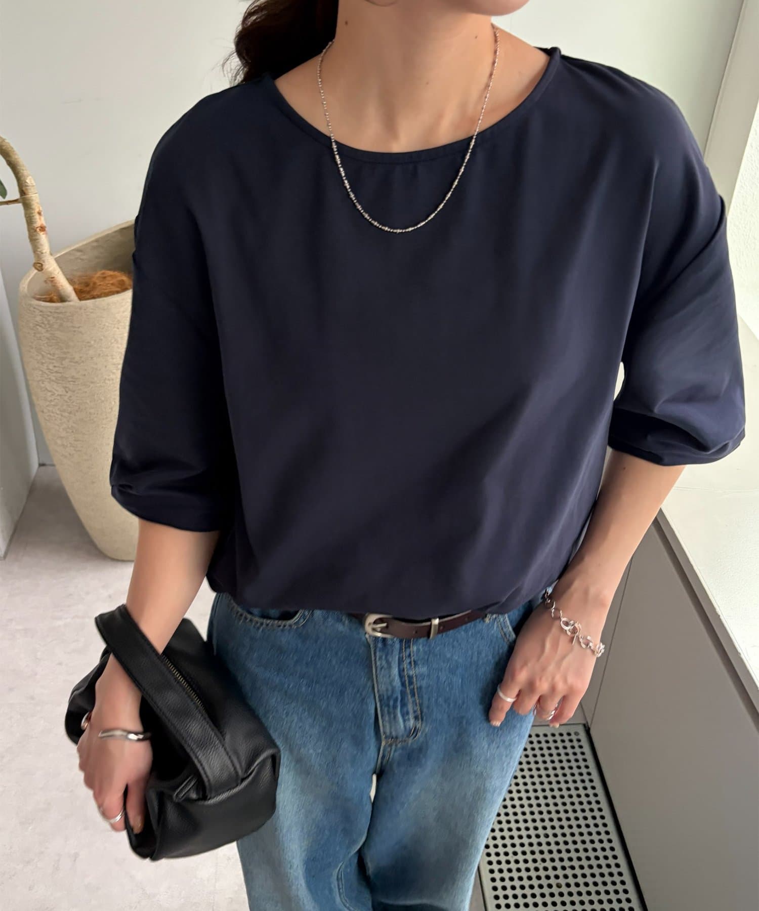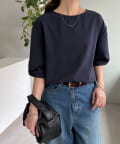 163cmスタッフ:肘が隠れるくらいの五分袖で、気になる二の腕をしっかりカバーしてくれます◎