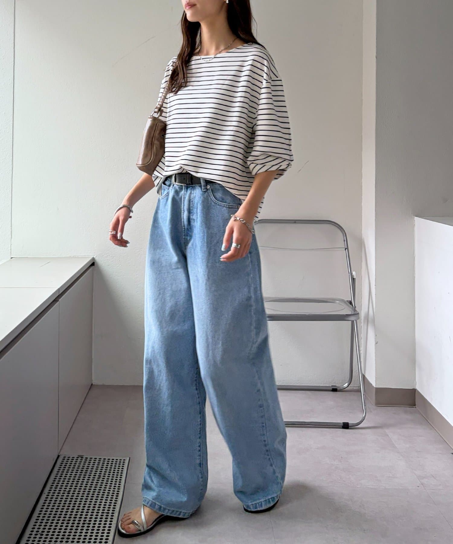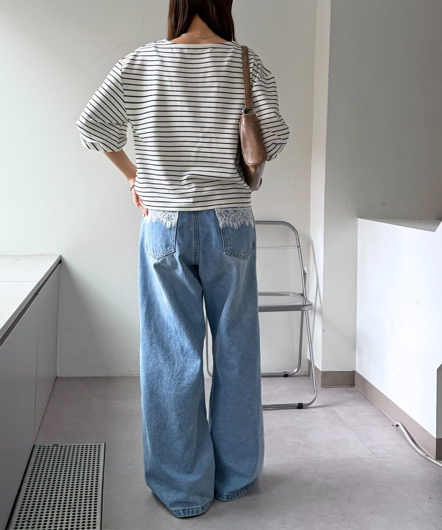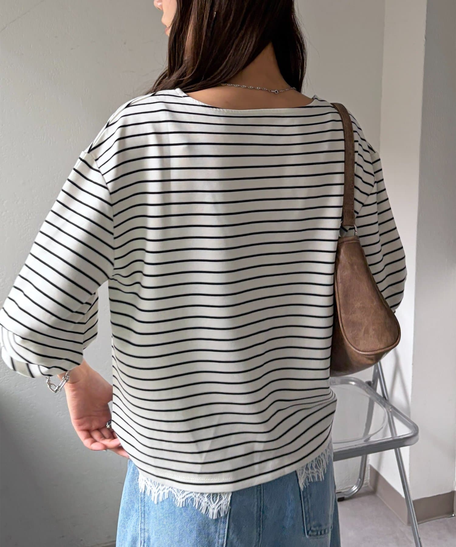 154cmスタッフ:着丈が腰あたりなので、アウトスタイルでもバランスが取りやすいです!