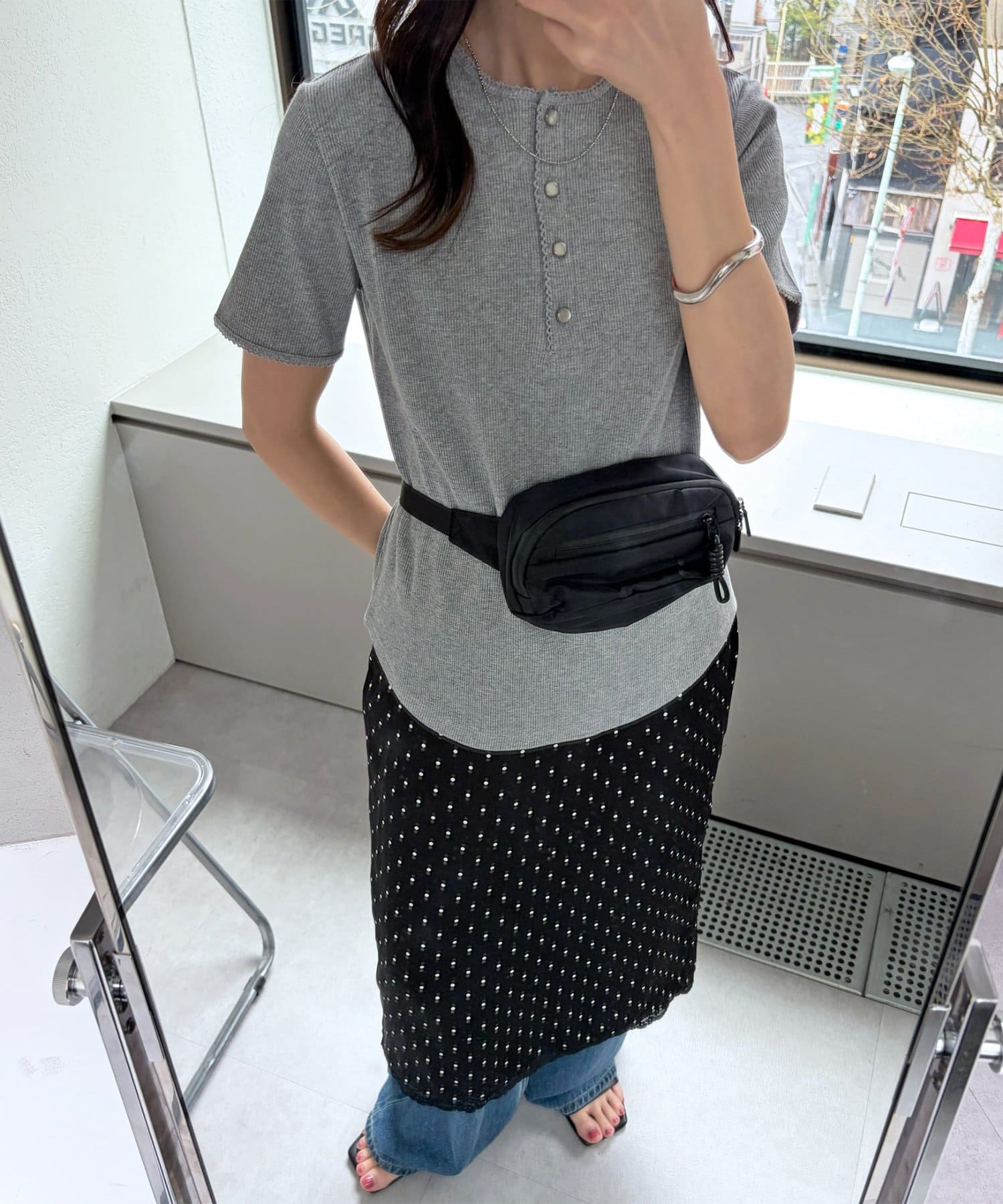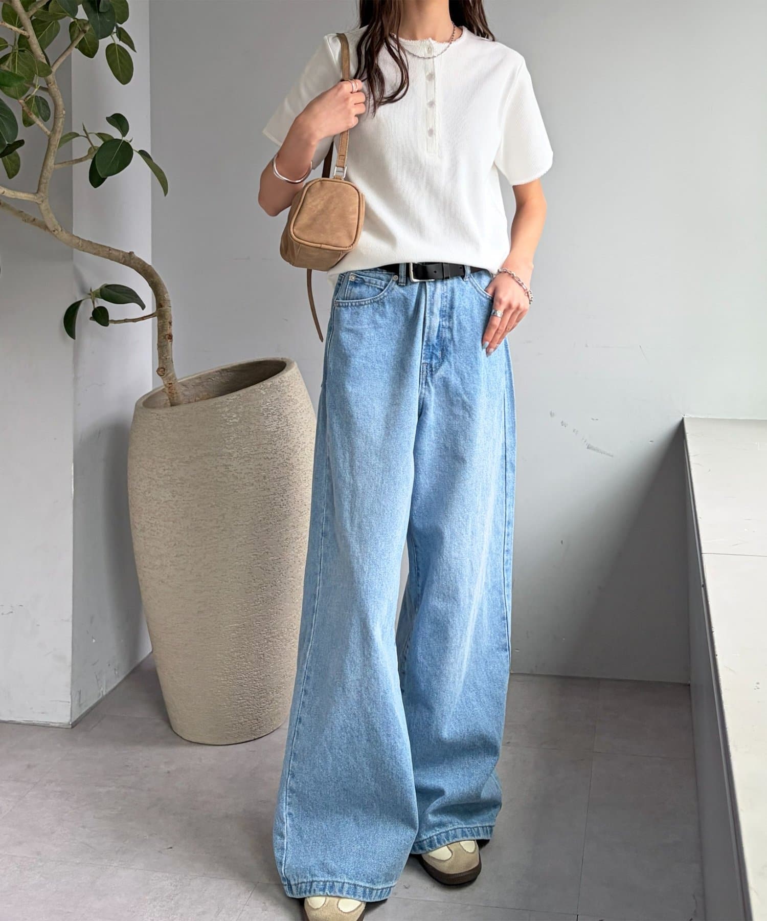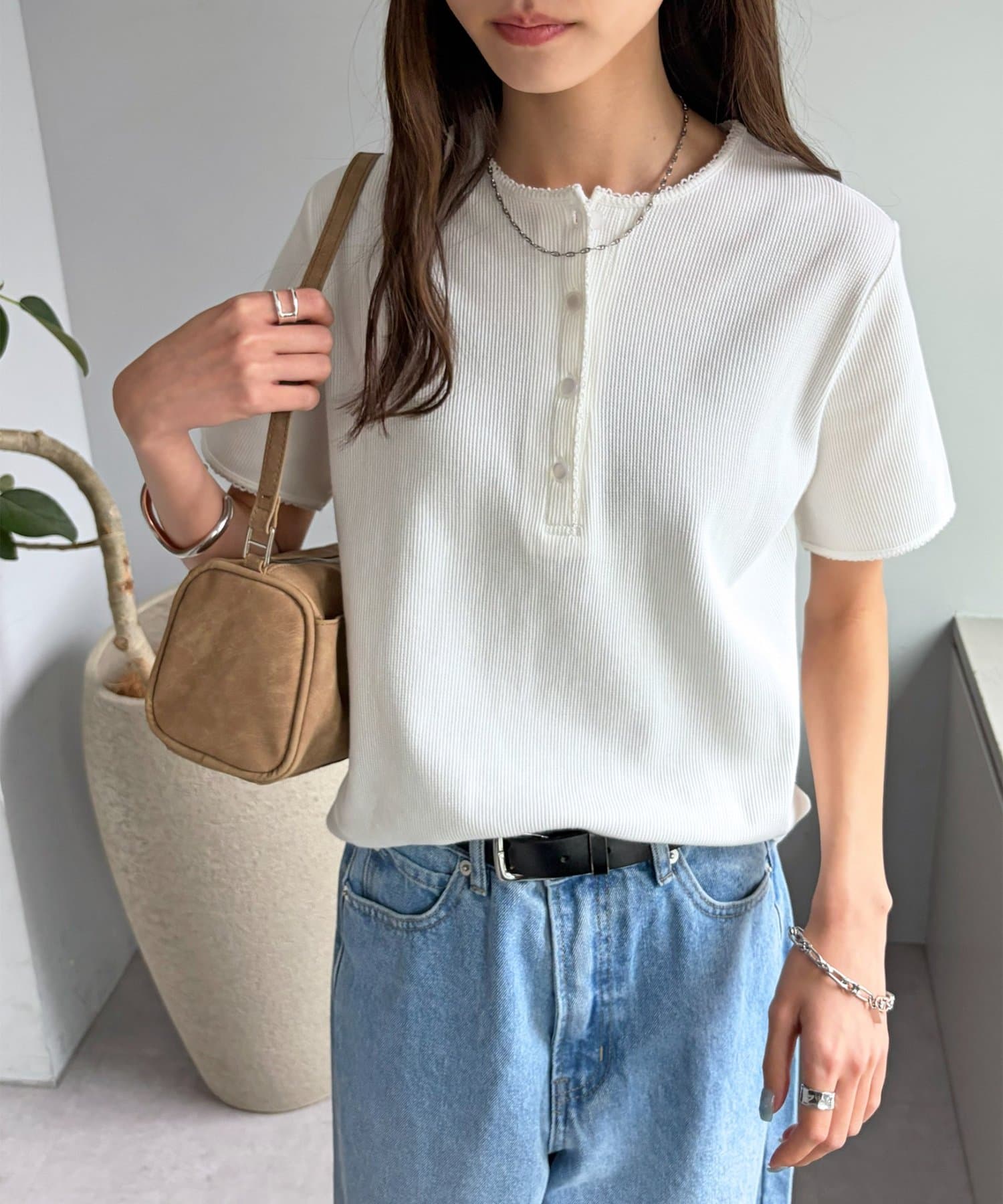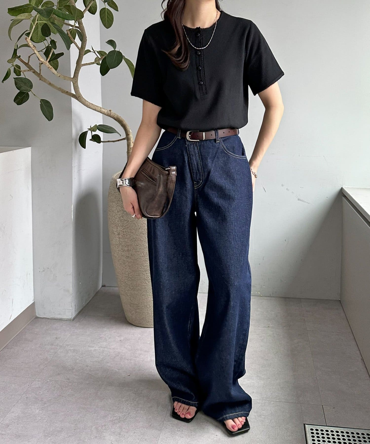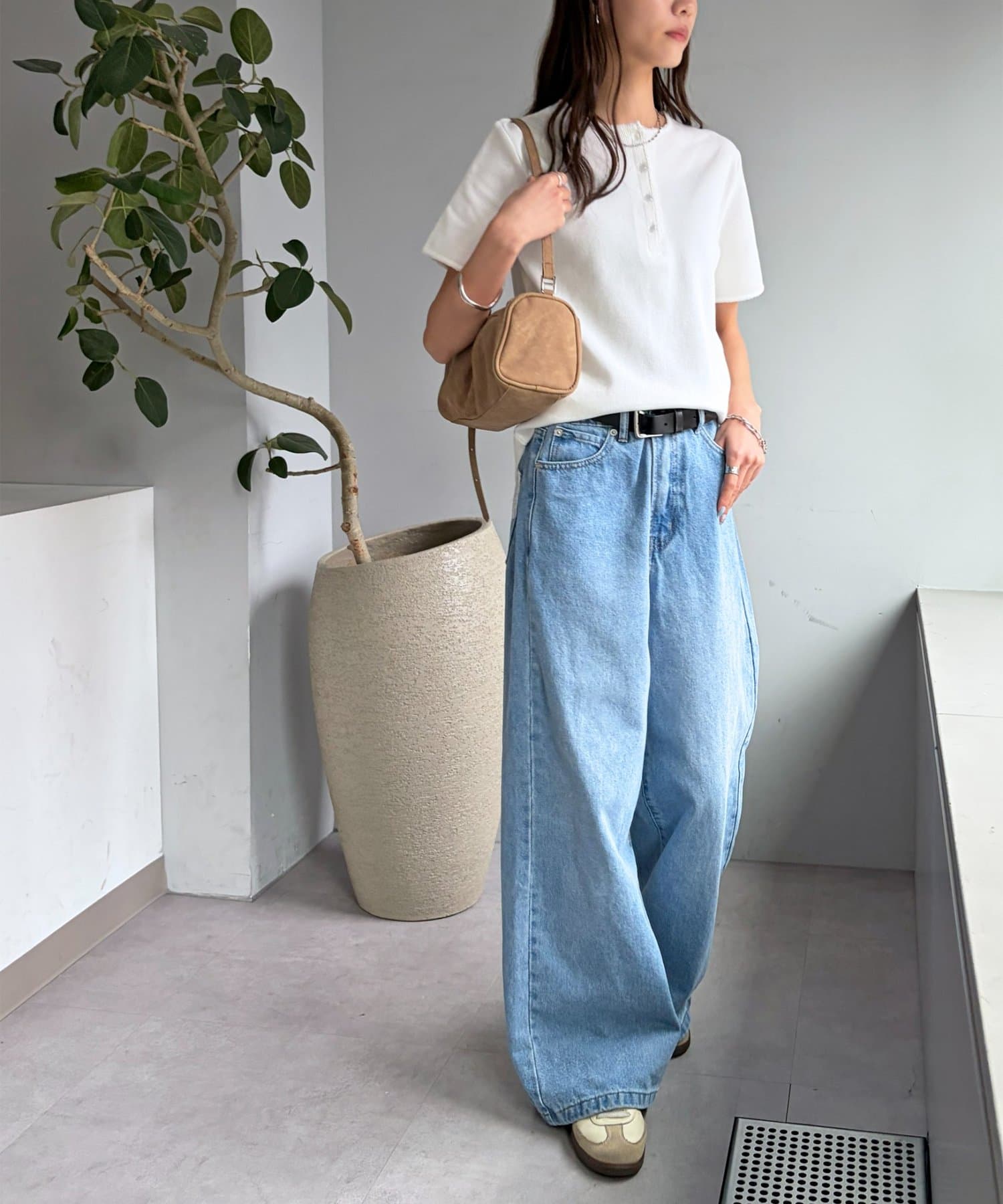 低身長さん:コンパクトな着丈で、タックインしなくてもバランスが取りやすいです。小柄な方でもすっきりと着こなせるサイズ感が嬉しいです。