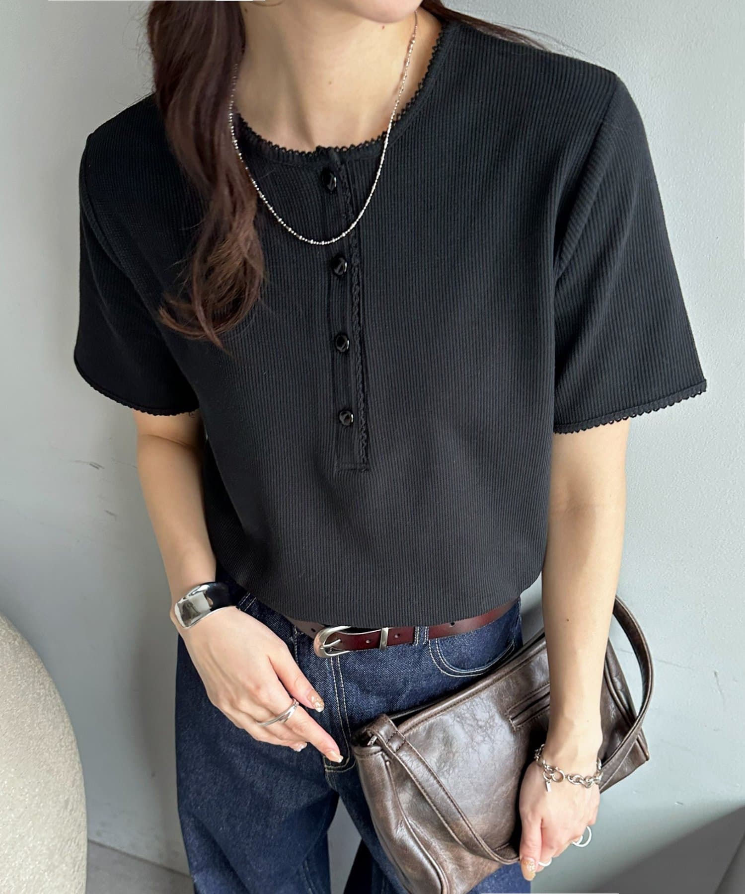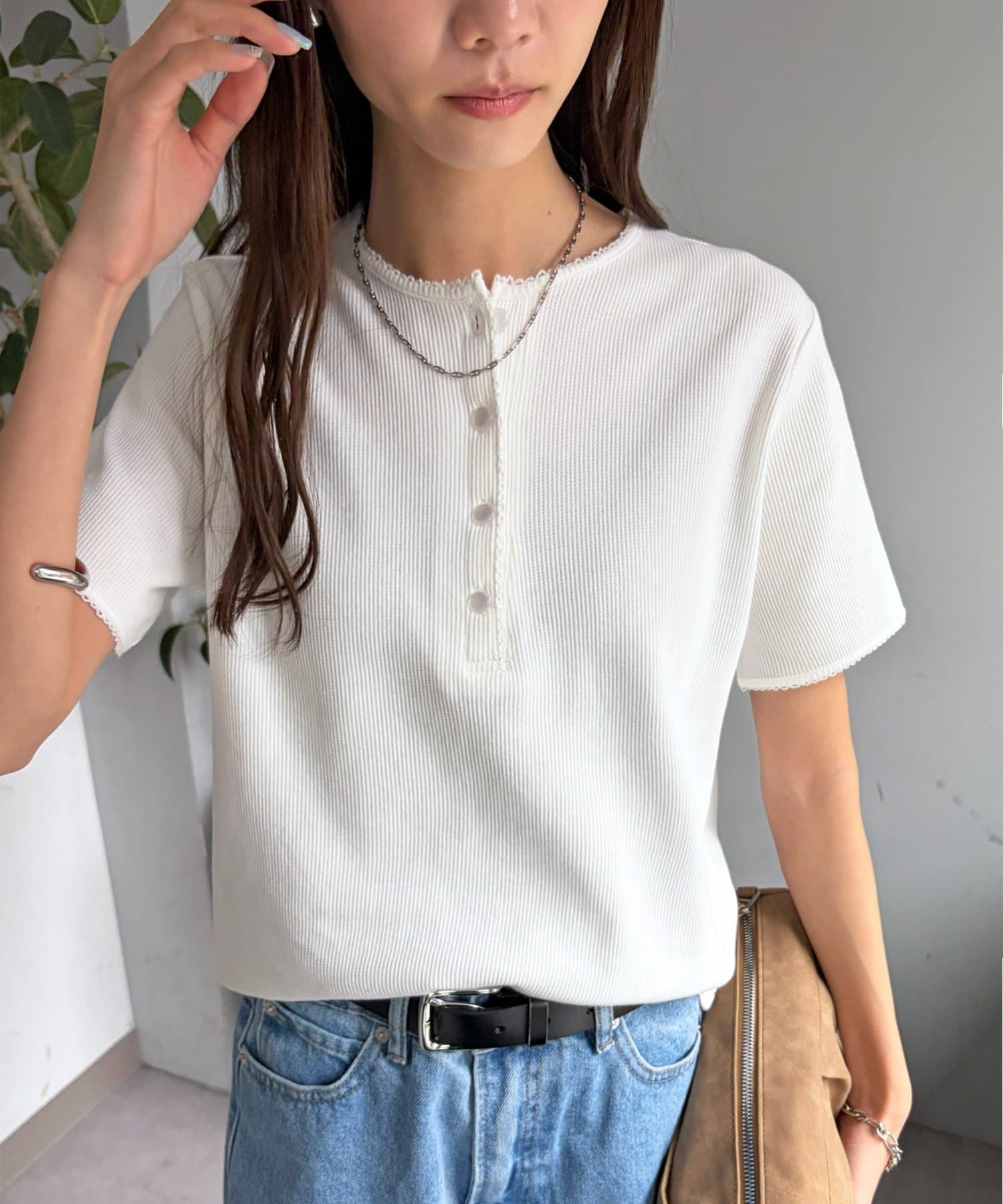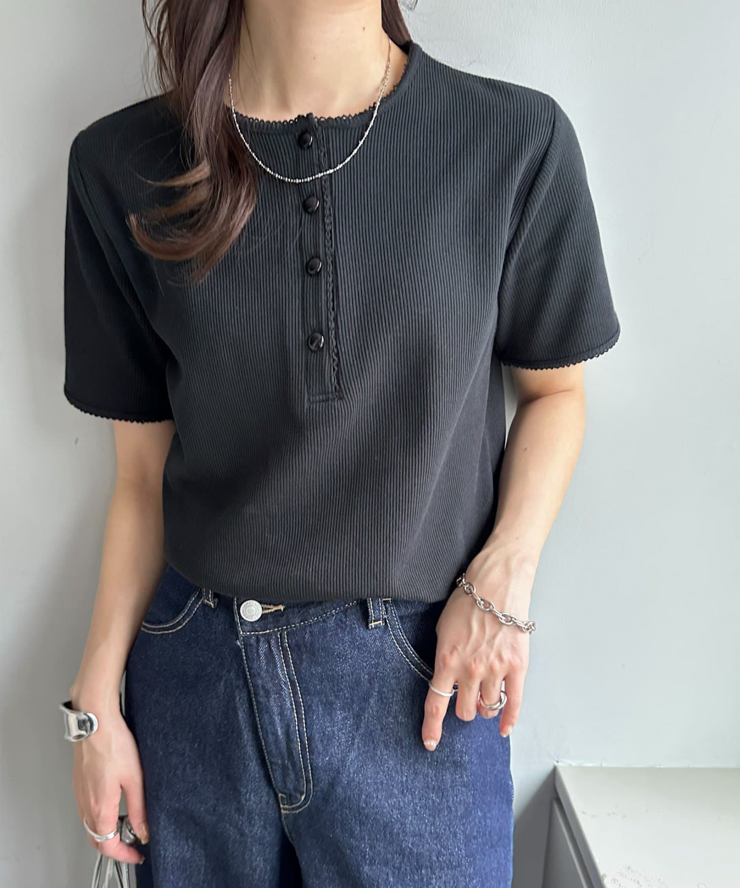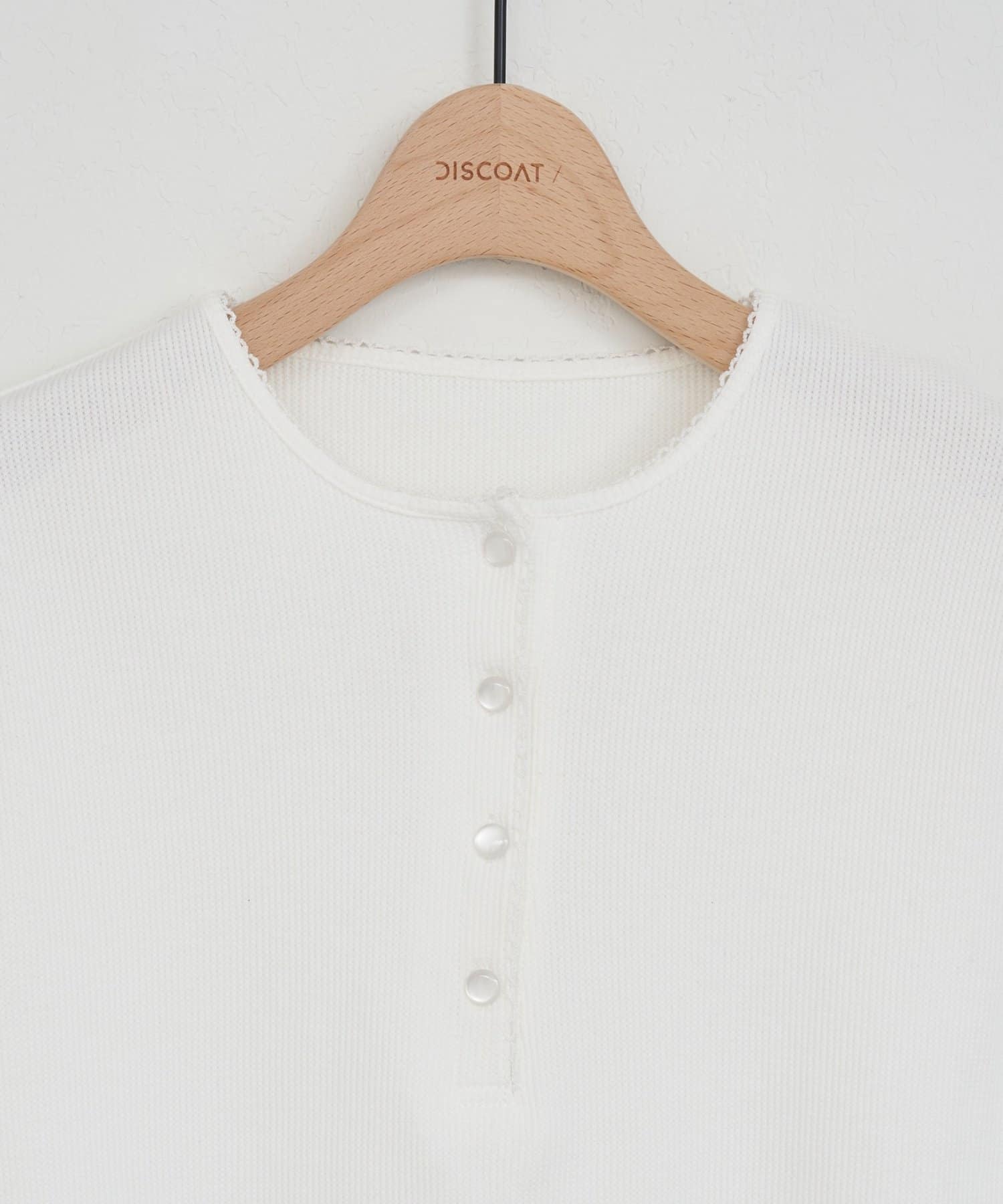 ・ネックラインと袖口に施されたピコレースがポイント♪