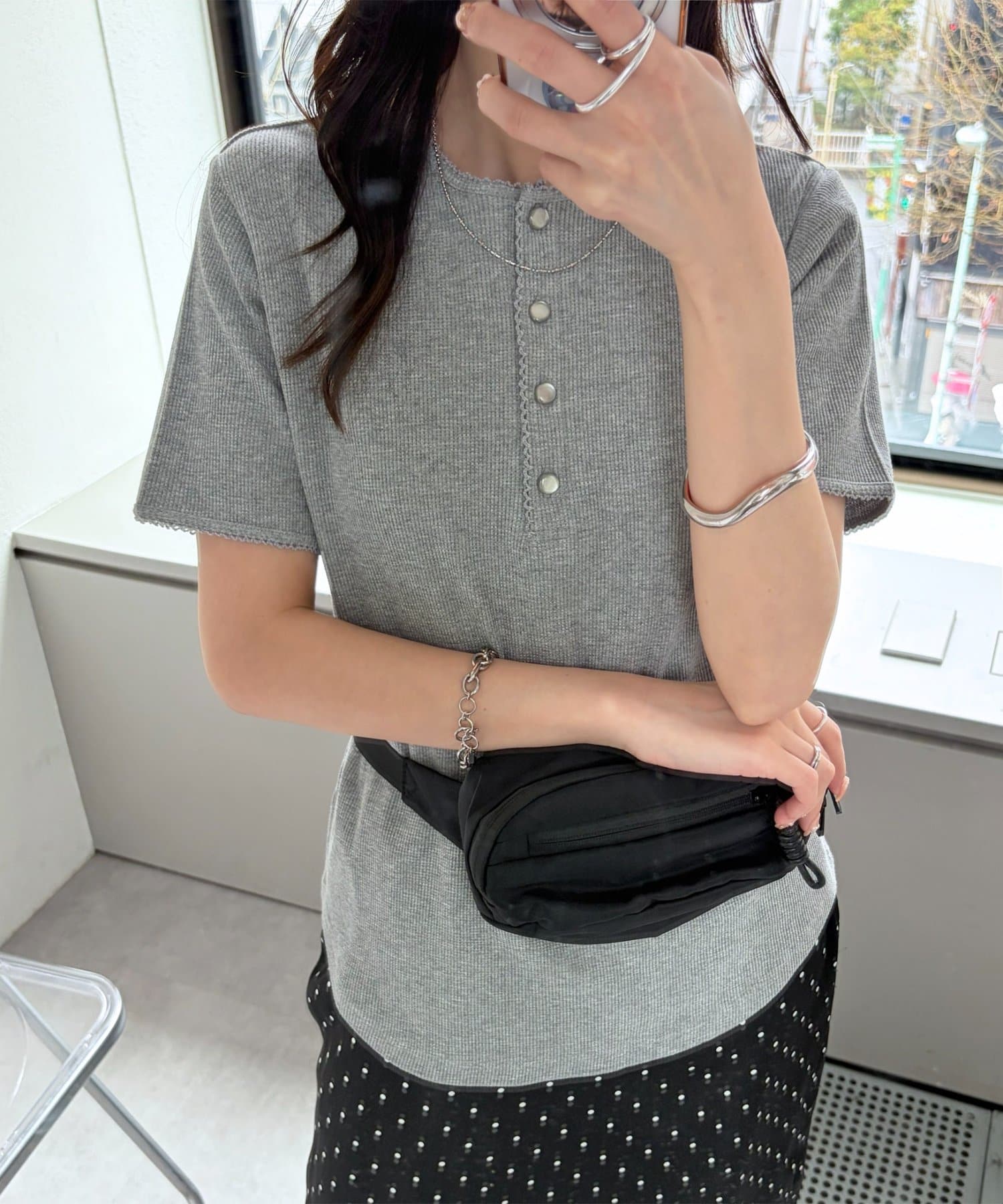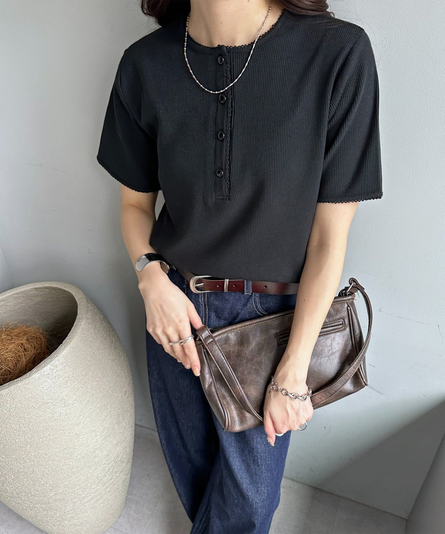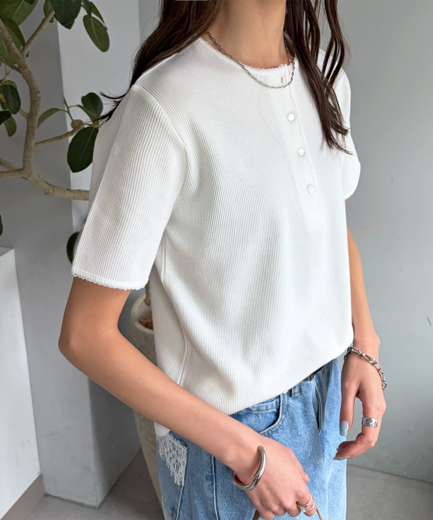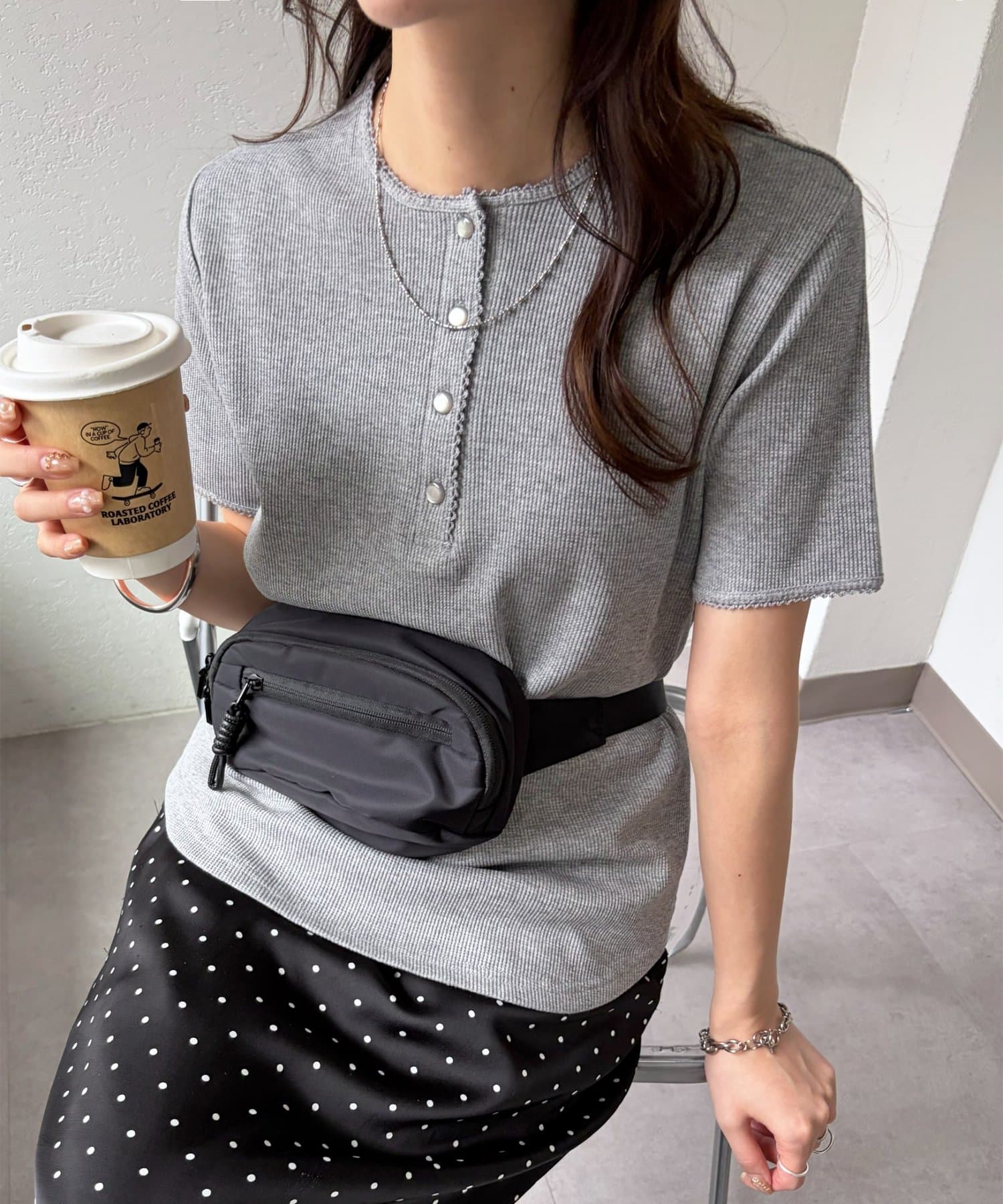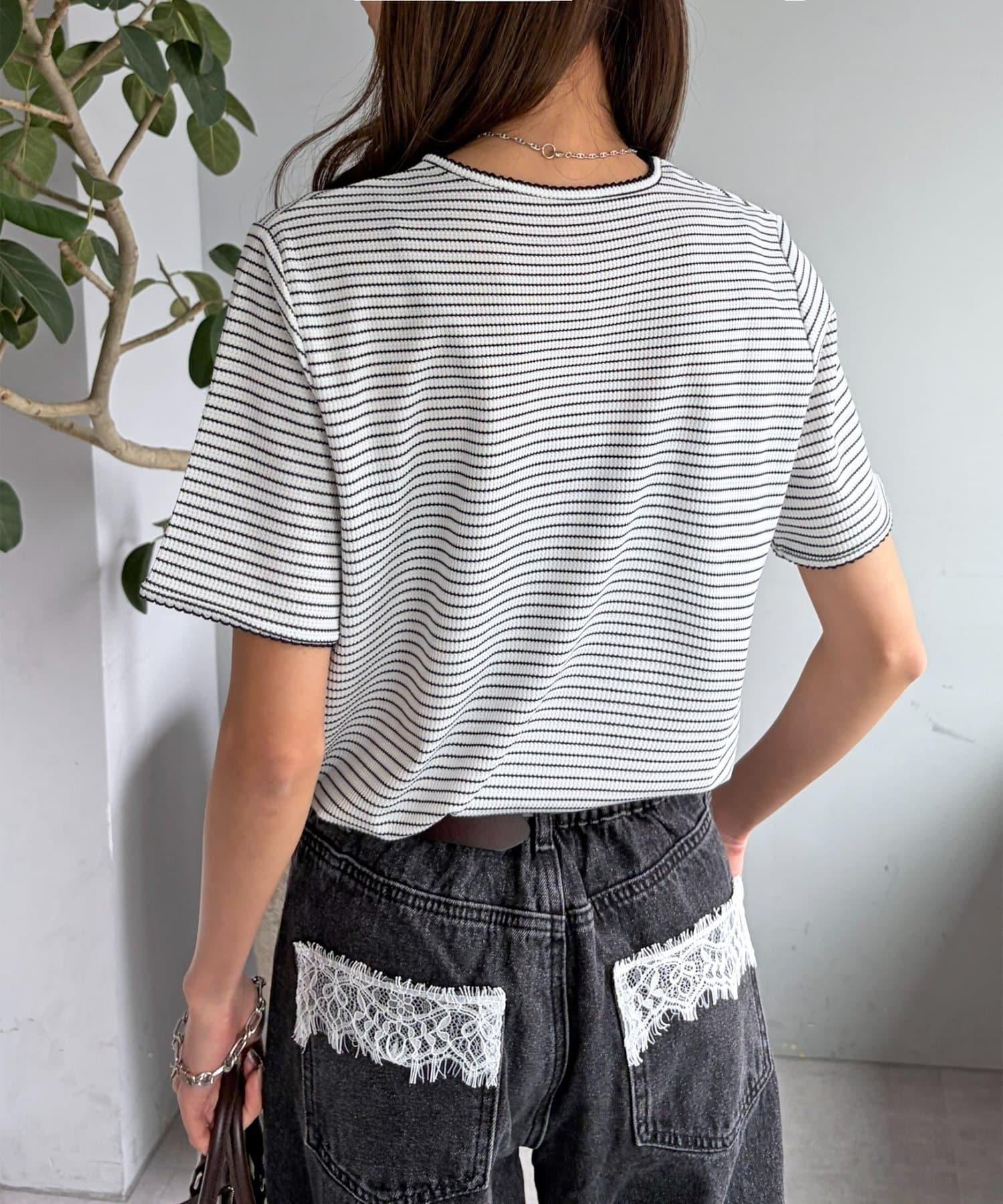 ・ネックラインと袖口に施されたピコレースがポイント♪