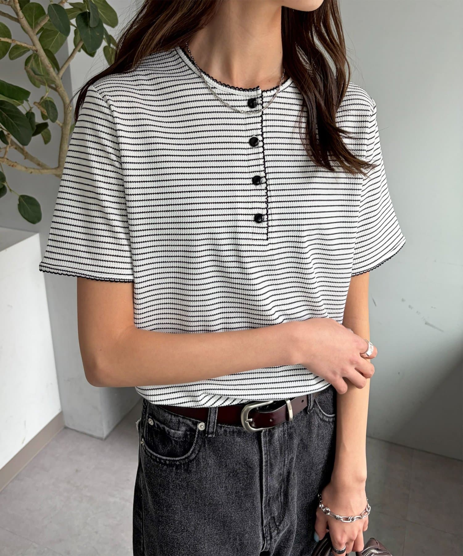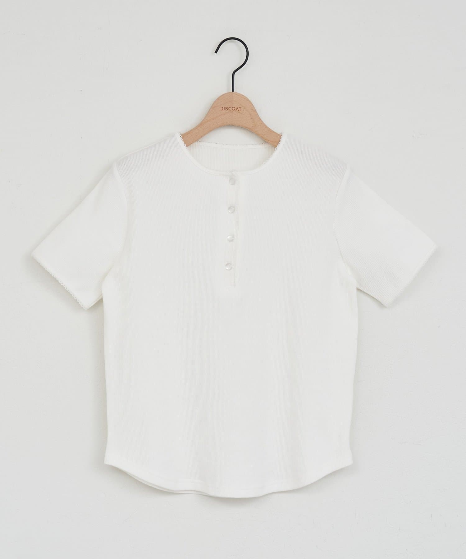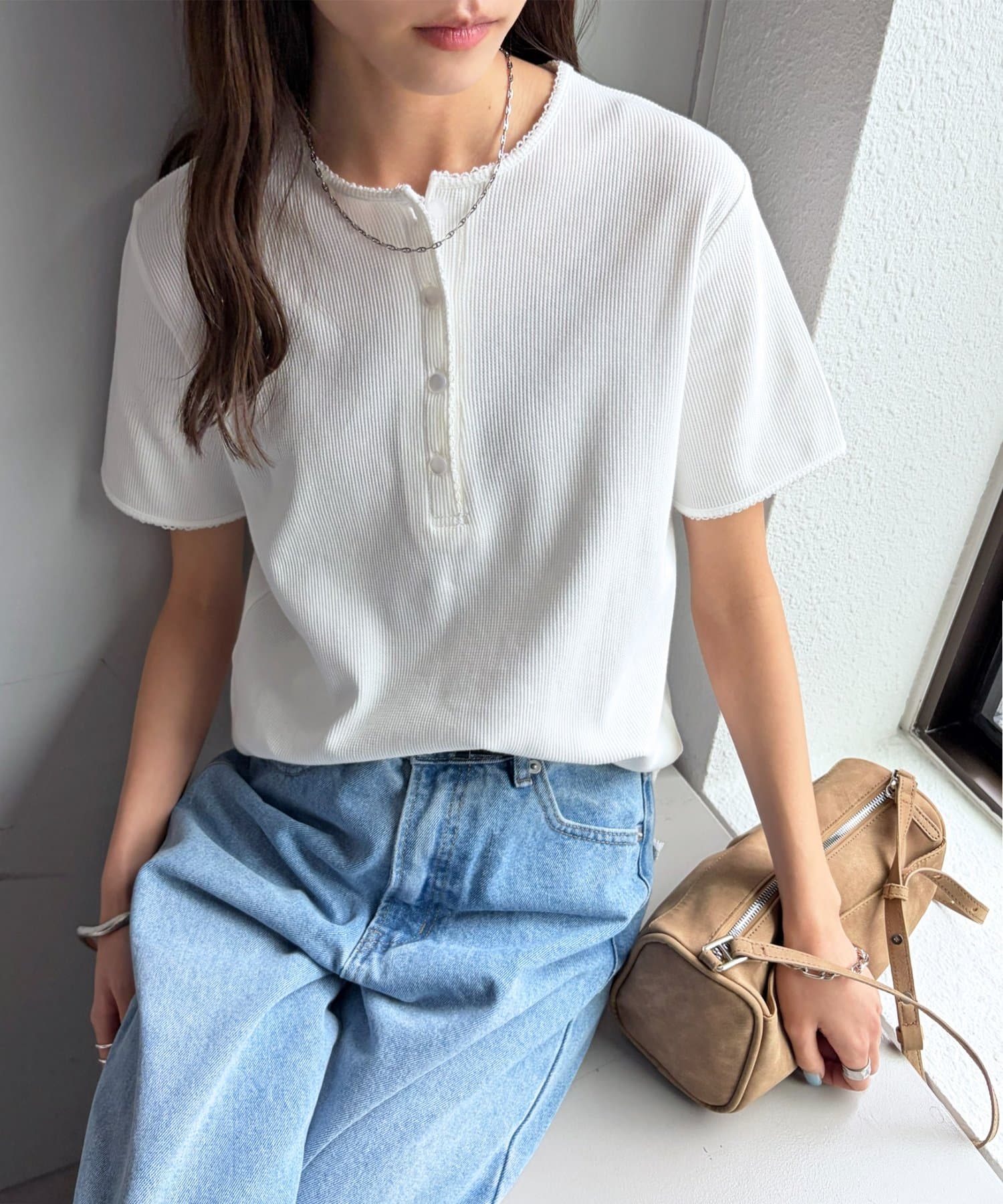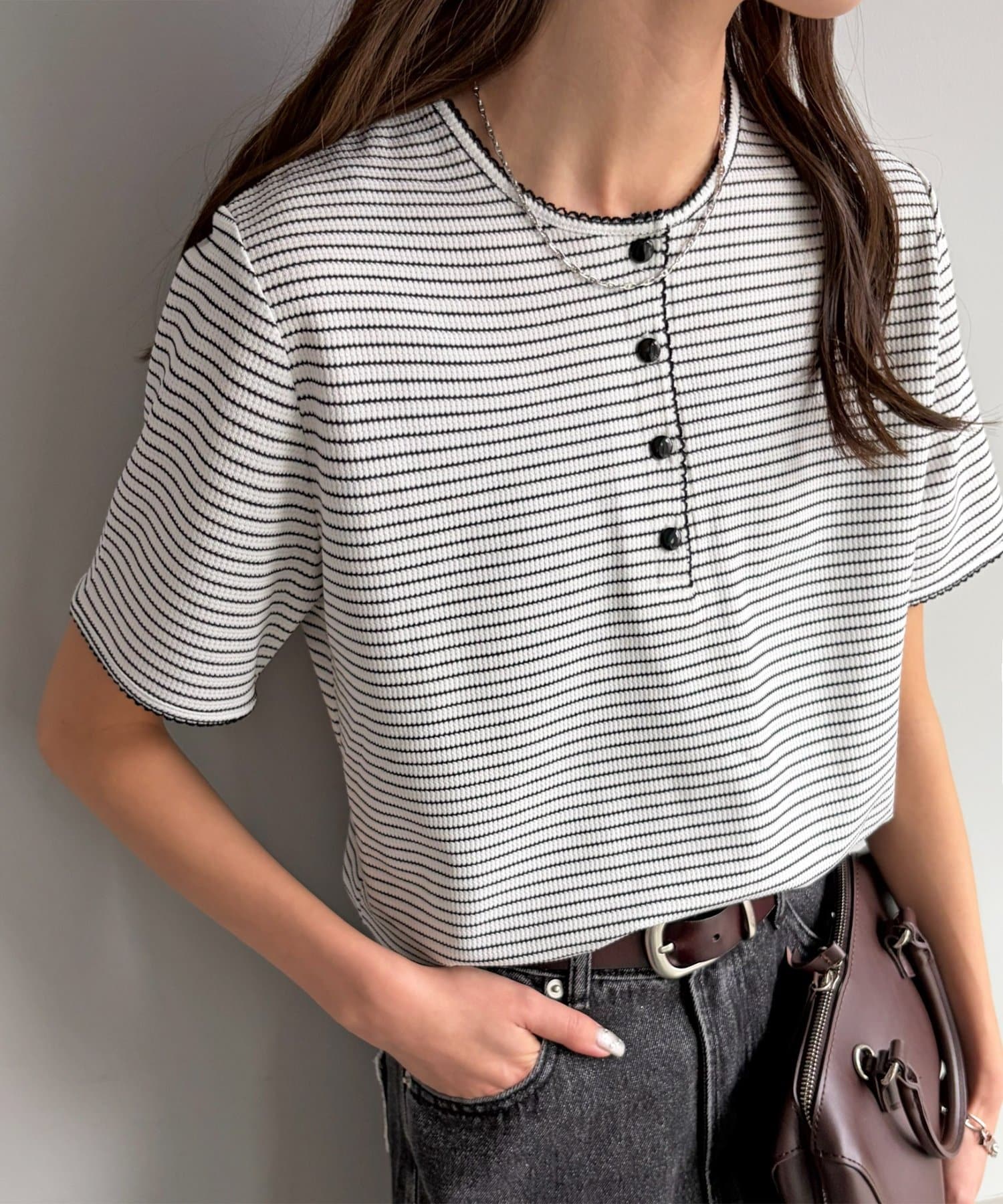 ・ネックラインと袖口に施されたピコレースがポイント♪