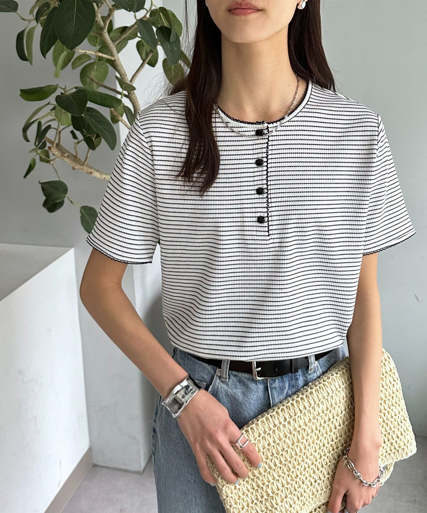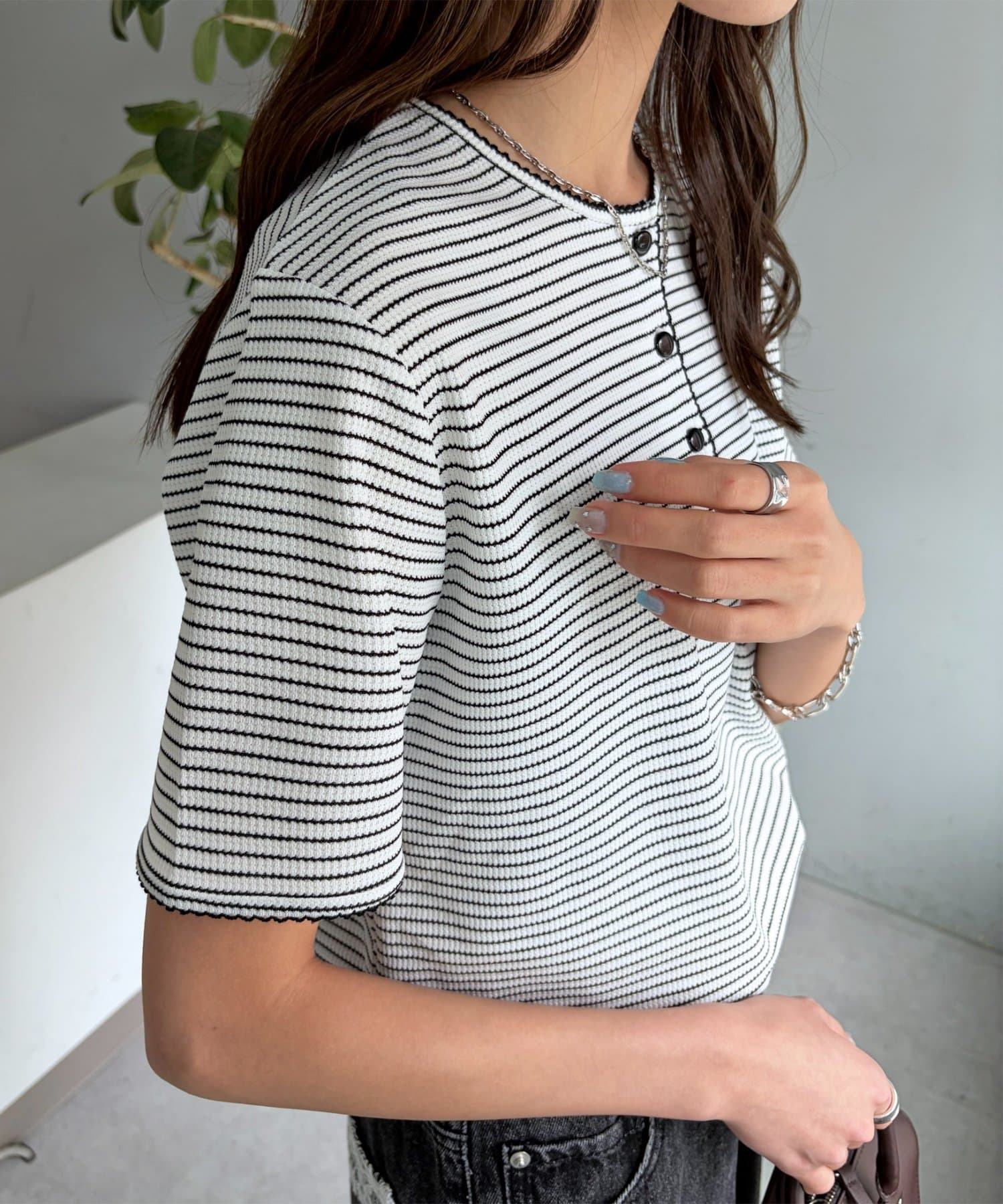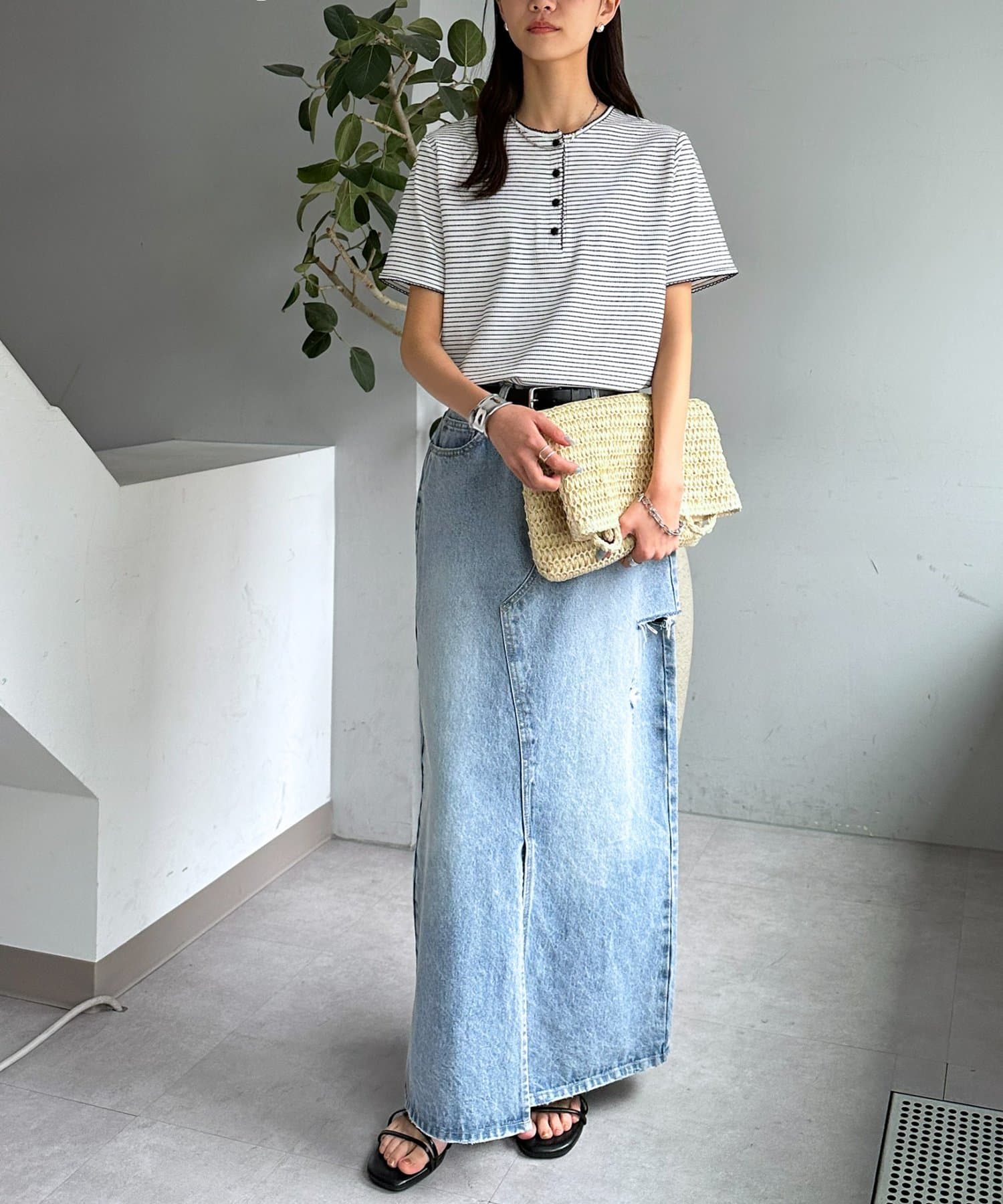 中間身長さん:程よいフィット感で体のラインを拾いすぎず、華奢見えが叶います。一枚で着てもインナーとしても着回せるので、ワードローブにあると便利です。