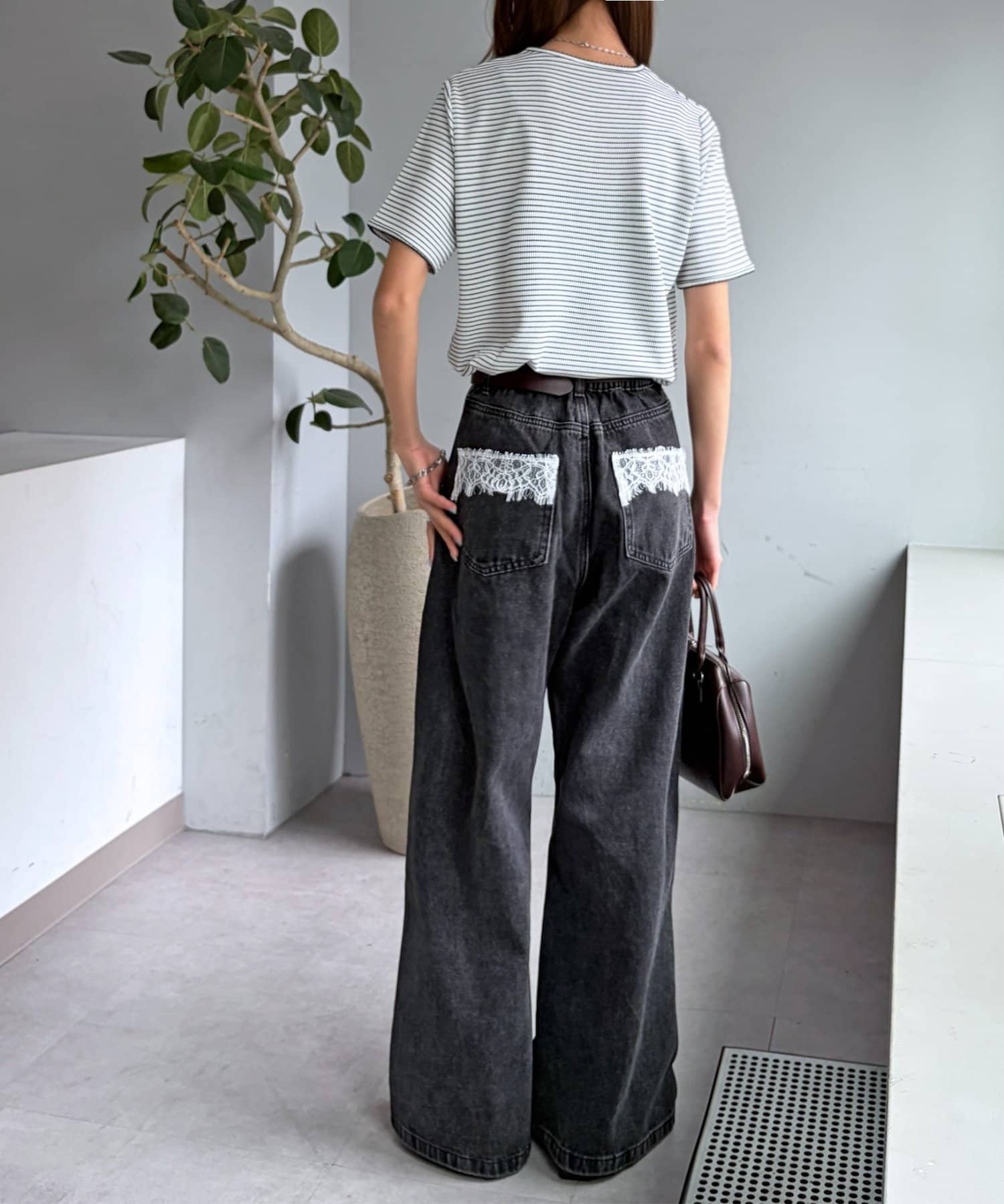 ・カジュアルなデニムやチノパンツと合わせて、フェミニンさをプラスした甘辛ミックスコーデに♪