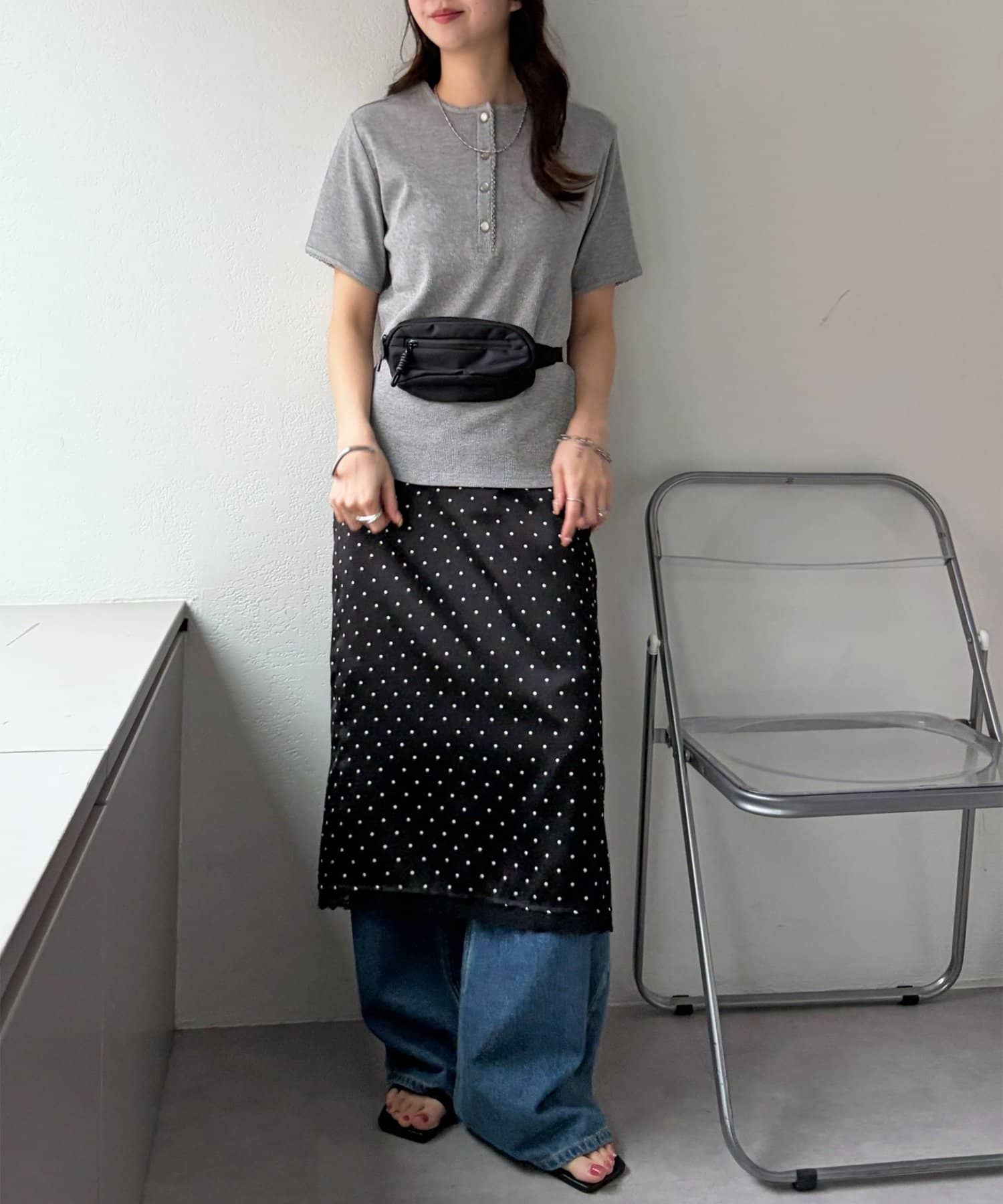 ・今季トレンドのミドル丈スカートをレイヤードして韓国風スタイルにもおすすめ◎