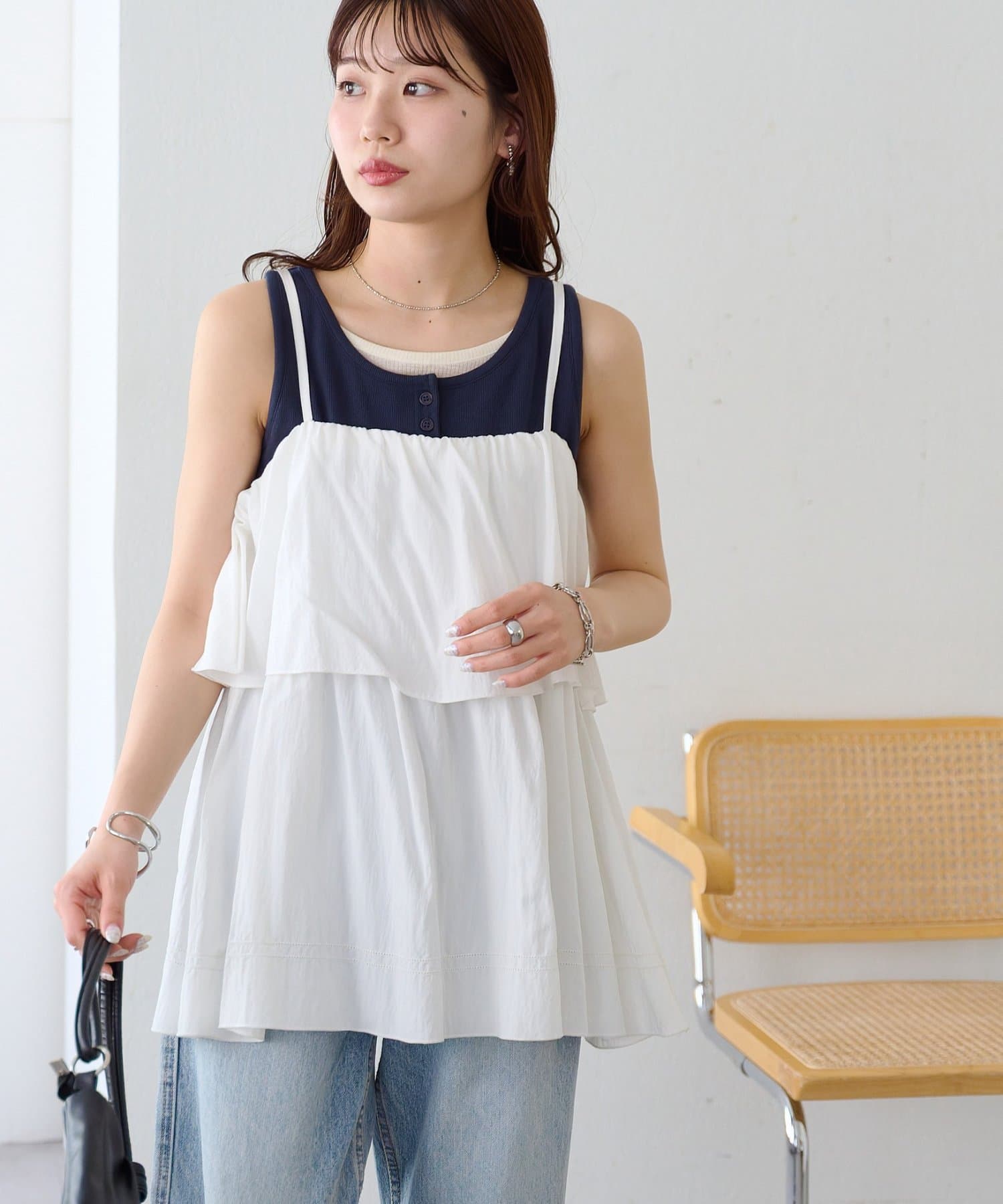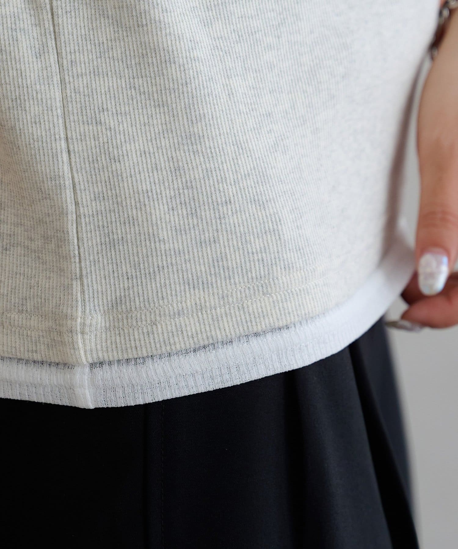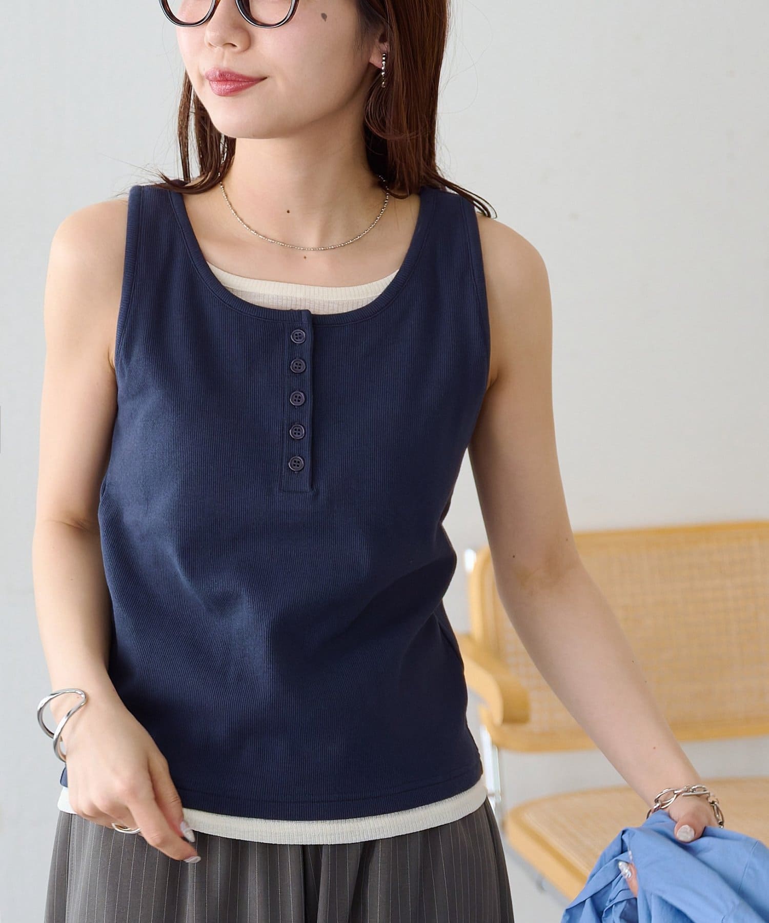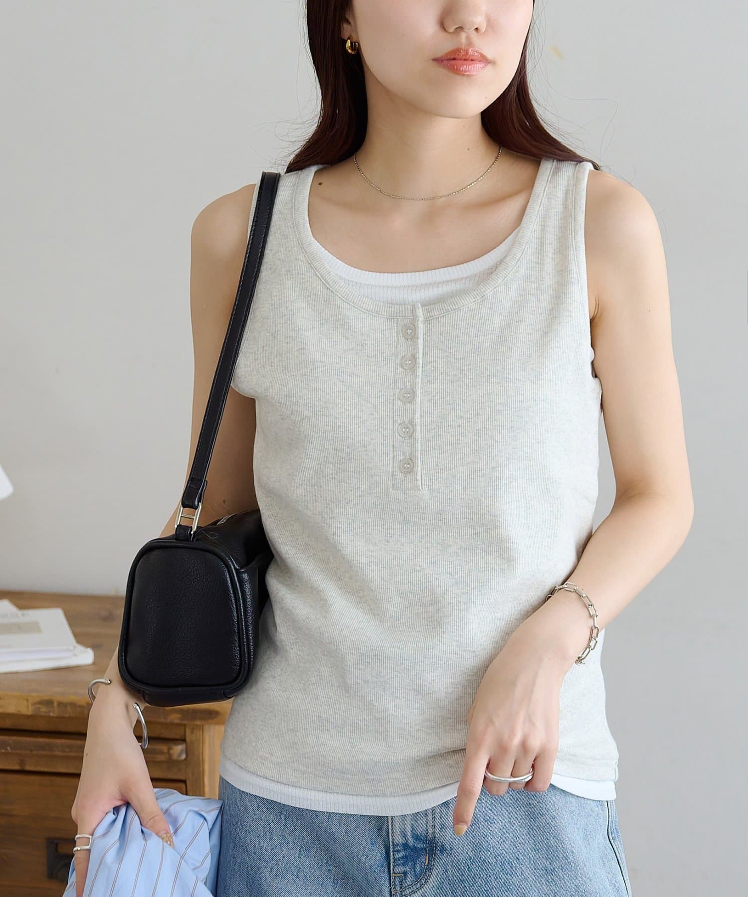 一枚で重ね着スタイルが完成する、レイヤード風タンクトップ