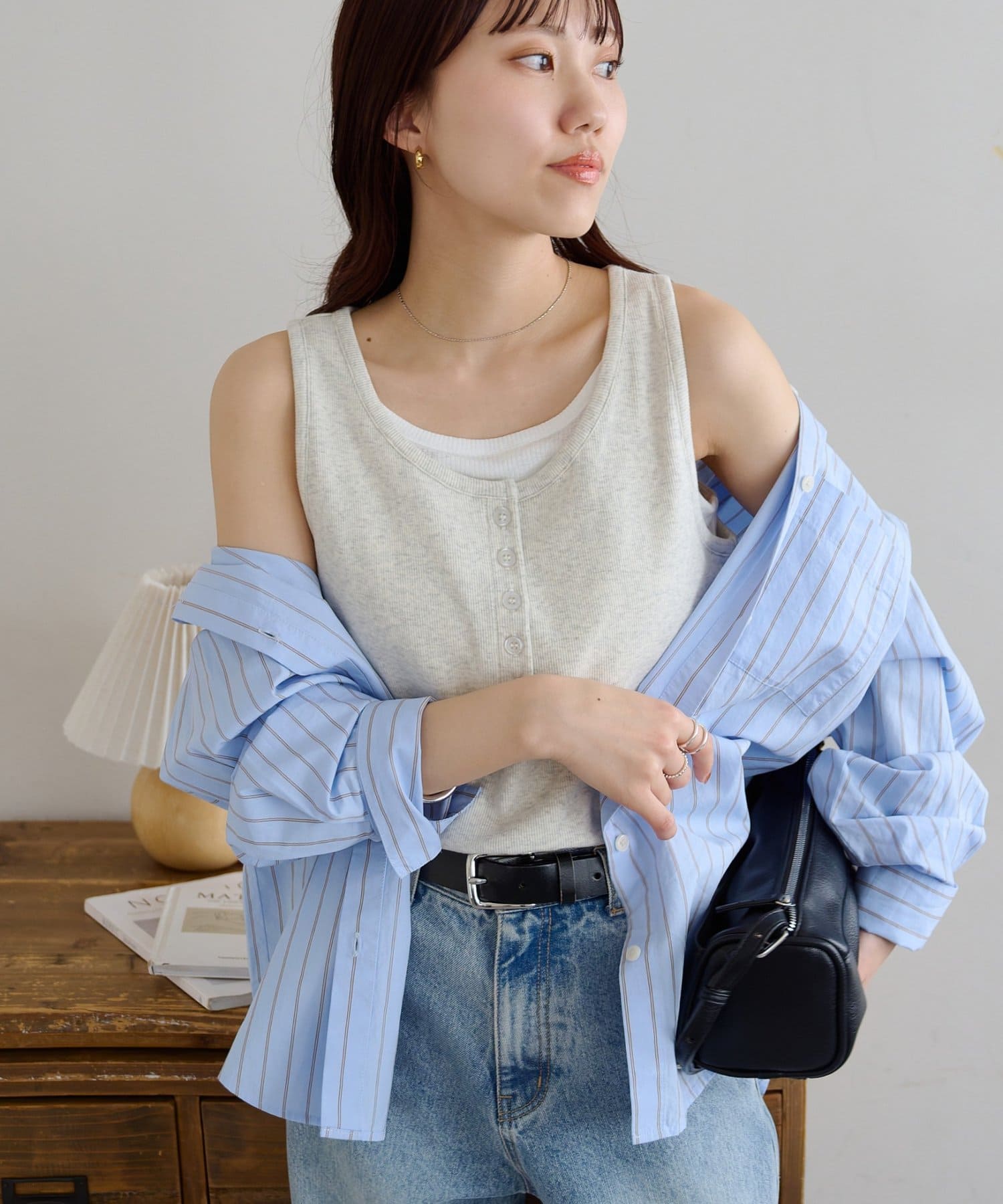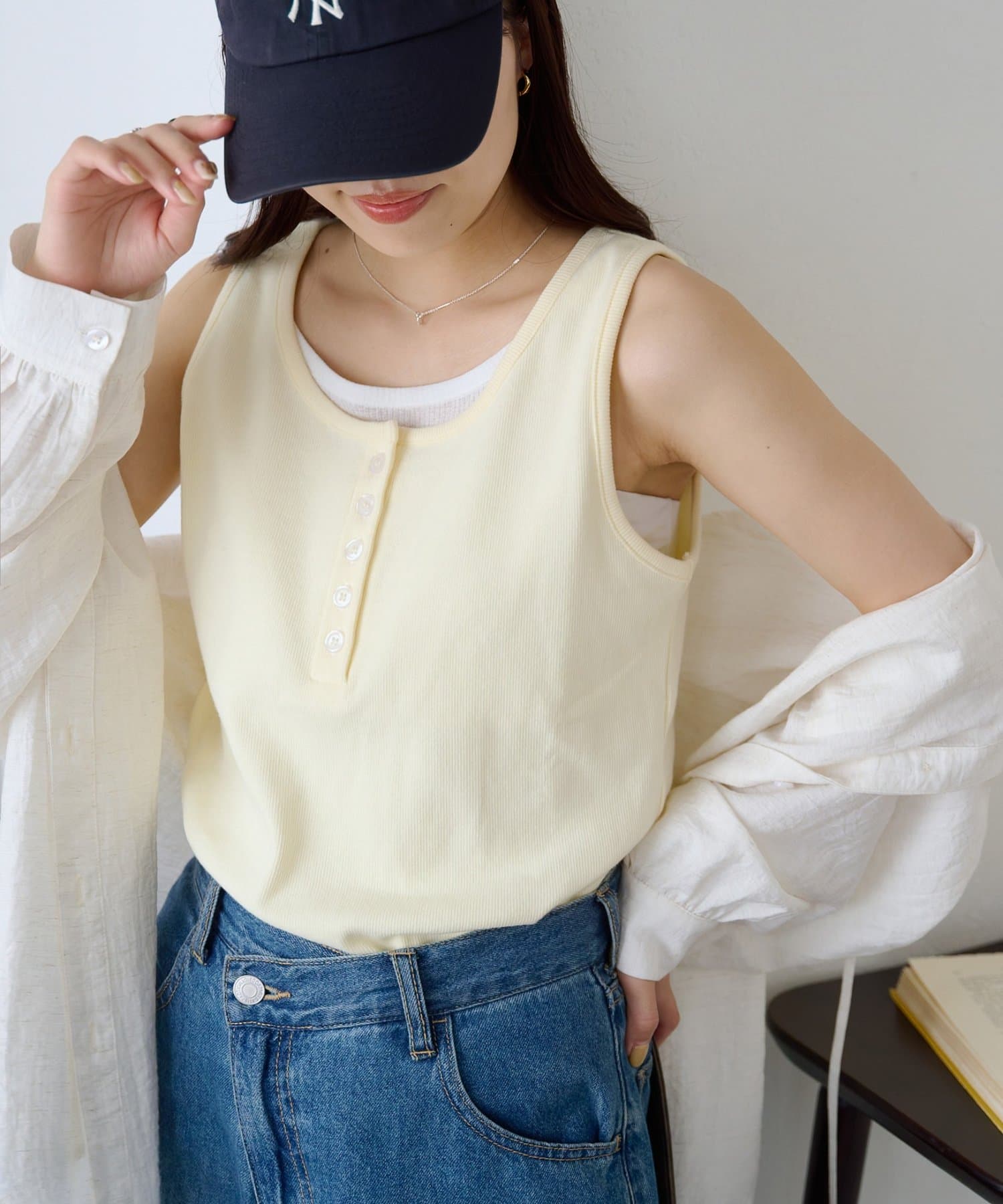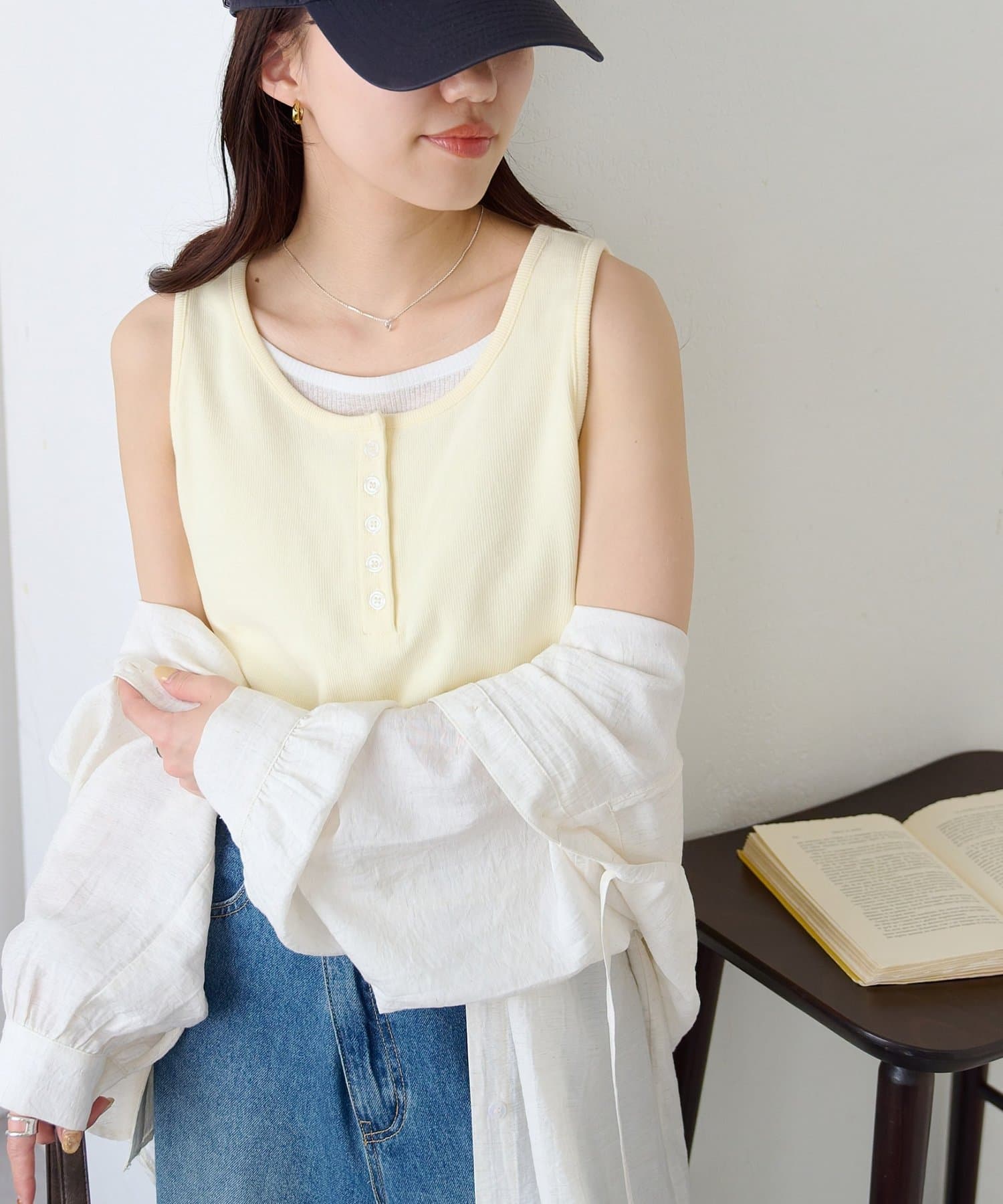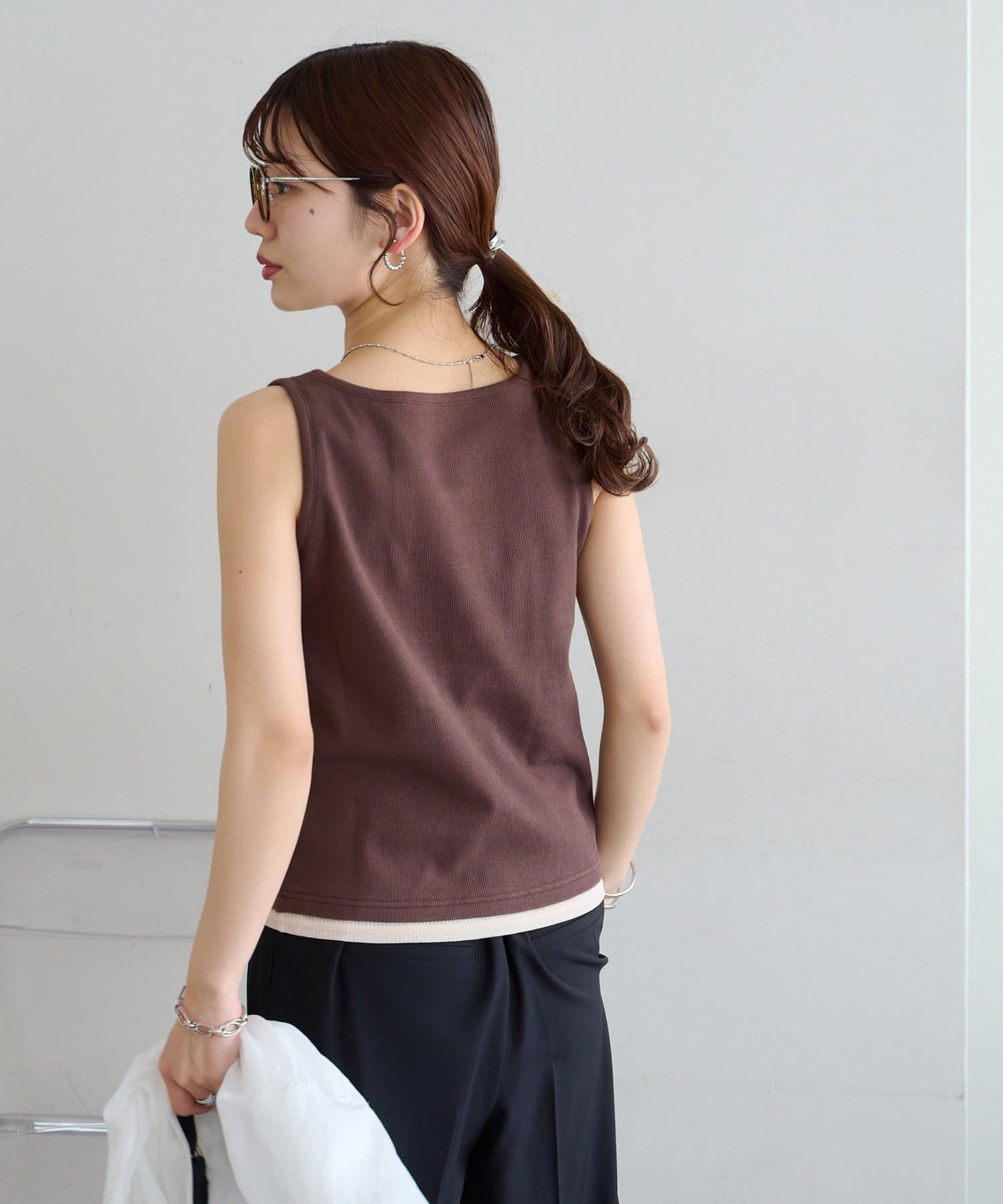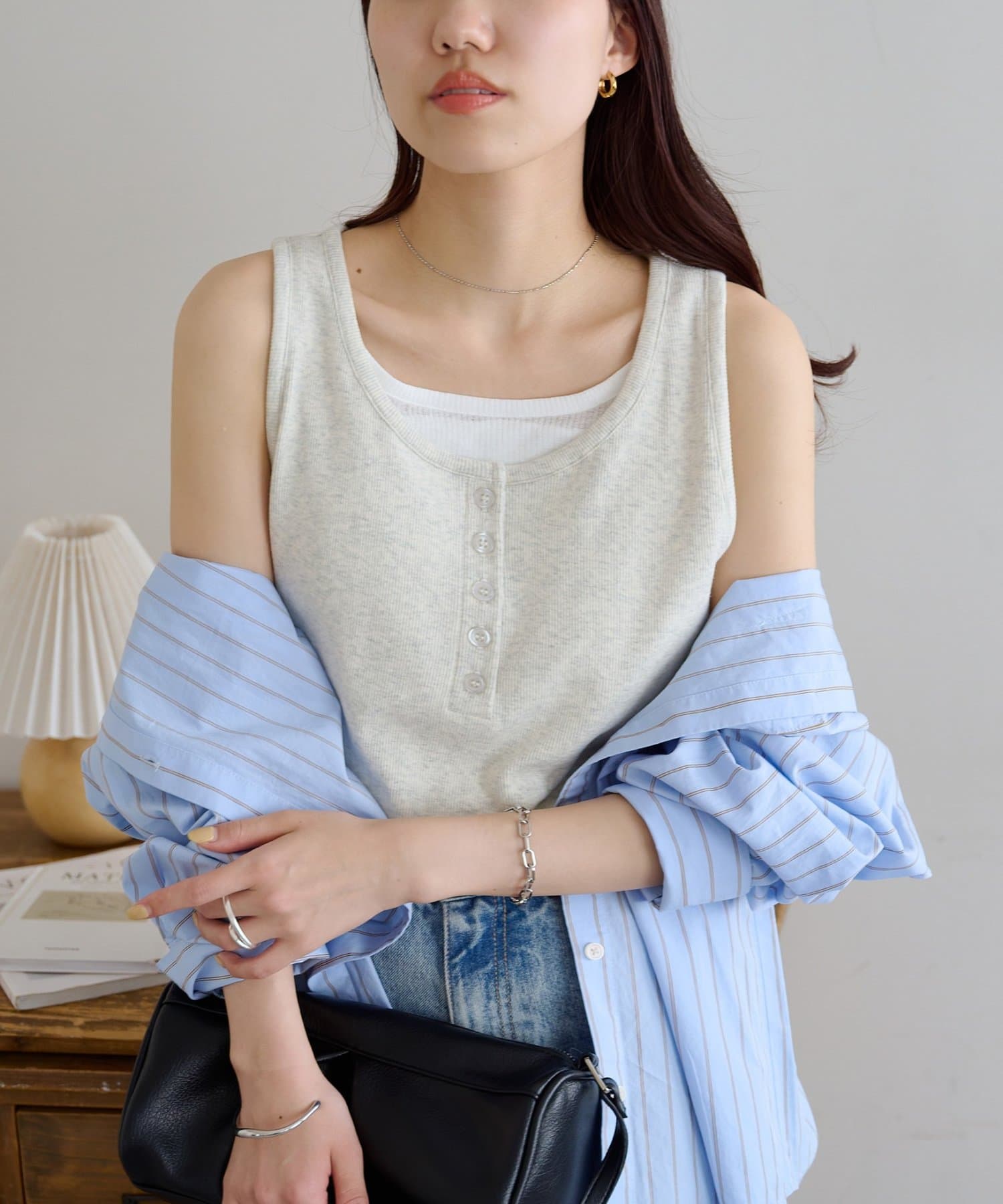 一枚で重ね着スタイルが完成する、レイヤード風タンクトップ
