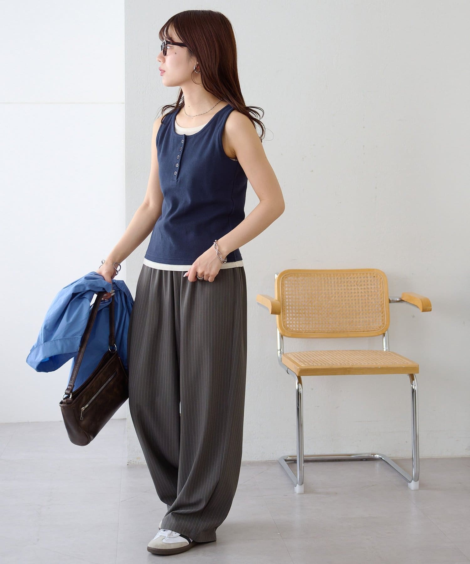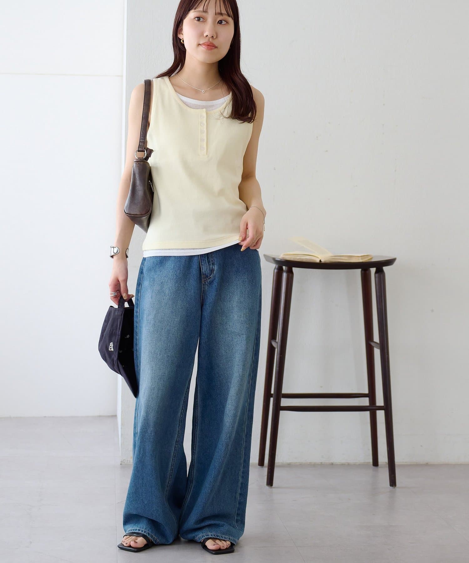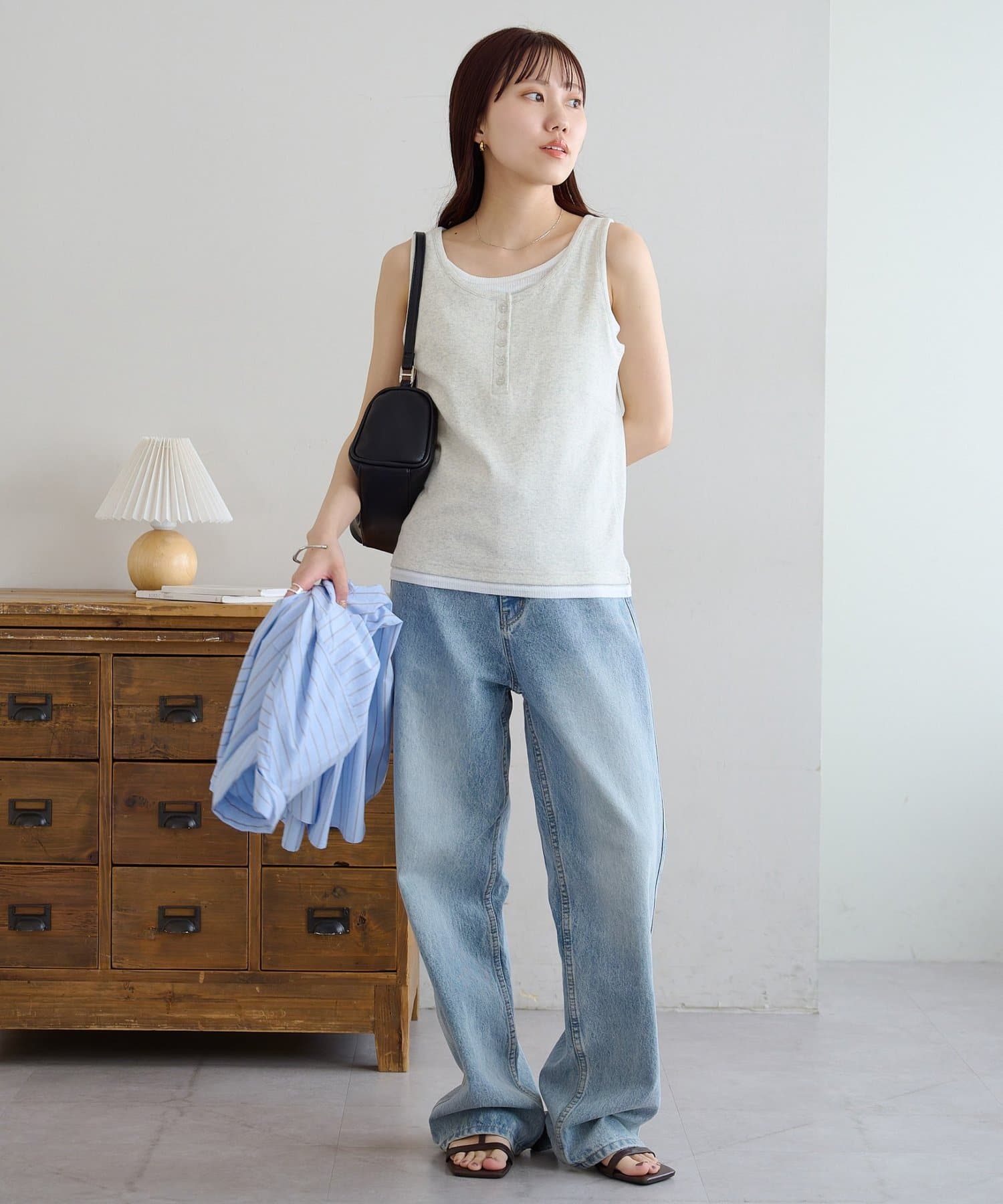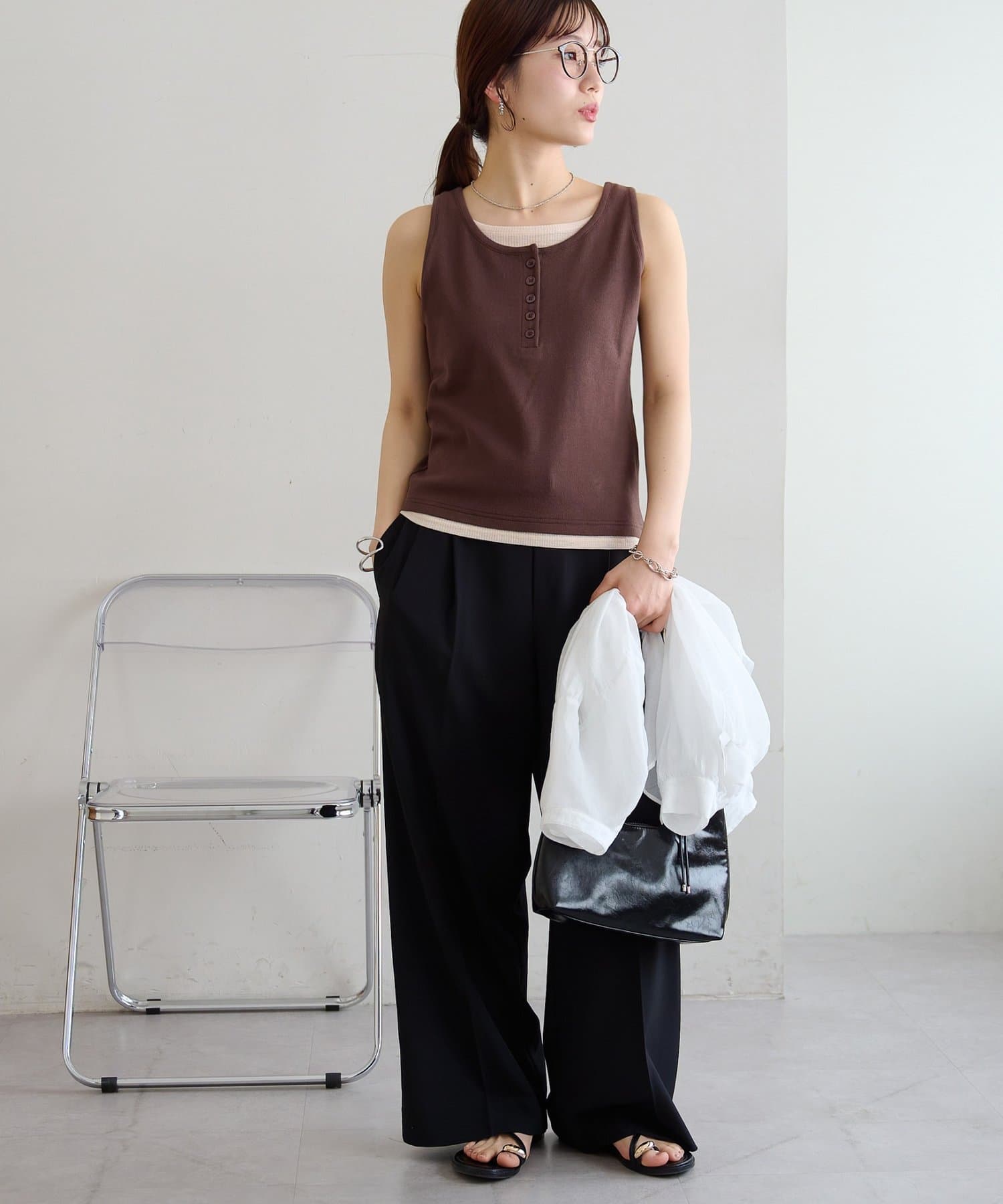 一枚で重ね着スタイルが完成する、レイヤード風タンクトップ
