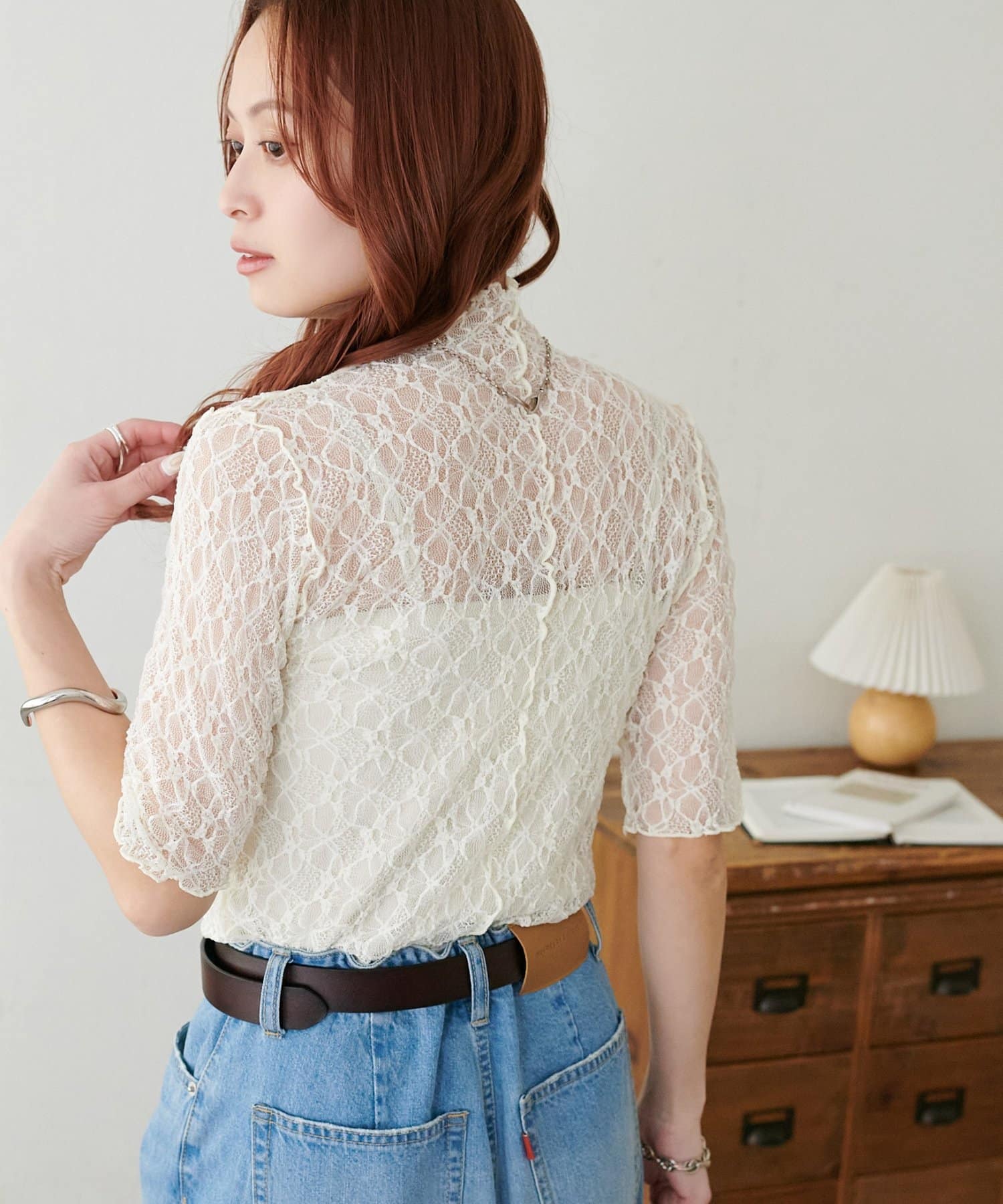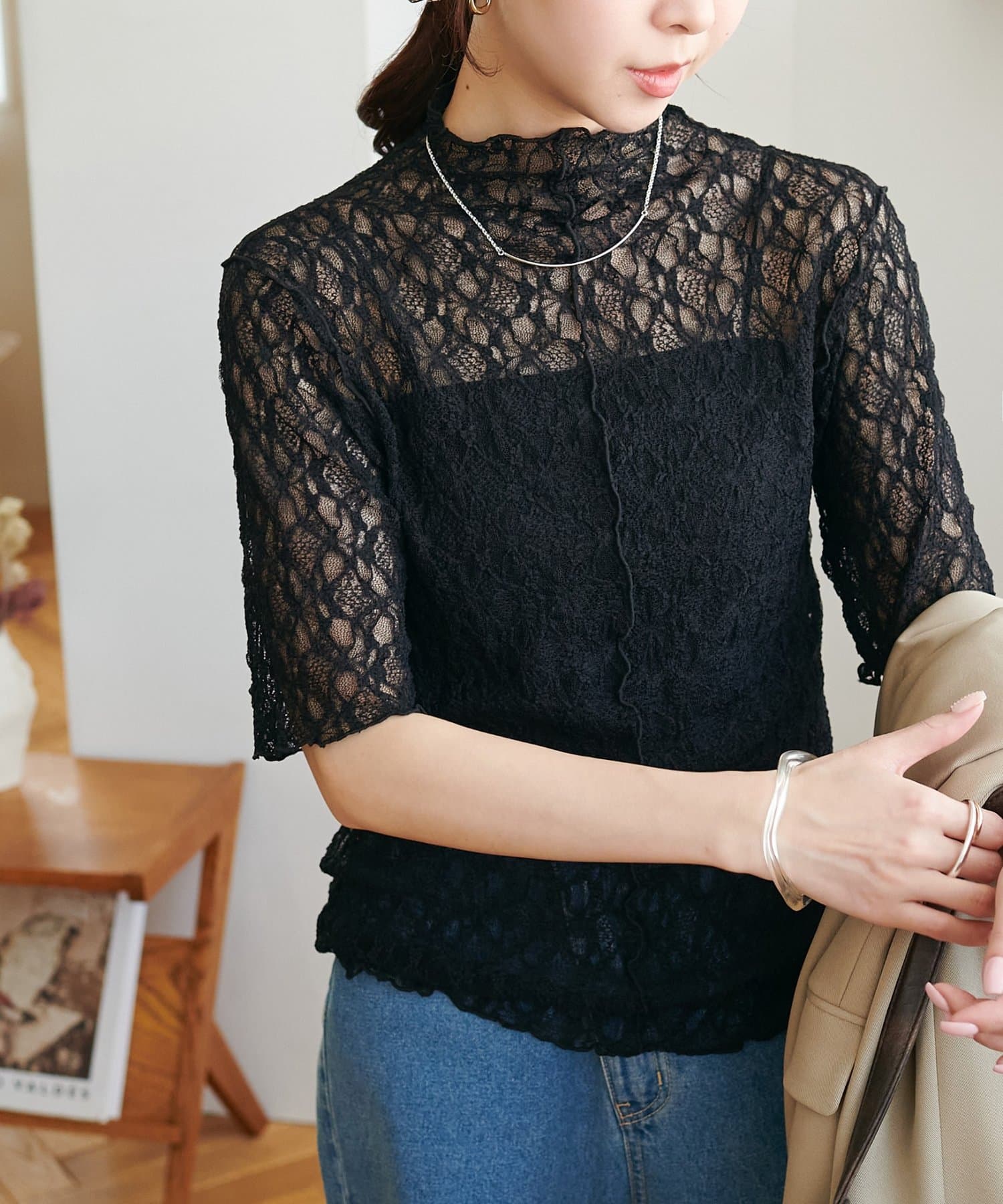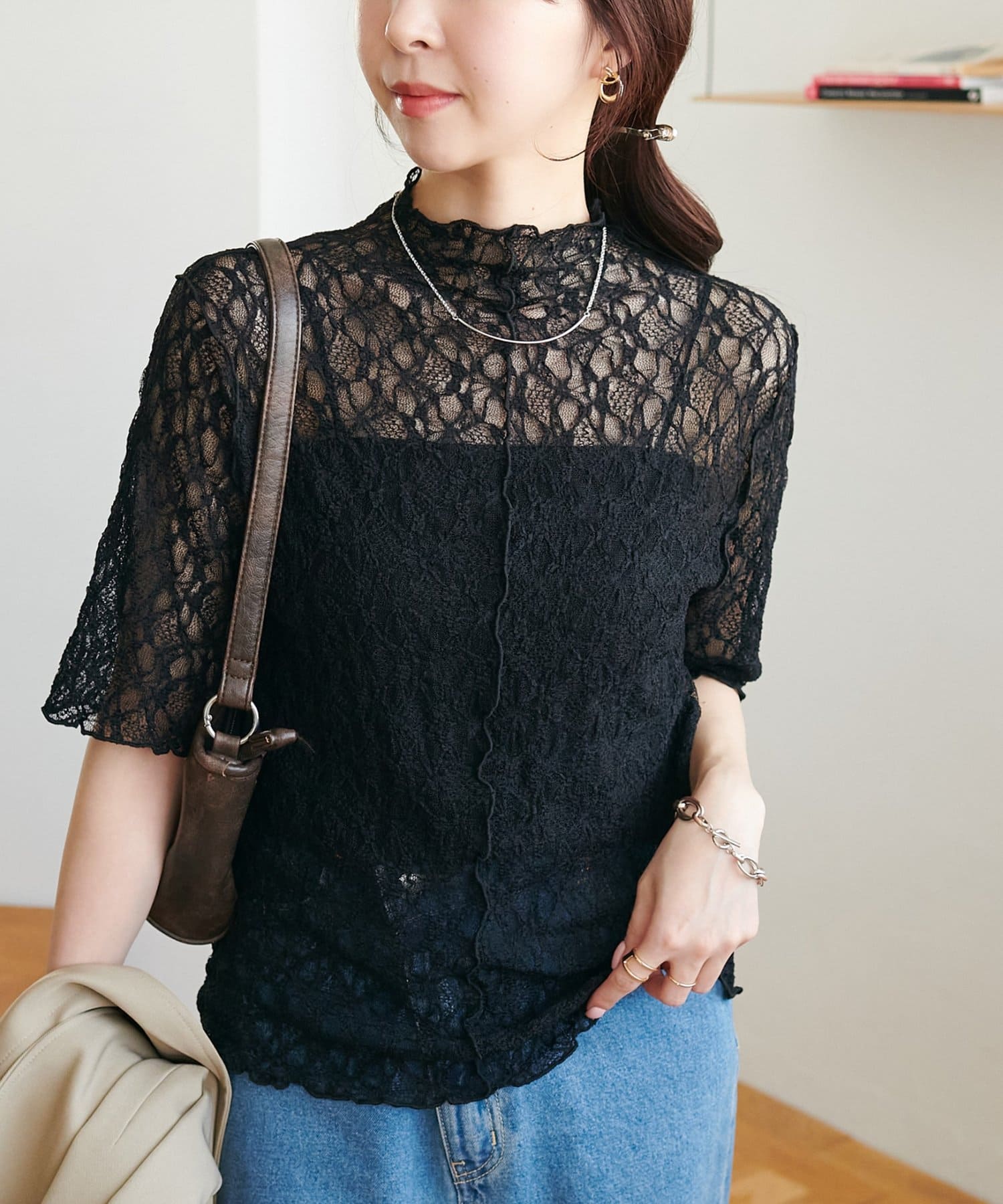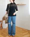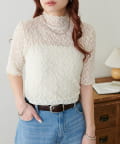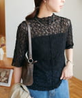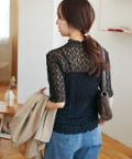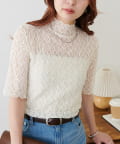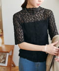 繊細なレースが華やかな5分袖シアートップス