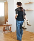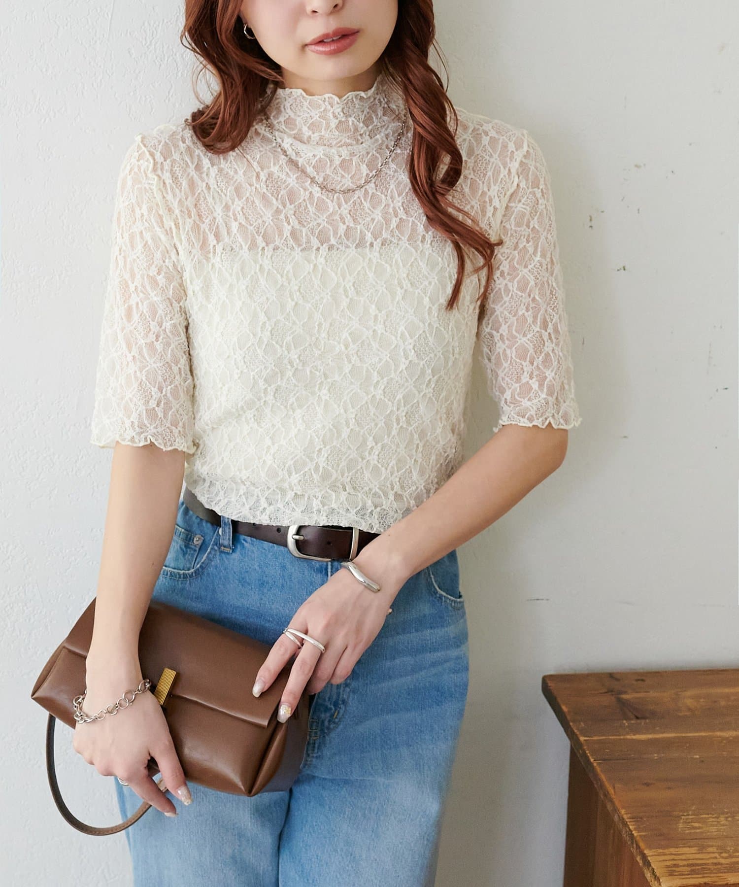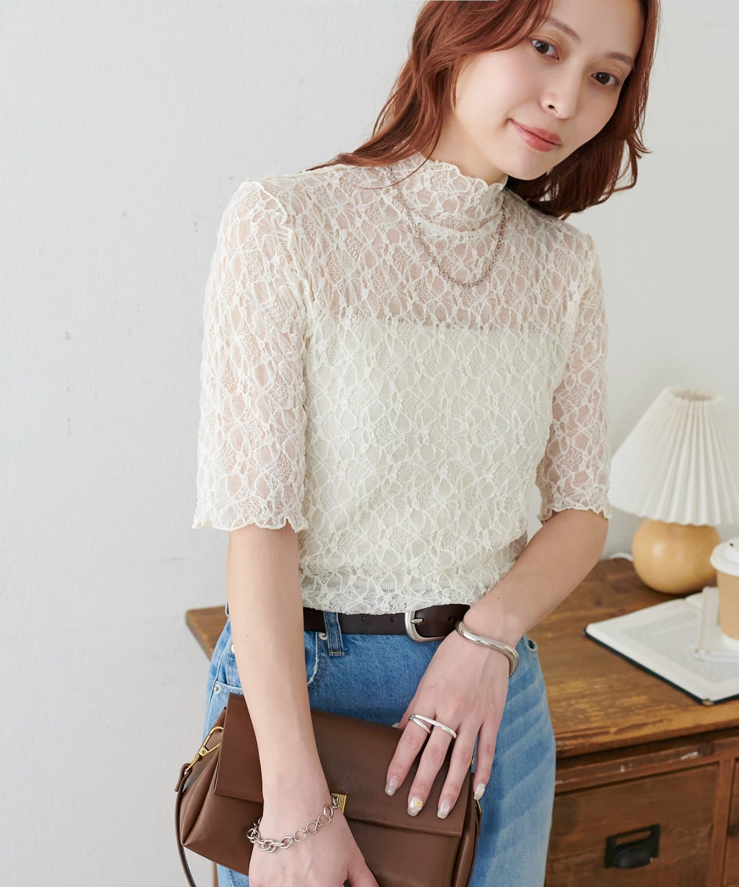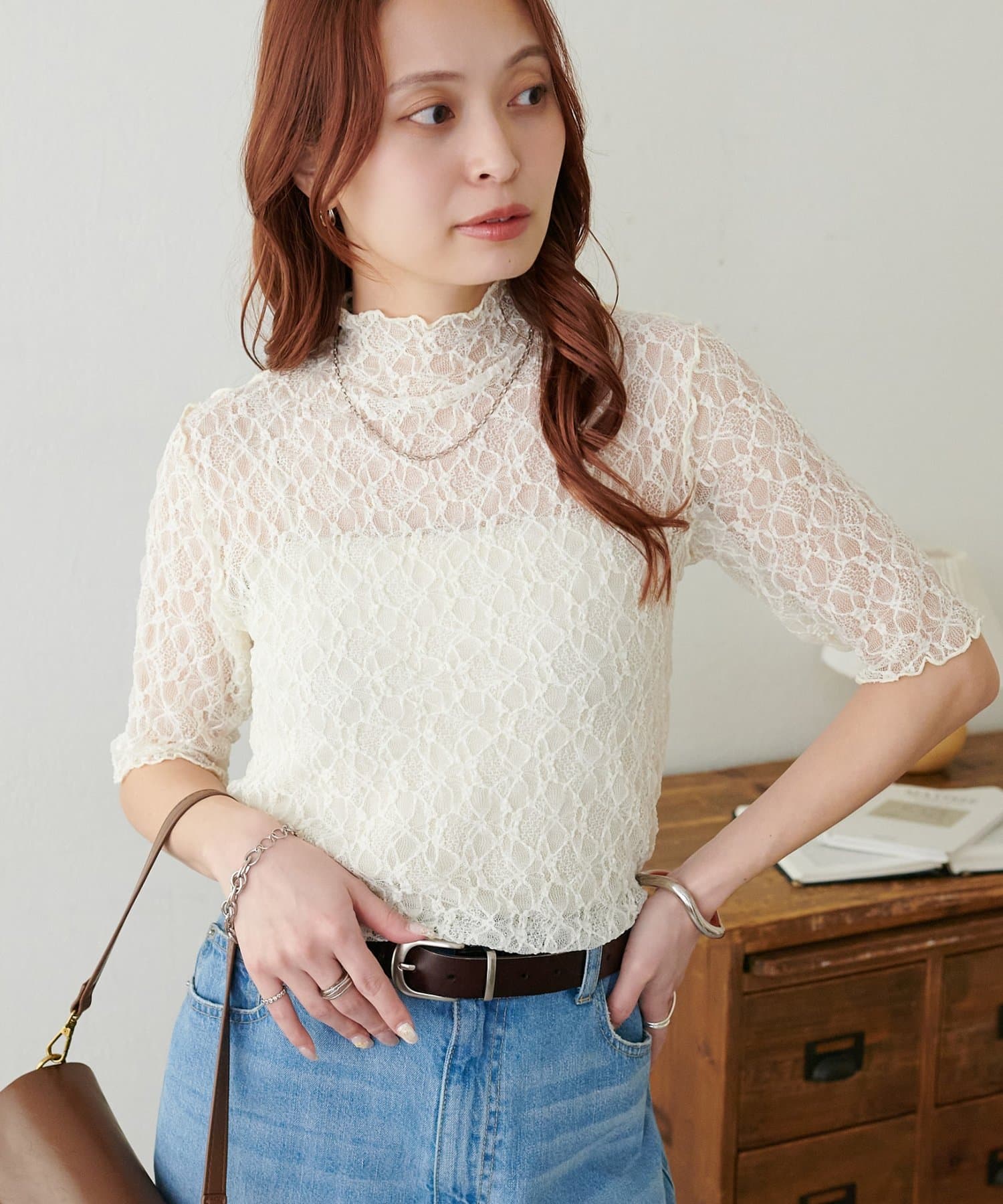 繊細なレースが華やかな5分袖シアートップス
