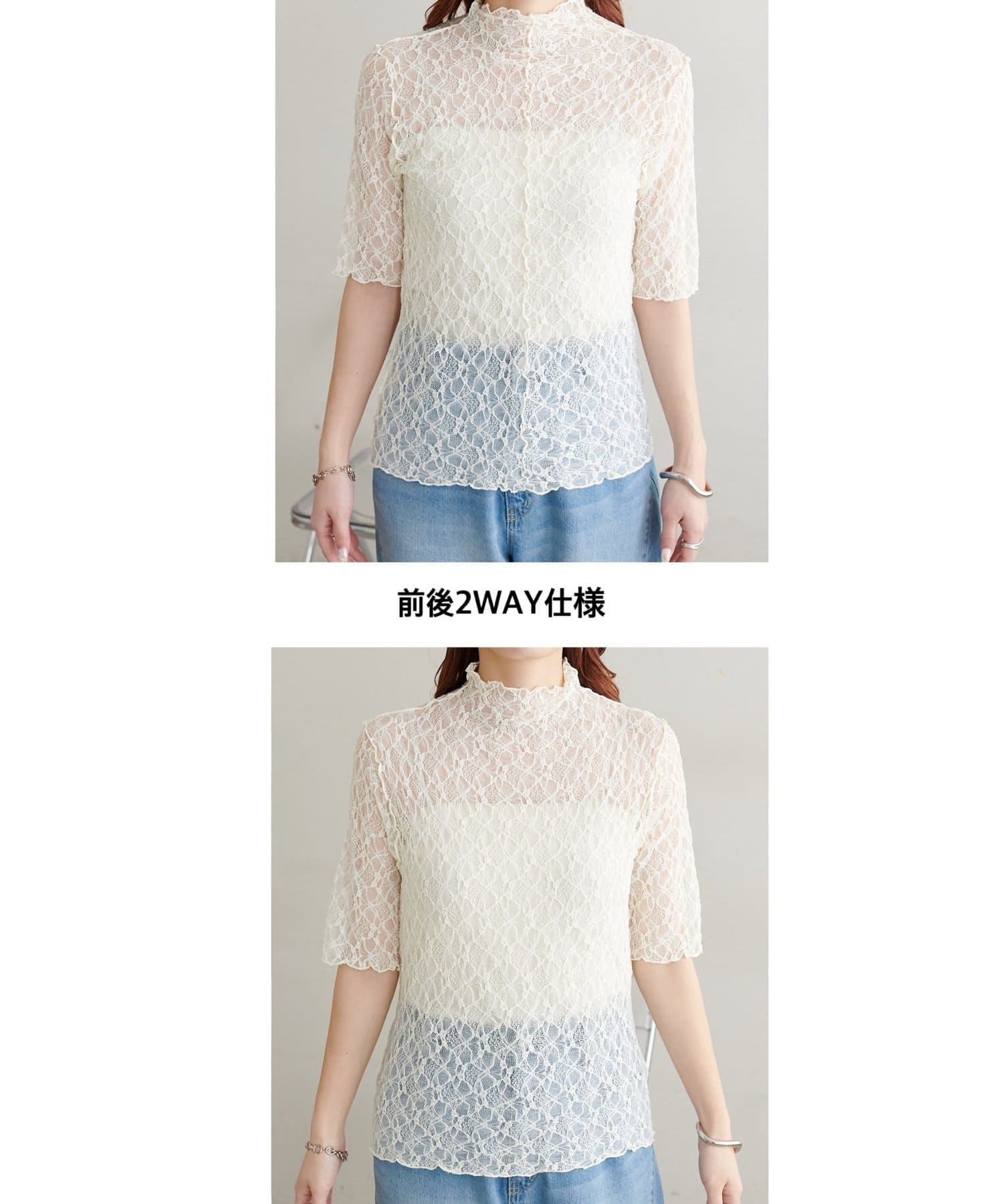 【WEB限定】前後2WAYストレッチレース5分袖プルオーバー