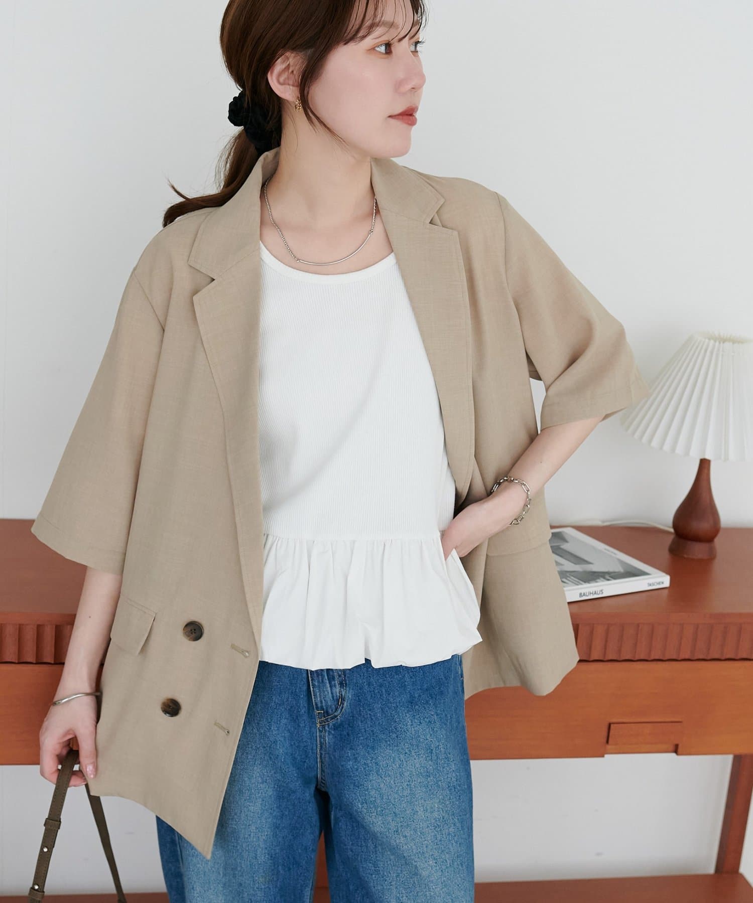 ・コンパクトな五分袖で二の腕をさりげなくカバー◎