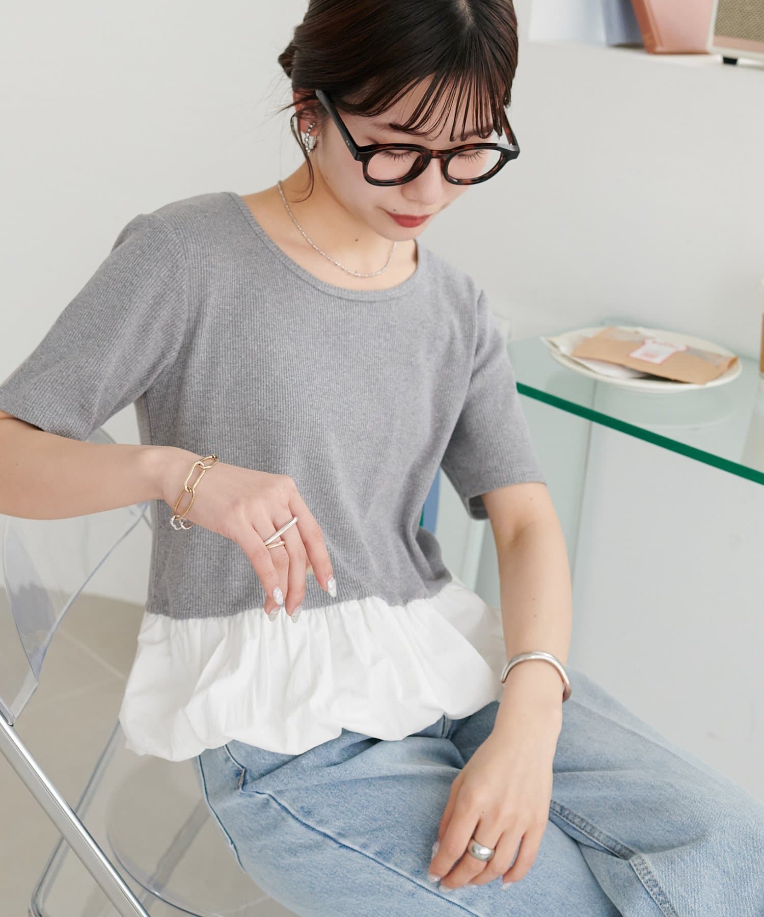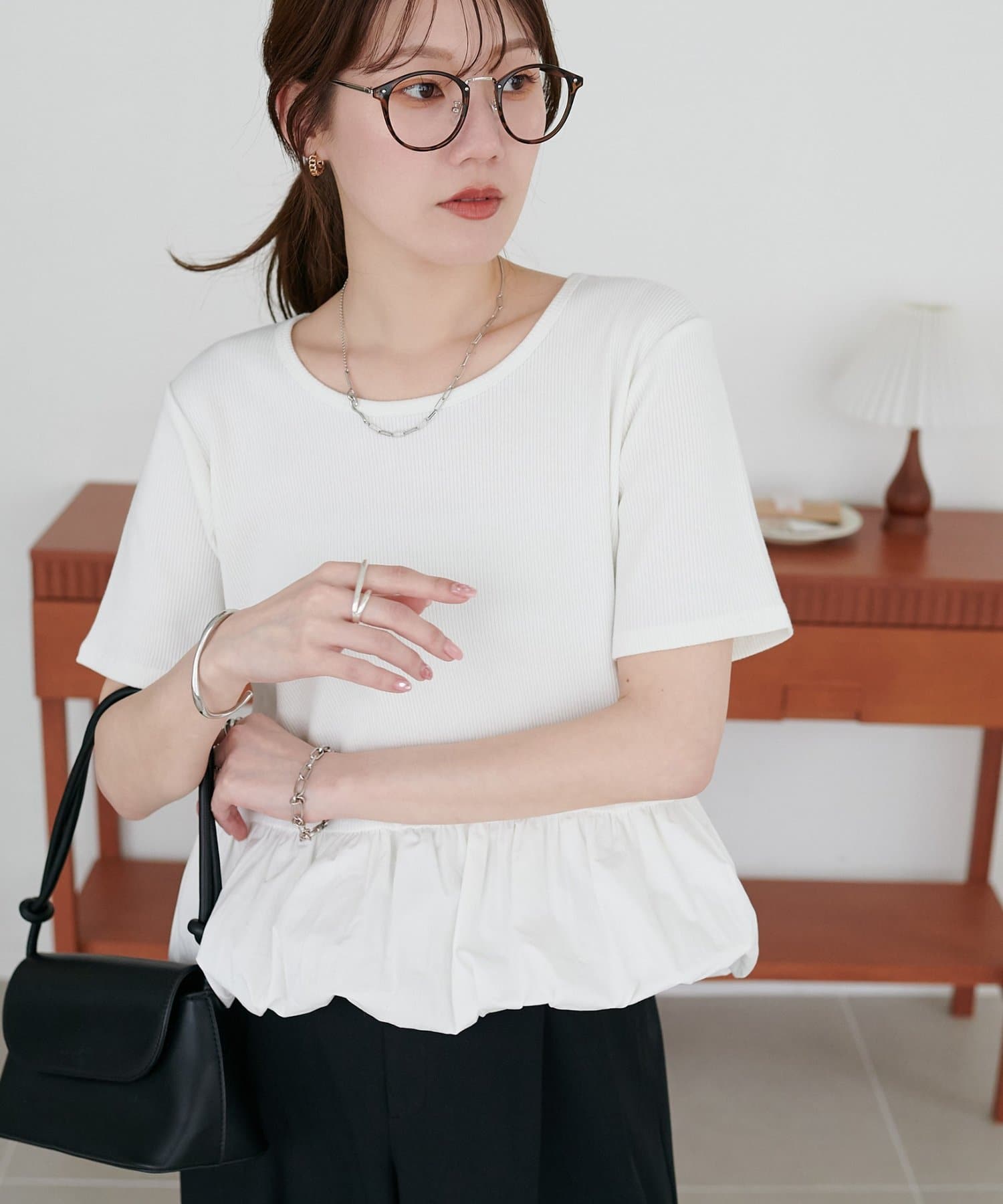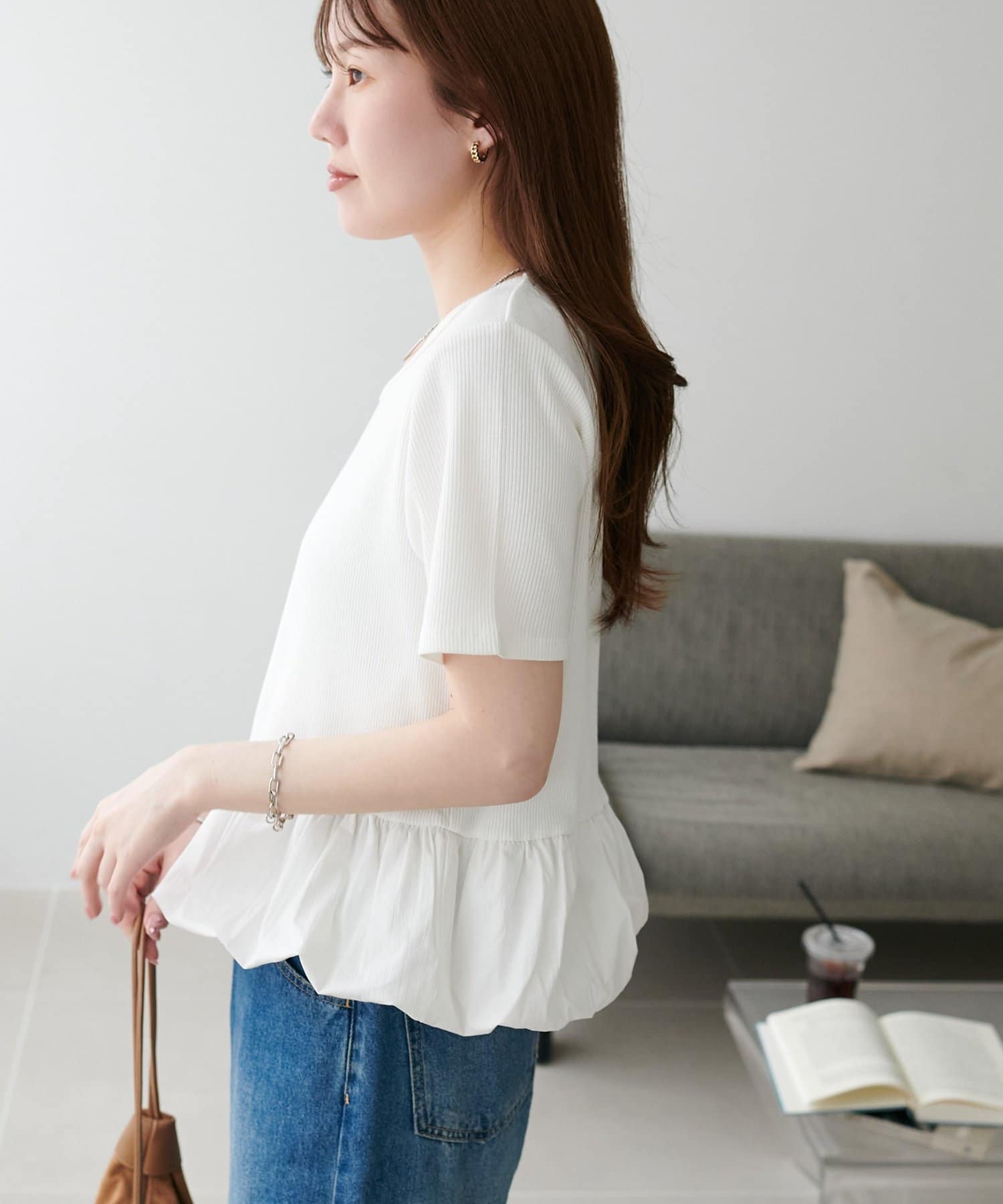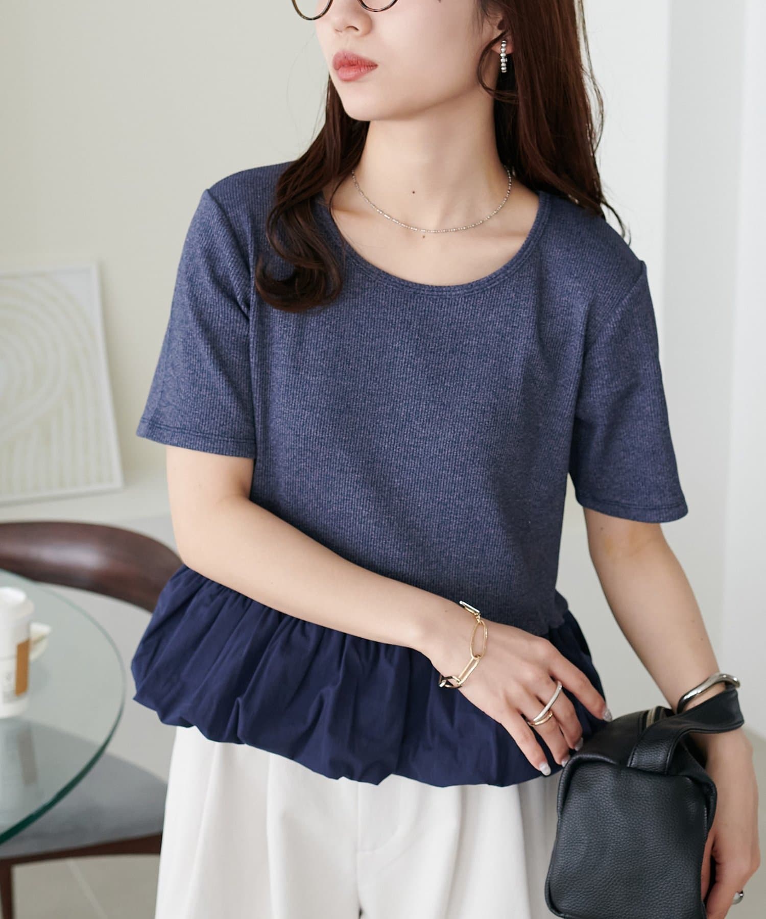 華奢見え裾バルーントップス