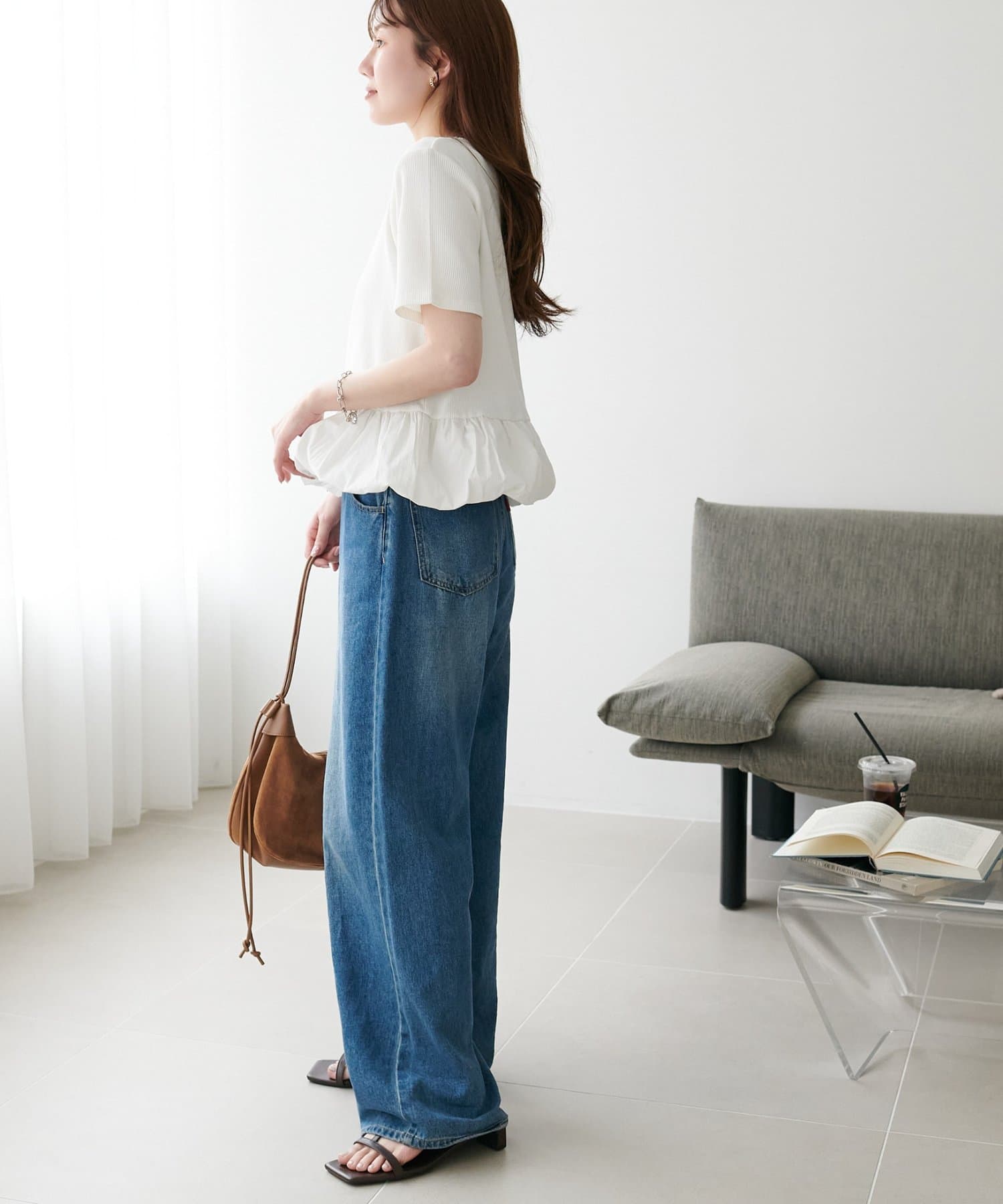 ・定番のデニム合わせでこなれ感のある大人カジュアルスタイル。