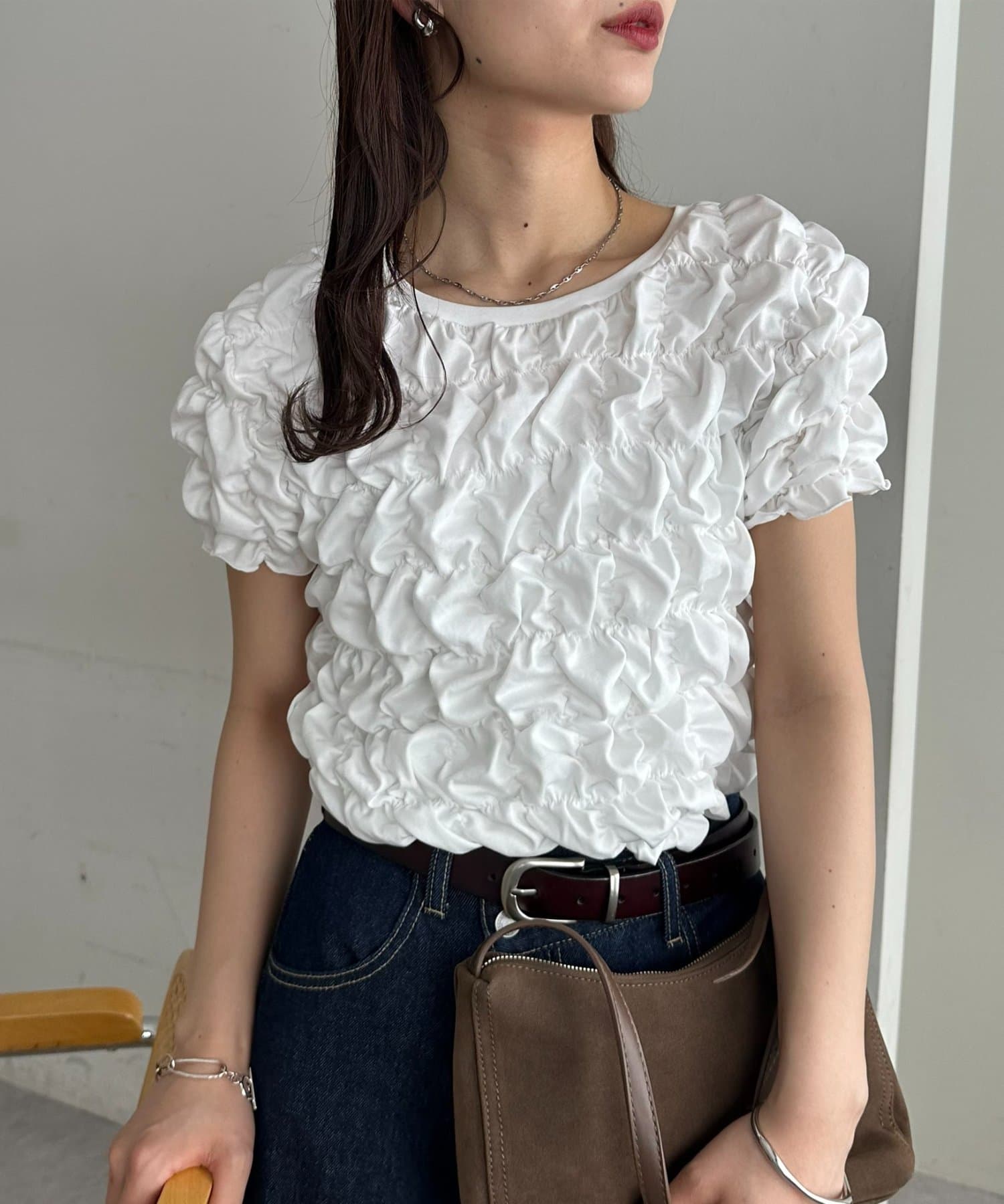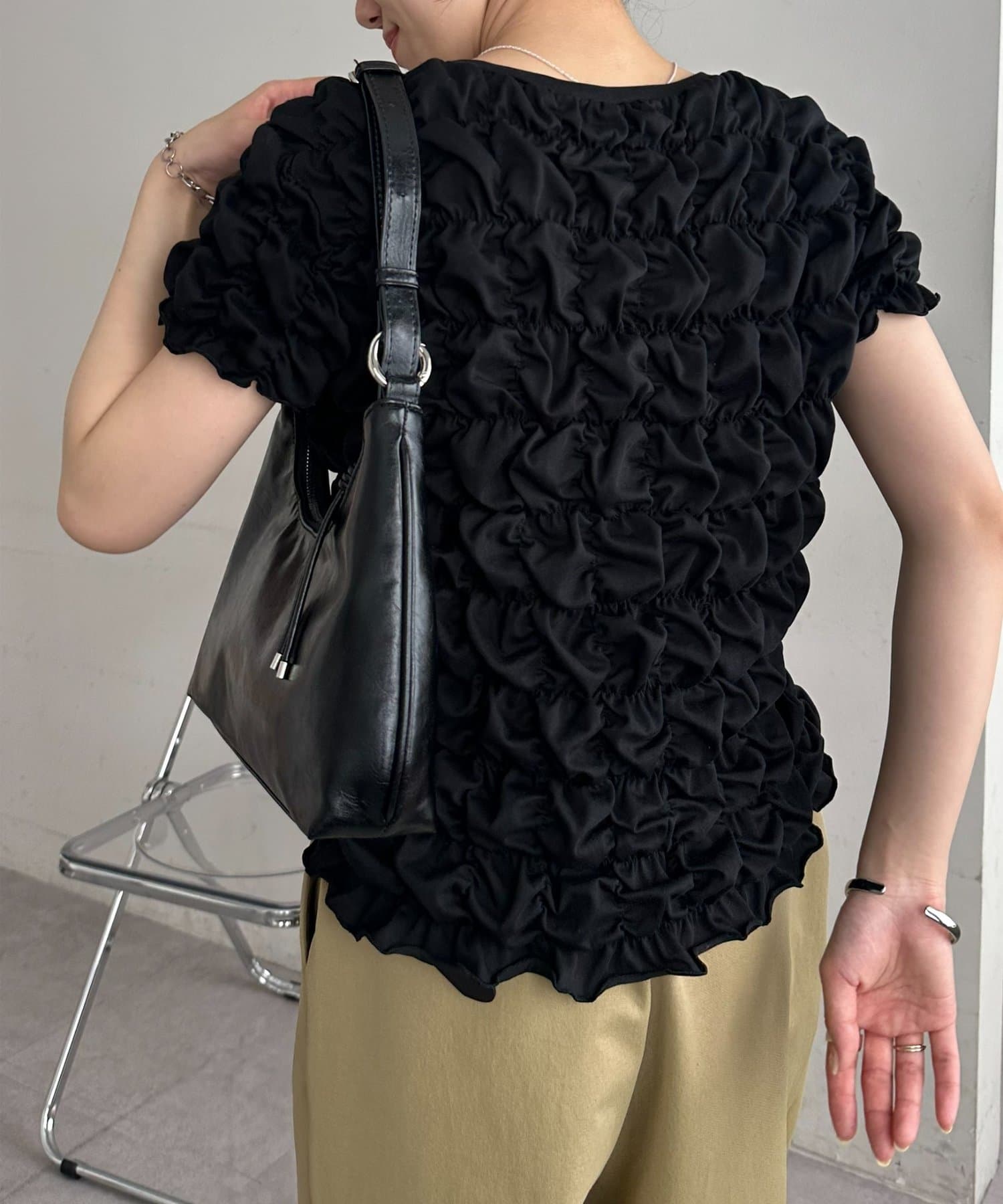 ・全面に施された立体感のあるシャーリングが目を惹くデザイン