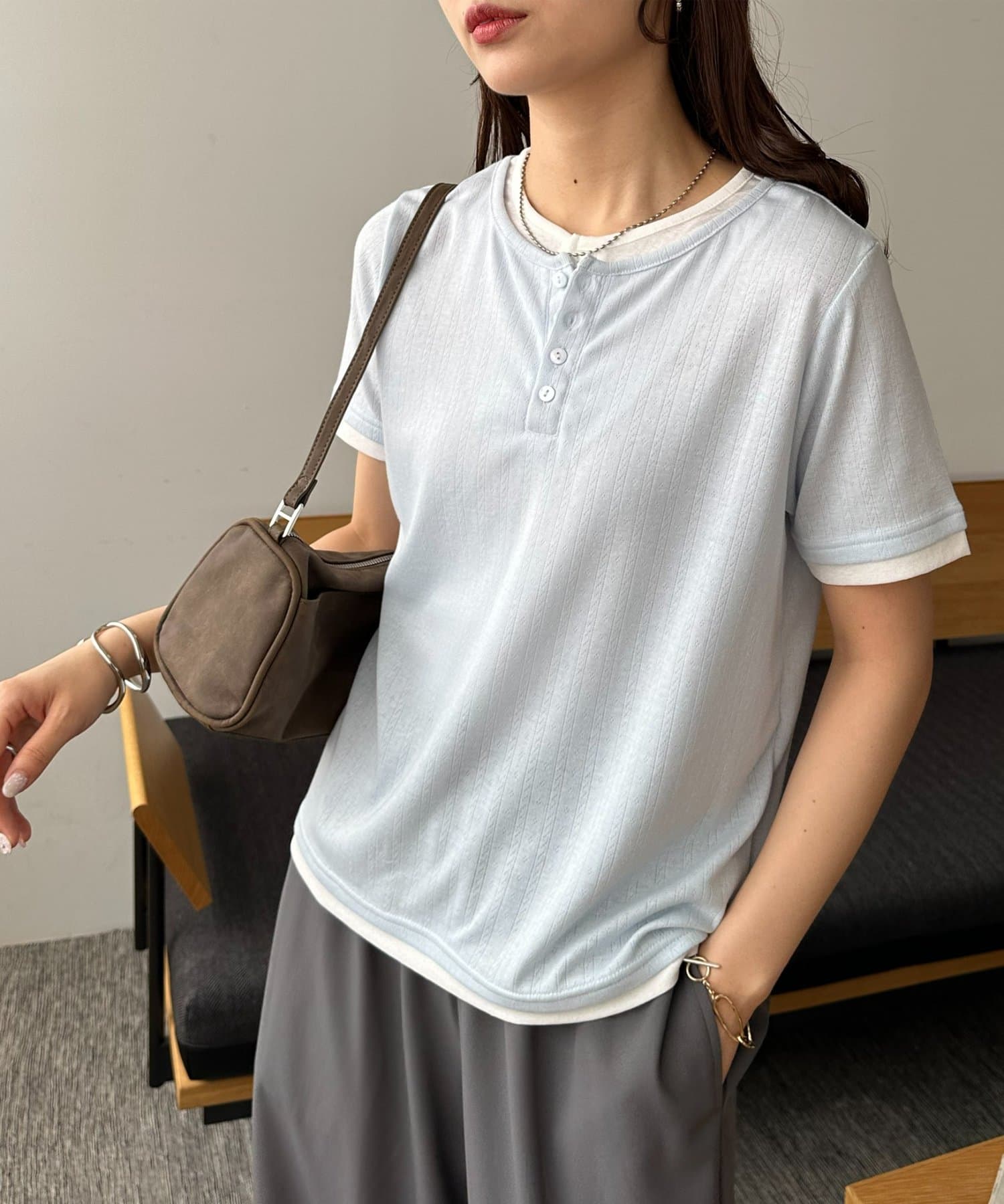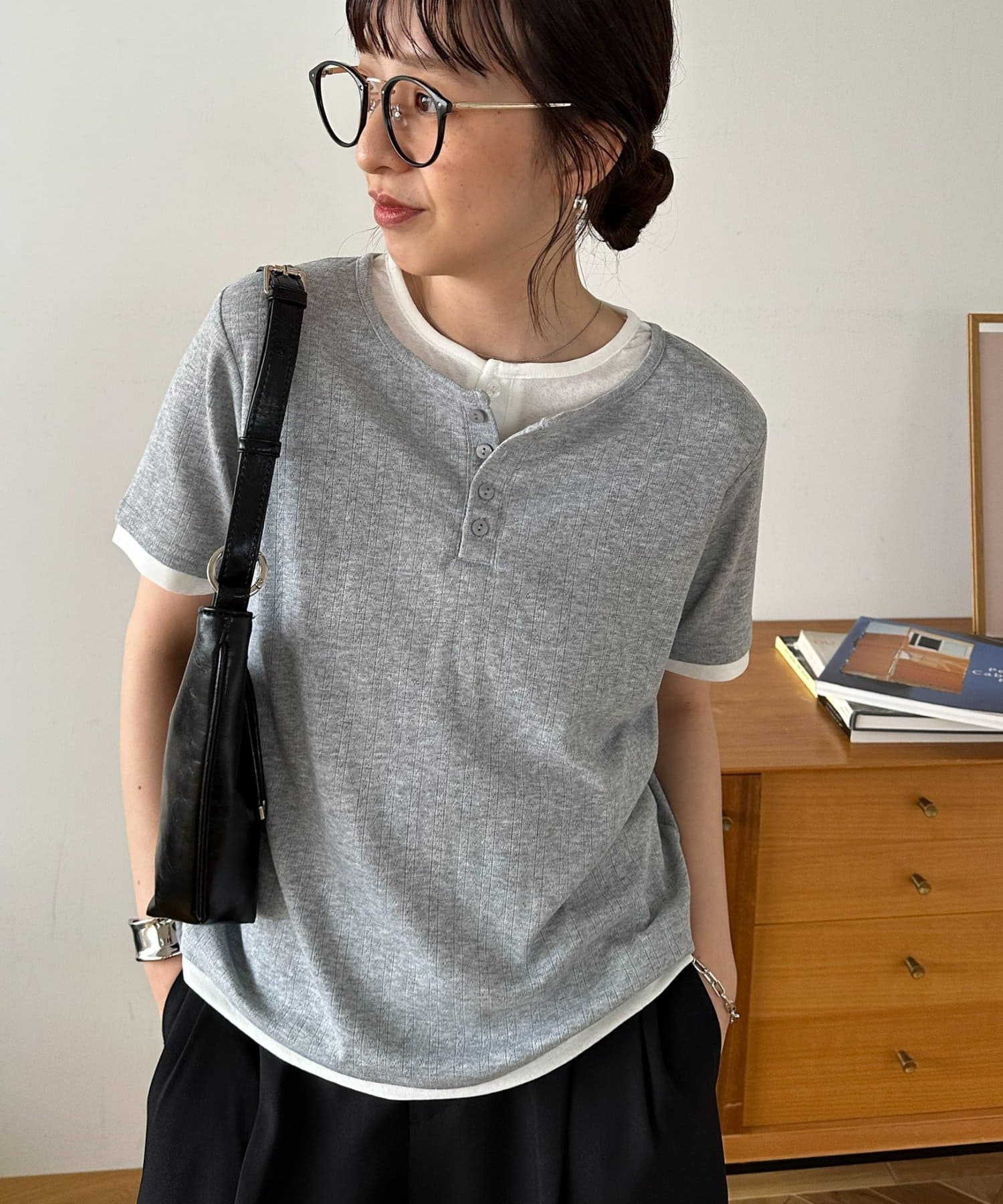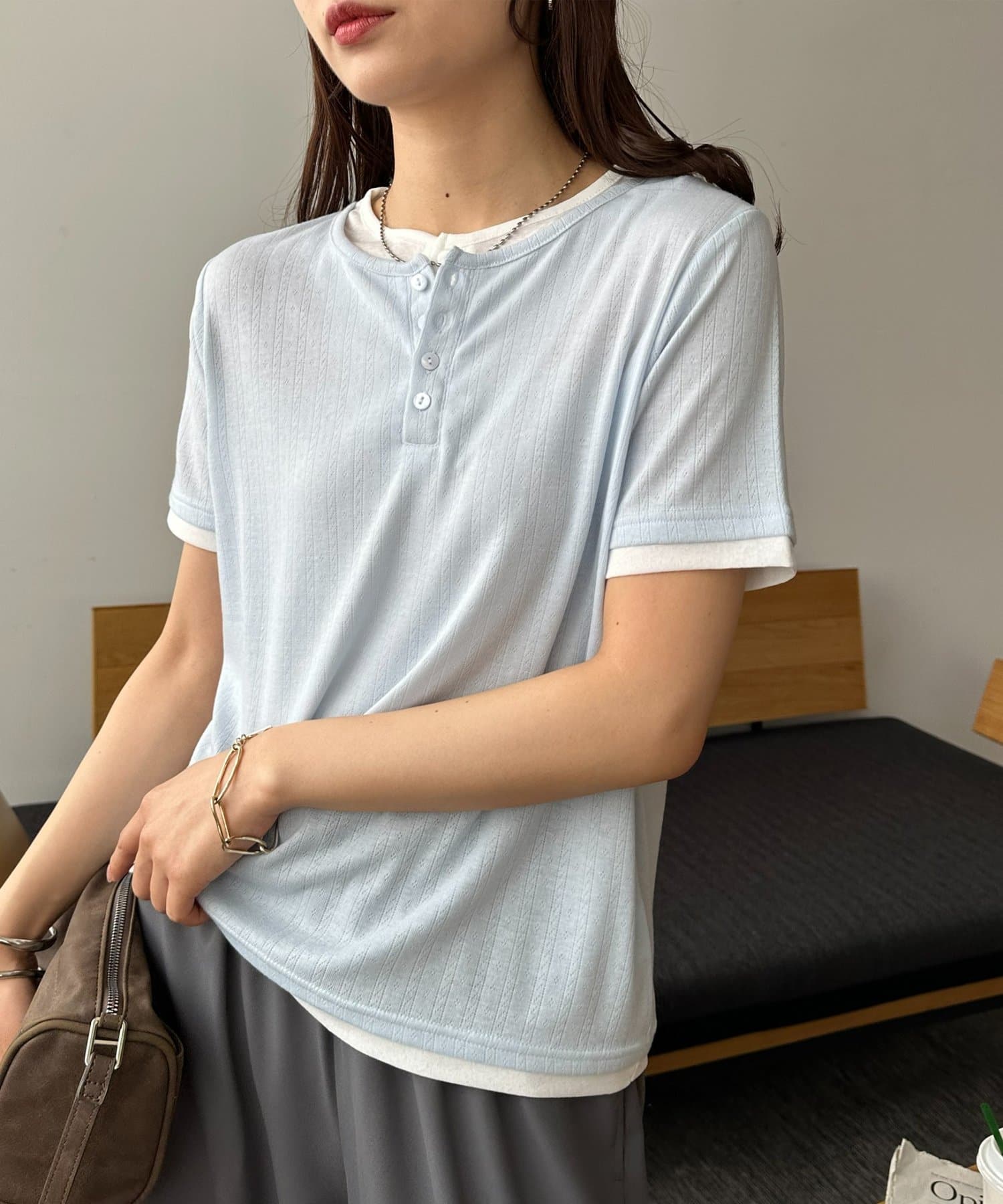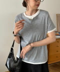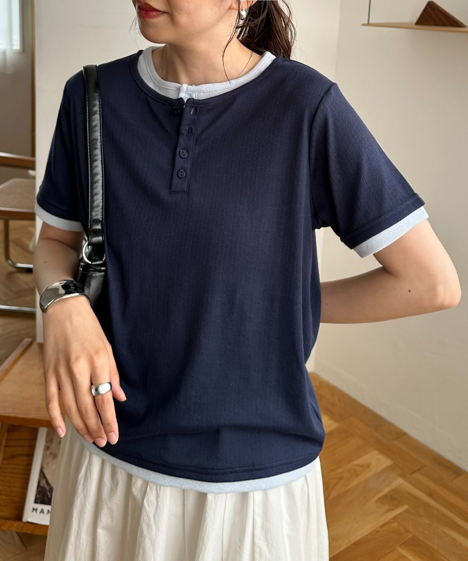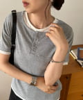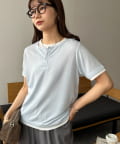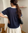 TOP > DISCOAT > レディース > トップス > Tシャツ/カットソー > ヘンリー配色半袖プルオーバー