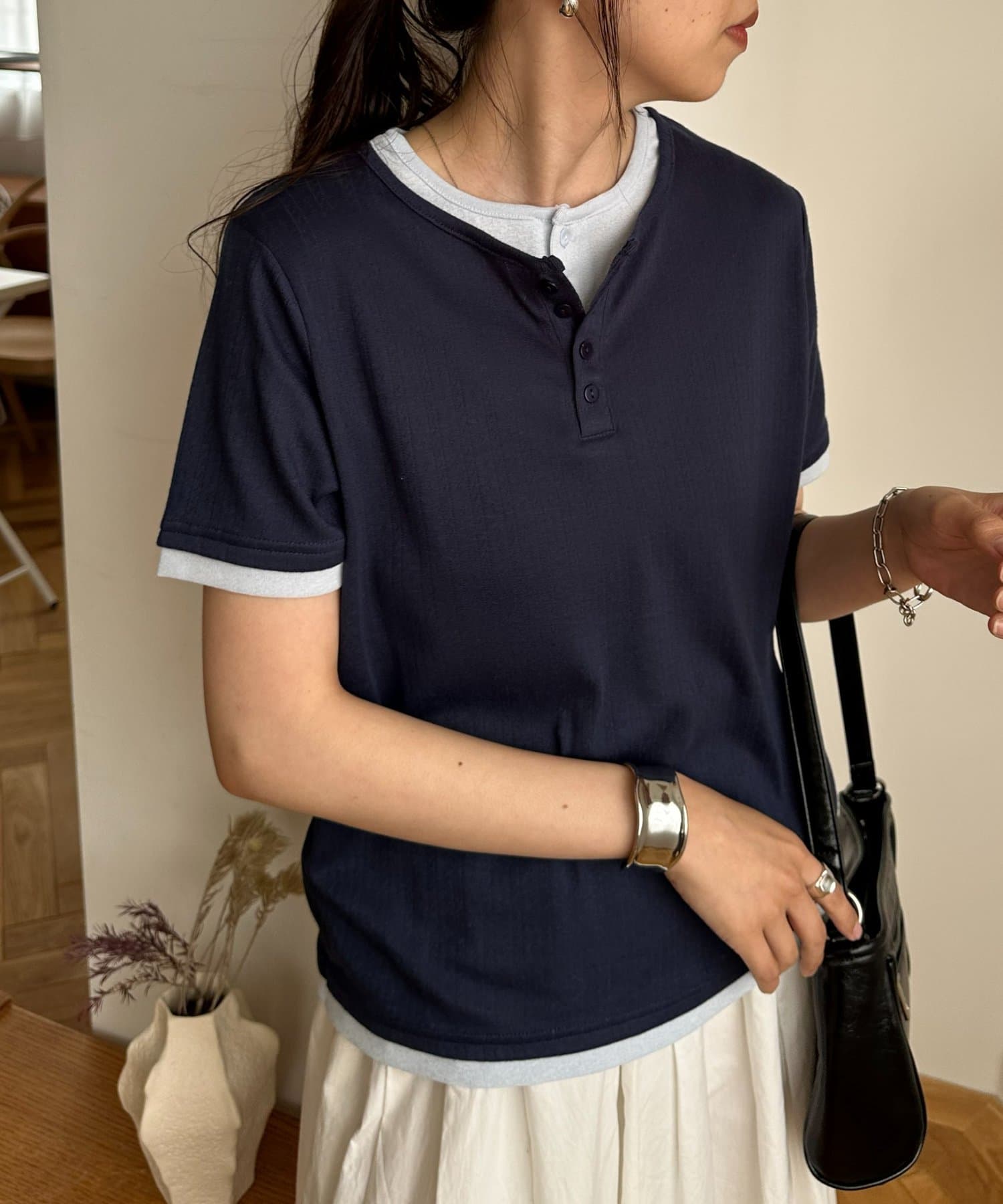ヘンリー配色半袖プルオーバー