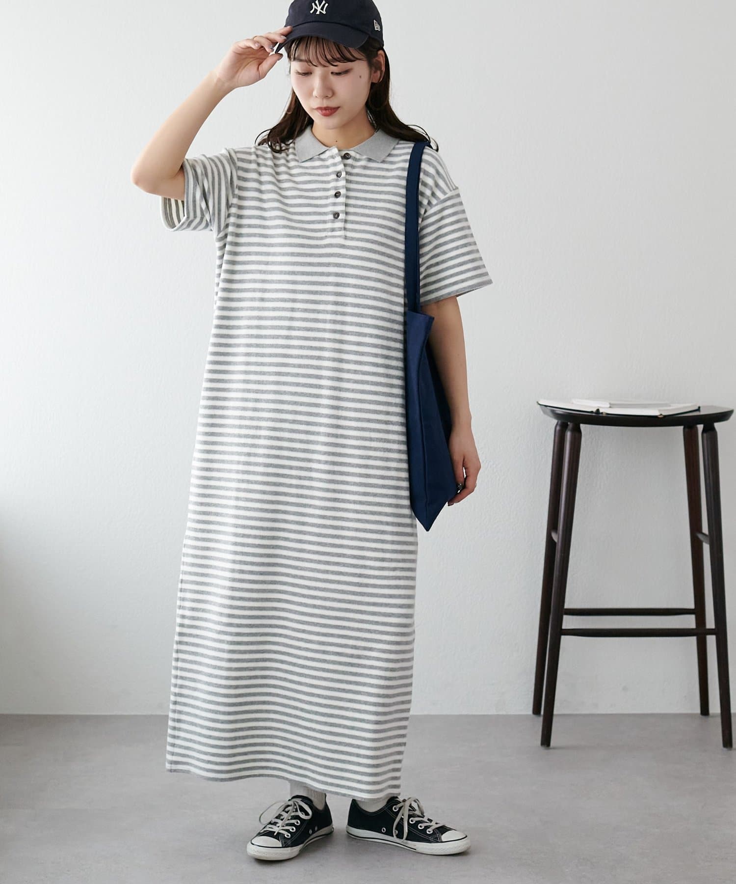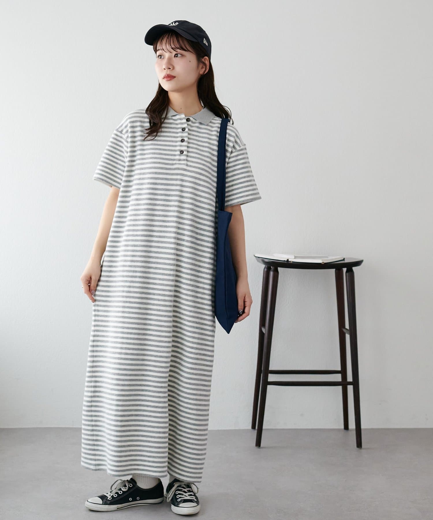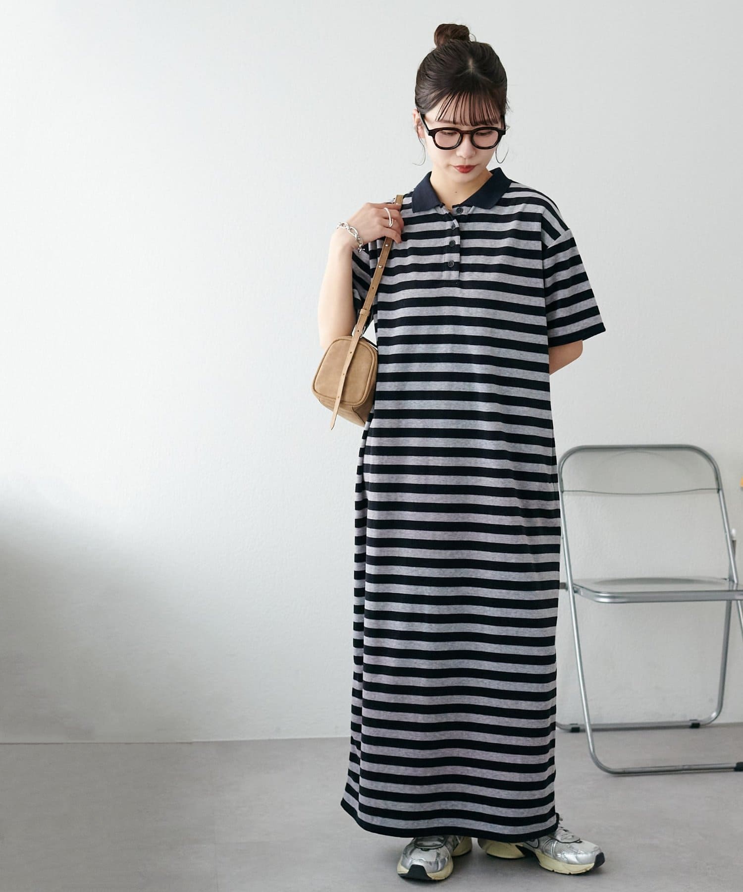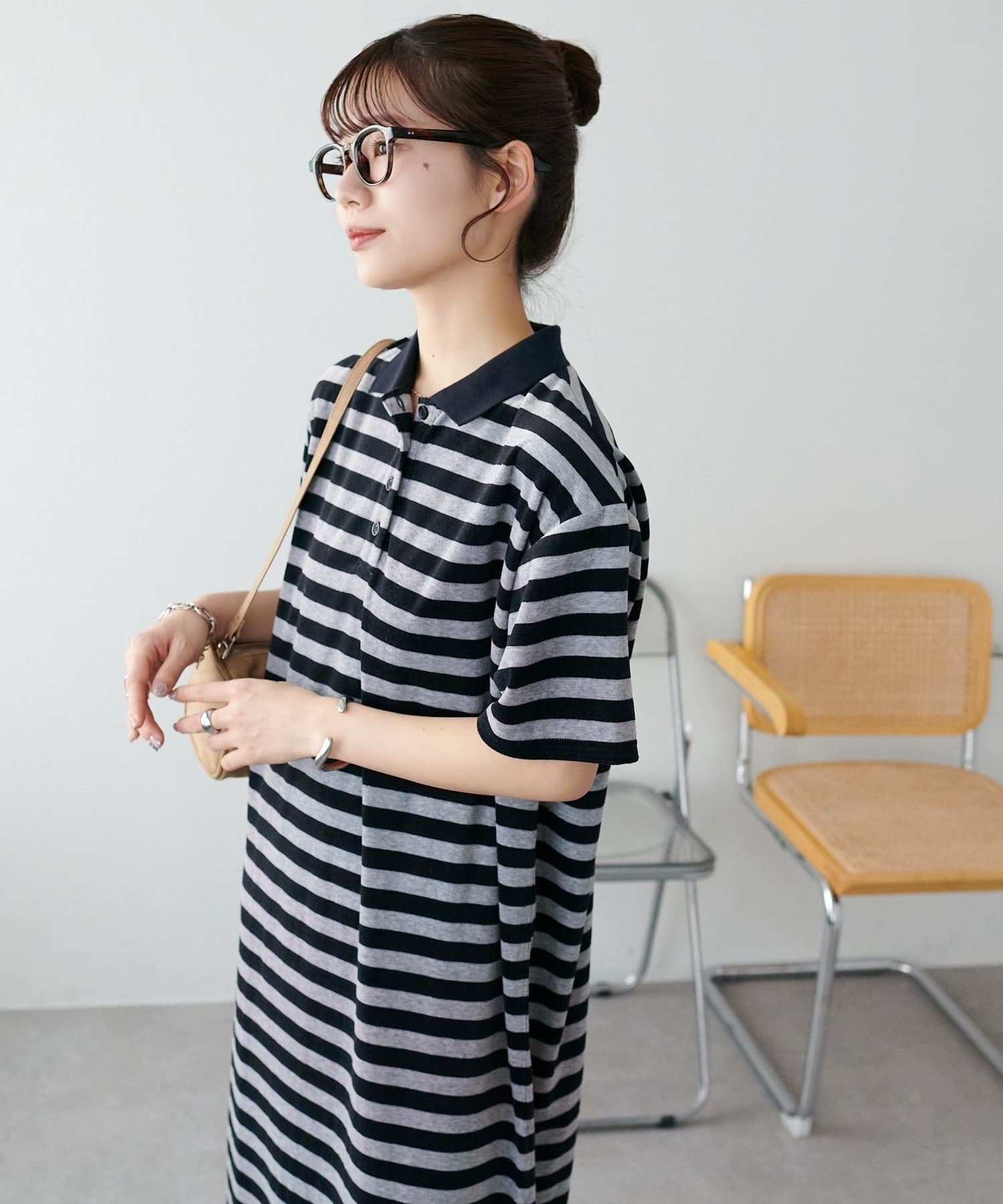 一枚で着こなしが決まる♪爽やかなボーダー柄のポロワンピース
